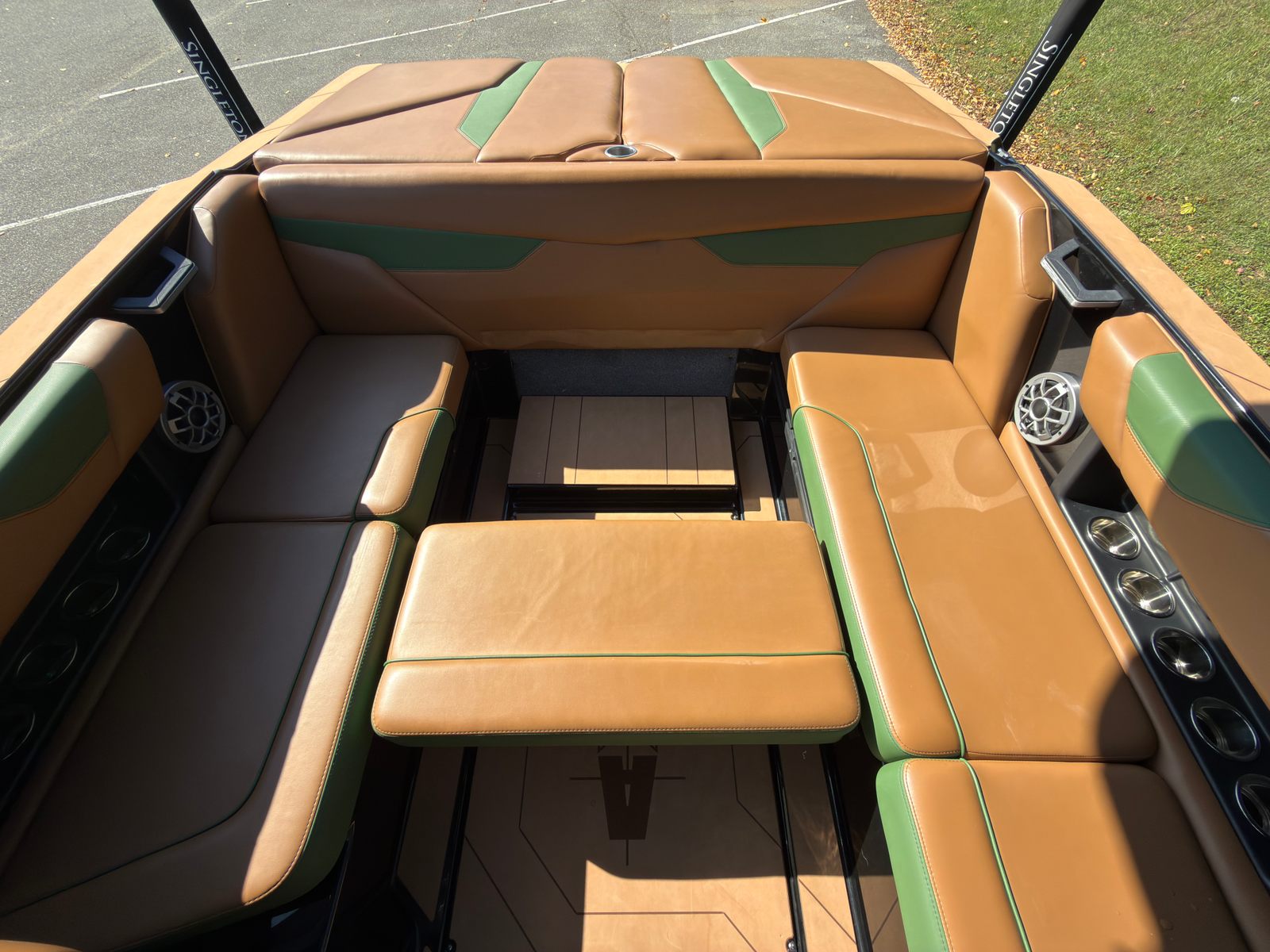 Notable features include: -Malibu M5Di engine (86 hours) -PTM Clamping racks -Extended Bimini -Wake view seating -Plug and play ballast -Cockpit soft grip flooring -Tower speakers -Matching trailer This boat is loaded out and is stunning in its Sumpter Green and Sepia Tan colorway.