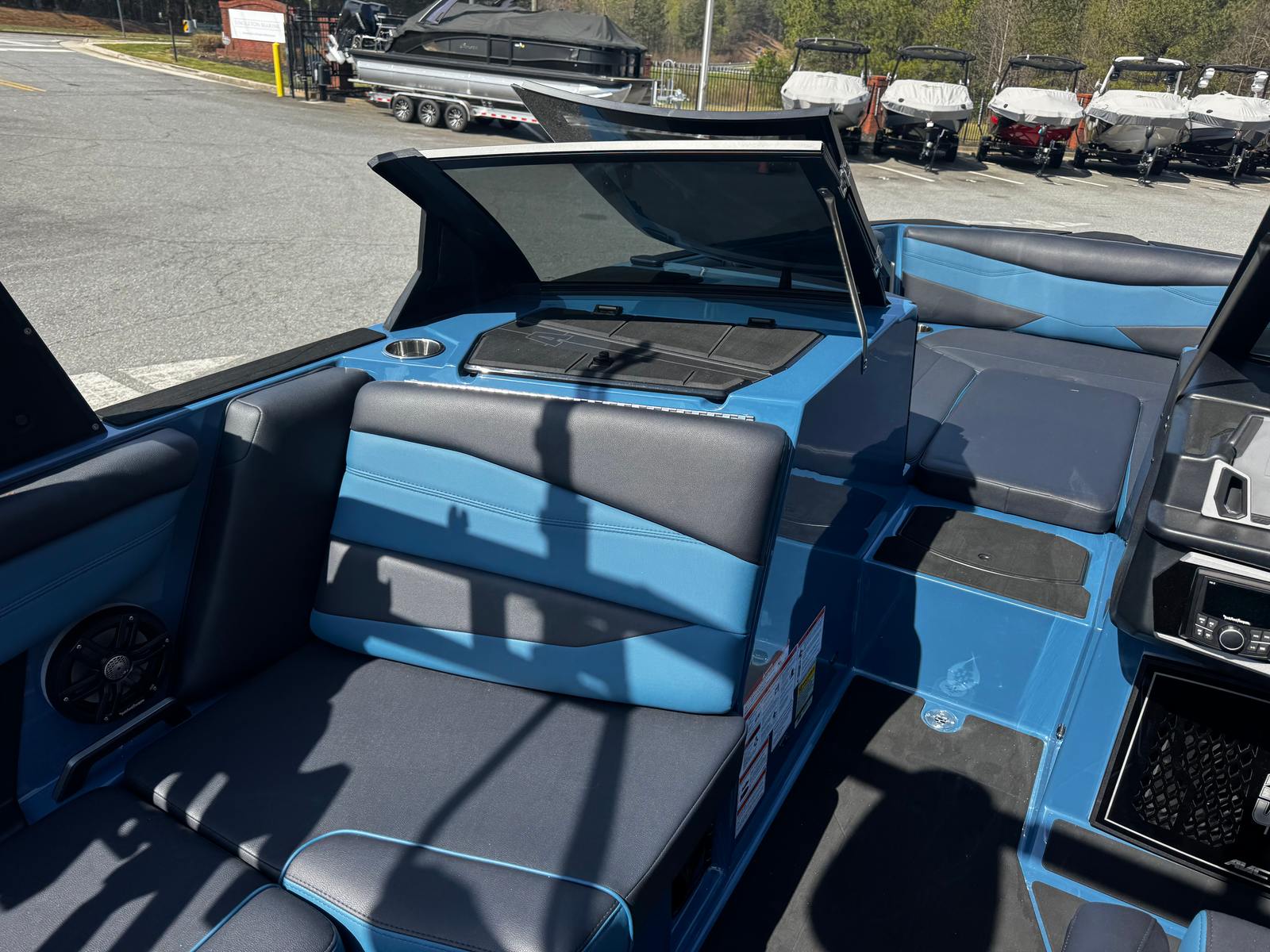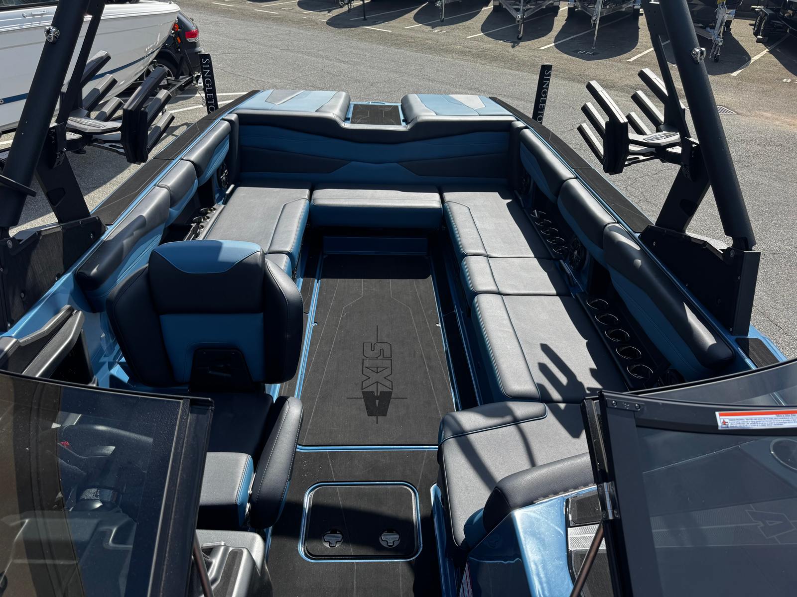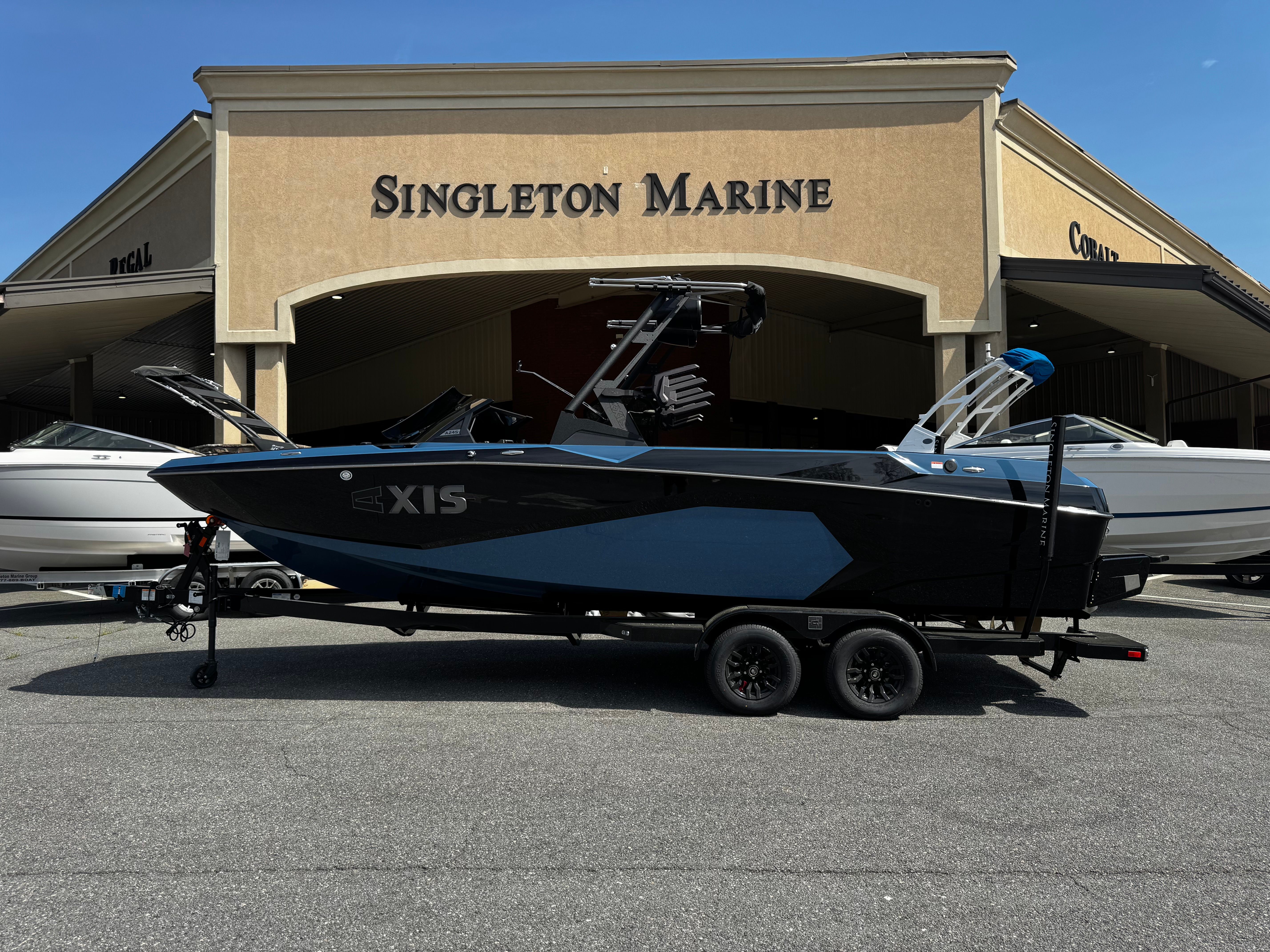 The Axis A245 is packed with advanced features that set it apart from other Ski & Wakeboard boats for sale. The CS Bimini Dual Coverage with surf straps and rope pockets offers superior shade and convenience, keeping you comfortable during long days on the water. The 170a alternator ensures reliable power for all your onboard electronics, while the rear slide SKYBOX seating provides flexible and comfortable arrangements for passengers.The transom step makes boarding and exiting the boat effortless, enhancing safety and accessibility. The Wakebox 3 Tank Ballast System - HI FLO is engineered to deliver optimal wake shaping, allowing you to customize the size and shape of your wakes for every rider’s preference. Protect your investment with the CS Boat Cover featuring APS 2 and a swimboard cover, ensuring your boat stays in pristine condition when not in use.Deck Trac - Nonskid (Complete Deck Kit) offers enhanced traction and safety across the entire deck, making movement around the boat secure and worry-free. The exhaust - surf pipe is designed for quieter operation and improved environmental performance. The sport dash and wireless charging stations add a touch of modern convenience, allowing you to stay connected and in control while on the water. The Platinum Package- AVC brings a premium touch to the Axis A245, elevating your boating experience with exclusive upgrades and finishes.