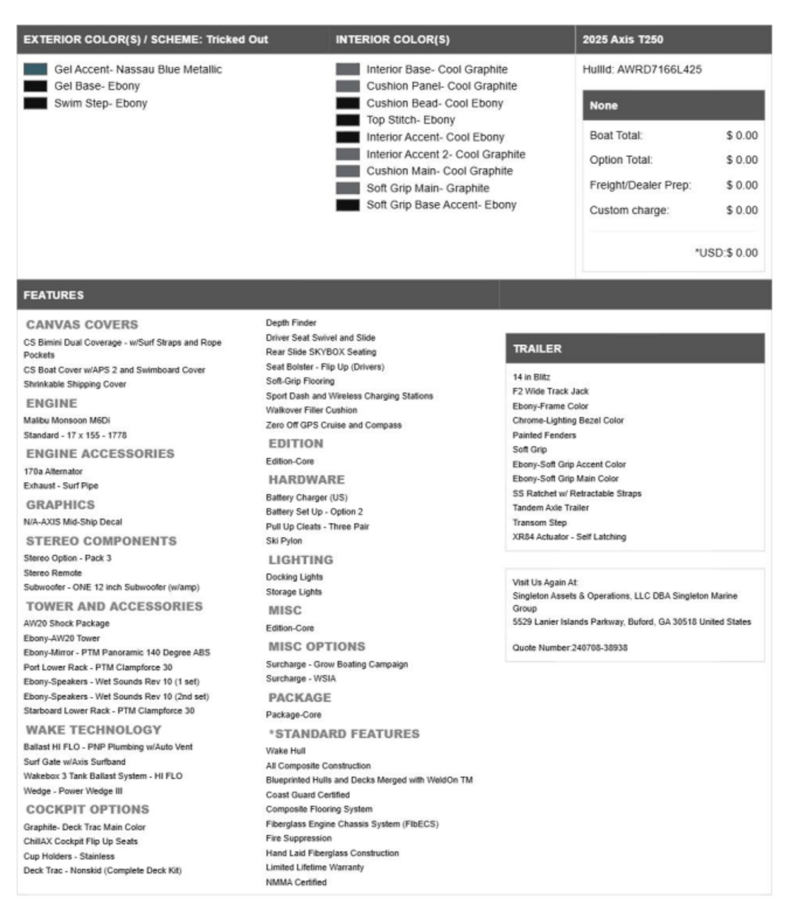 In summary, the 2025 Axis T250 is a top-of-the-line Ski & Wakeboard boat for sale that combines power, style, and innovation in one impressive package. With its 460-horsepower engine, advanced sound system, versatile seating, and customizable wake features, the T250 is designed to maximize fun and enjoyment on the water. Practical amenities like stainless cup holders, ample storage, and a reliable battery setup make ownership easy and stress-free.If you are searching for an Axis boat for sale that offers unmatched performance, comfort, and versatility, the T250 is the perfect choice. Don’t miss your chance to own this exceptional Ski & Wakeboard boat—contact the dealer today to learn more and start your next adventure on the water!