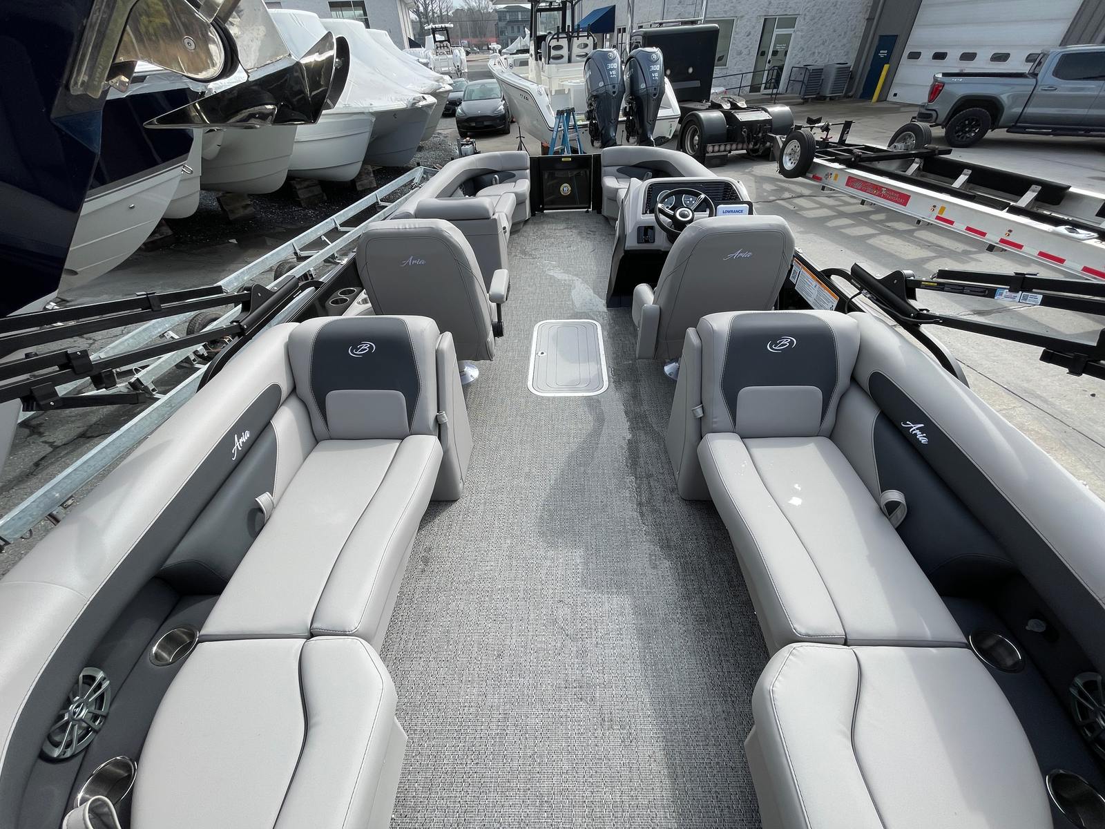 Owning the Barletta Aria A24QC means embracing a lifestyle of fun, relaxation, and adventure. The spacious layout is perfect for hosting gatherings, enjoying meals, or simply lounging in the sun. The comfortable Tempest Gray furniture invites you to unwind, while the ample deck space allows for easy movement and socializing. The stylish Black Diamond railskin and Blackout Package ensure you’ll stand out wherever you go, making every trip a memorable occasion.The powerful Mercury engine provides the speed and reliability needed for water sports, cruising, or exploring new waters. The Triple Toon Package enhances stability, giving you peace of mind whether you’re entertaining guests or enjoying a solo escape. With the Coastal Edition, you can confidently navigate a variety of waterways, from lakes and rivers to coastal areas.