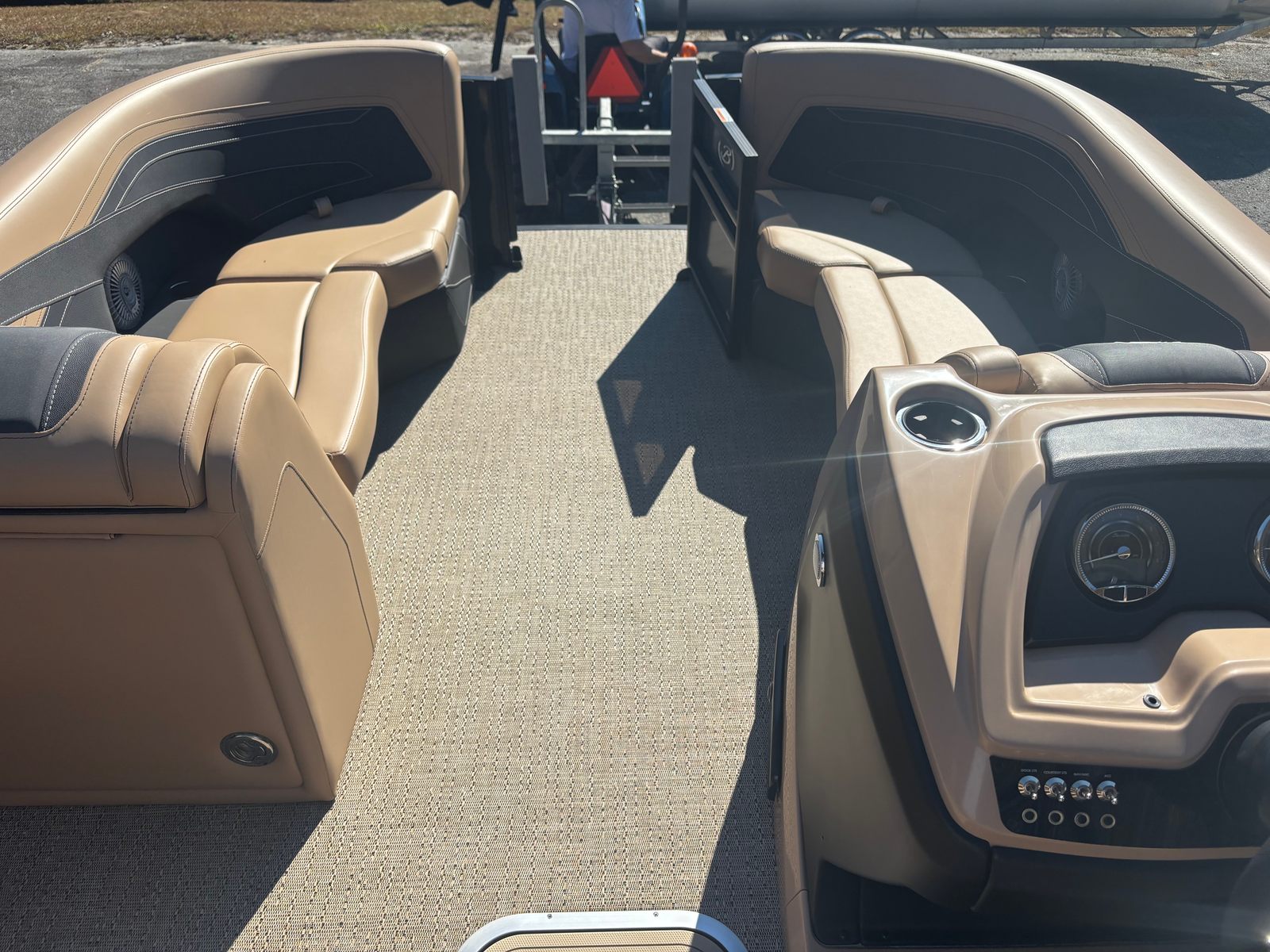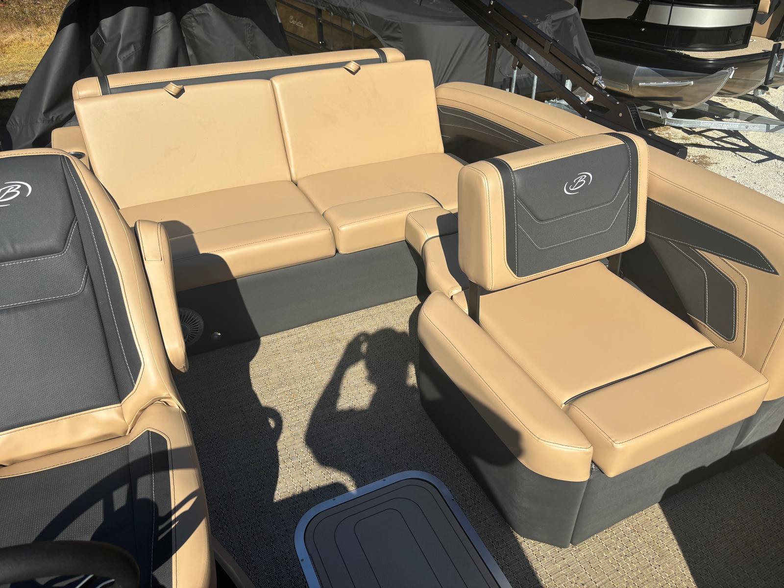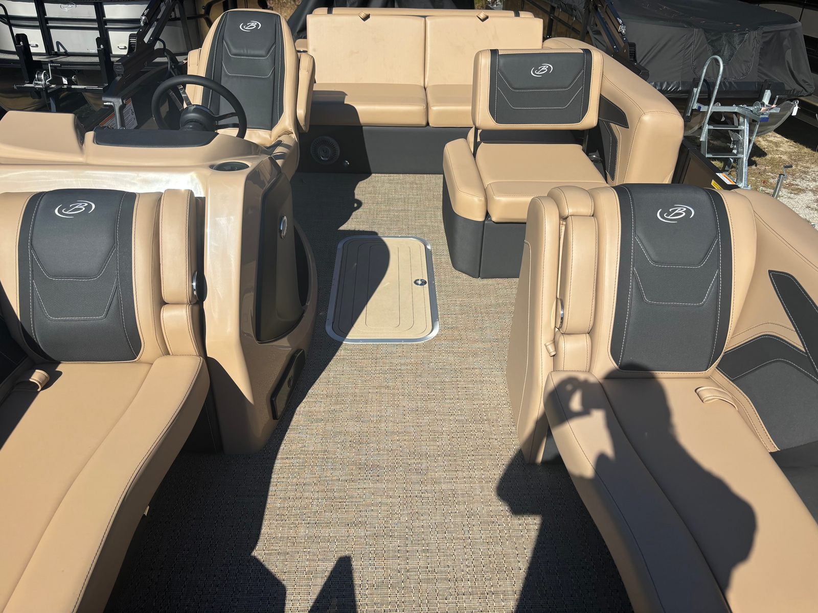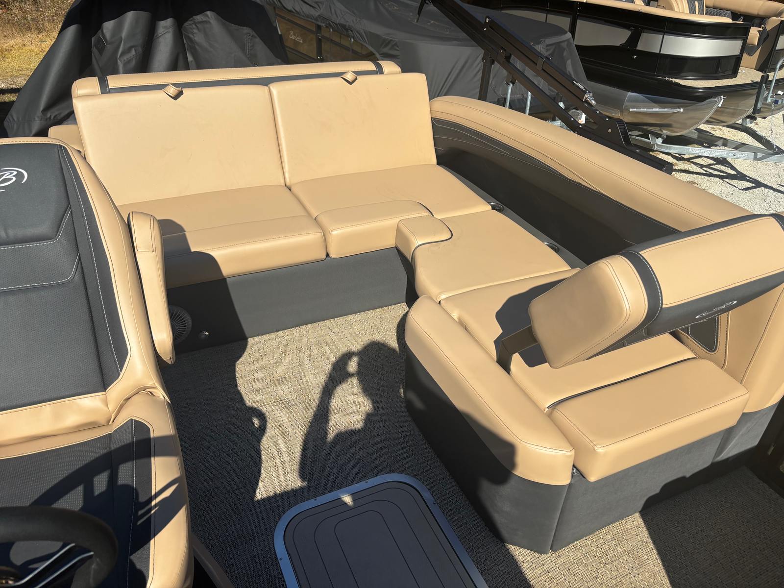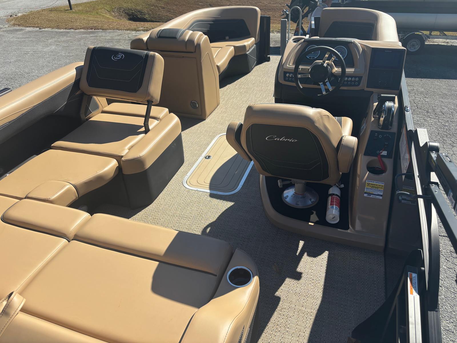 The 2026 Barletta Cabrio C22U is packed with special features that set it apart from other pontoon boats for sale. At the helm, you’ll find the Simrad 7" G07 XSR Chartplotter/Multifunction Display, providing advanced navigation and multifunction capabilities to keep you informed and in control. The interior RGB Lighting Package Cabrio creates a vibrant and customizable atmosphere, perfect for evening cruises or festive gatherings. The Amore Tan flooring adds a touch of elegance and comfort underfoot, while the exterior is adorned with a stainless steel flag pole and American flag, showcasing your pride and style.One of the standout features is the Triple Toon Package with Midship Storage - Cabrio, which enhances stability, buoyancy, and onboard storage capacity. This makes the Cabrio C22U not only a pleasure to drive but also practical for storing gear, water toys, and essentials for extended outings. The Black Diamond railskin color and Blackout Package Cabrio further elevate the boat’s aesthetic appeal, ensuring you turn heads wherever you go.