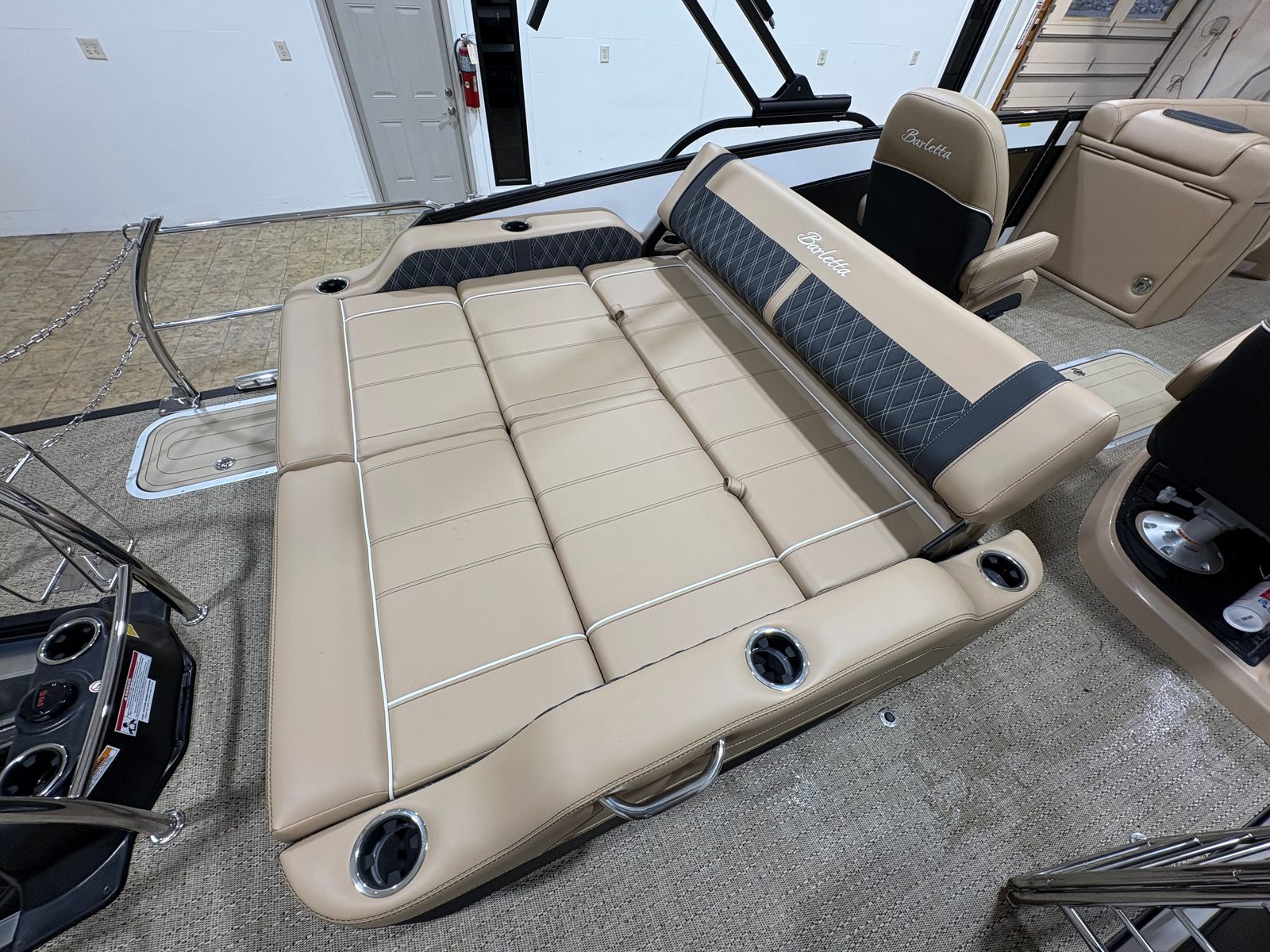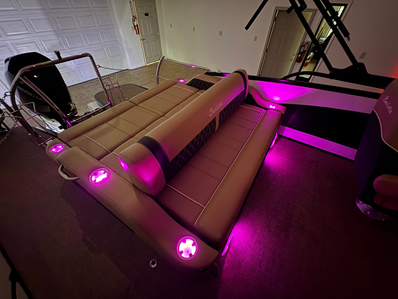 The 2026 Barletta Lusso L23UC is packed with premium features designed to enhance your boating lifestyle. The Blackout Package Lusso, paired with stainless steel safety stanchions and chains, not only adds to the boat’s visual appeal but also provides an extra layer of safety for all passengers. The exterior is protected by a Metal Jacket Protectant, ensuring your investment stays looking pristine season after season. Inside, the Carmella Tan with Onyx furniture offers plush, ergonomic seating, while the Amore Tan flooring is both stylish and easy to maintain. Digital gauges provide clear, real-time information at a glance, keeping you informed and in control at all times. Every element, from the rigging to the steering system, is engineered for maximum reliability and user-friendly operation, making this Barletta boat for sale a standout choice in its class.