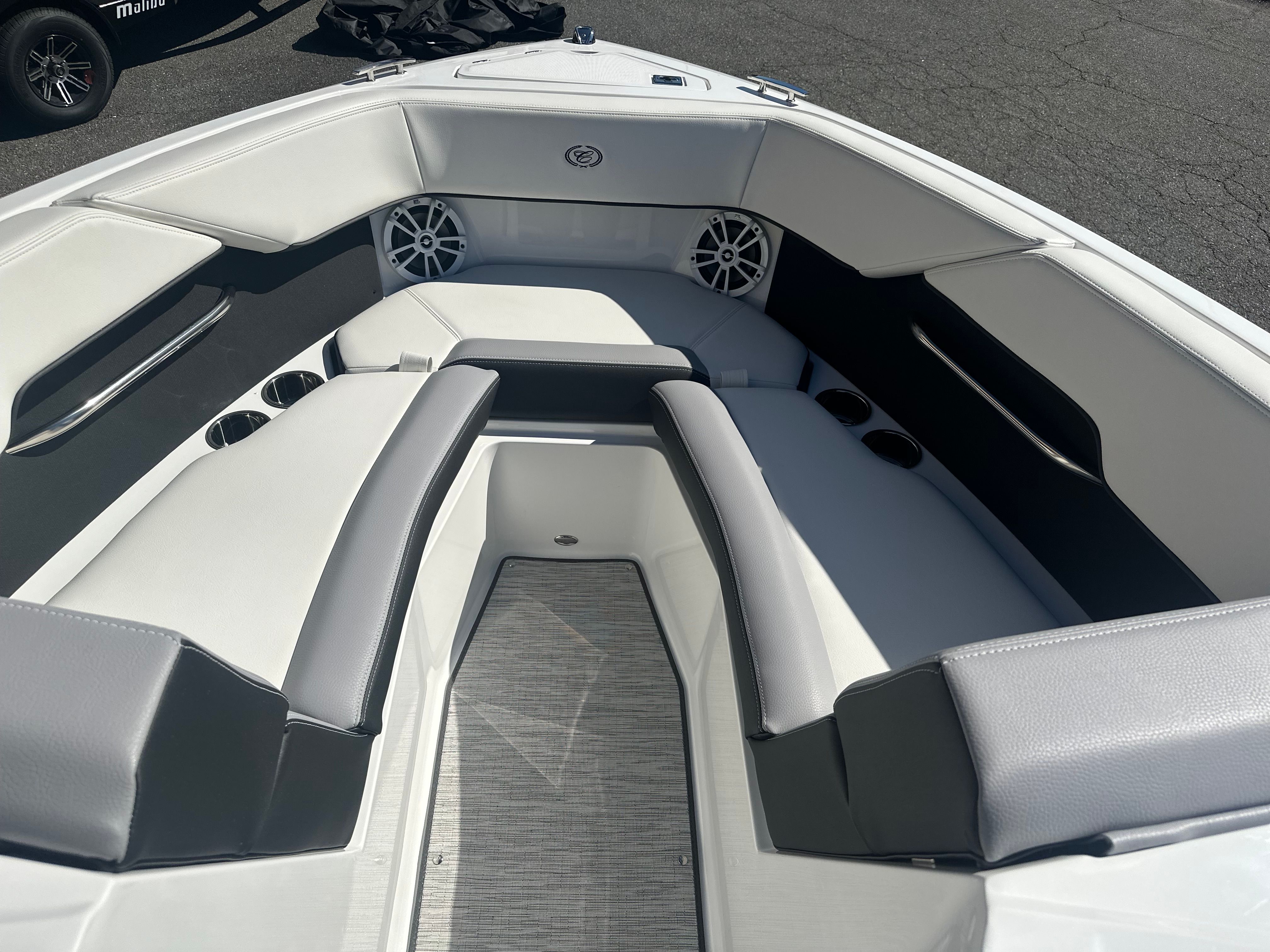 The Cobalt CS23 is designed with practicality in mind, making ownership as enjoyable as the time spent on the water. The battery maintainer and dual battery switch system ensure your boat is always ready to go, reducing downtime and maintenance concerns. The fender clips with lines simplify the docking process, allowing you to secure your boat quickly and easily, even in busy marinas.The durable seagrass floor covering is easy to clean and maintain, providing a comfortable and stylish surface for all your activities. The versatile seating arrangements, including the aft-facing rumble seat, offer flexibility for lounging, entertaining, or simply enjoying the scenery. With its manageable length of just over 23 feet, the CS23 is easy to trailer, launch, and store, making it a practical choice for both new and experienced boaters.