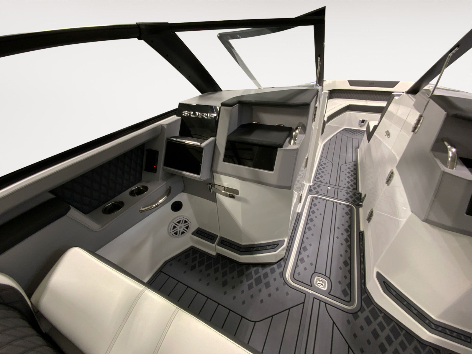 Under the hood, the Cobalt R35 Surf is powered by twin Volvo V8 430CE engines, delivering a combined 860 horsepower. This powerhouse setup ensures exhilarating acceleration, smooth cruising, and the ability to handle a variety of water conditions with confidence. Whether you are carving through waves or enjoying a leisurely cruise, the R35 Surf’s performance is both thrilling and reliable. The advanced propulsion system is engineered for responsive handling, making docking and maneuvering effortless even for less experienced boaters.