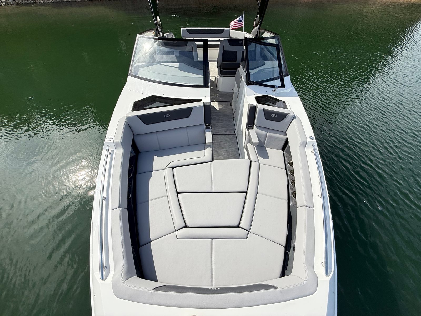 The Cobalt R35 is designed with practicality in mind, making ownership effortless and enjoyable. The cockpit boarding door streamlines entry and exit, especially when docked or rafted up with other boats. The air compressor is a handy addition for inflating paddleboards, tubes, or other water accessories, ensuring you’re always ready for fun.Storage solutions throughout the boat keep your gear organized and accessible, while the bow tonneau cover protects your belongings from the elements. The dual engines not only provide powerful performance but also contribute to easier docking and maneuvering, making the R35 a great choice for both experienced captains and those new to boating.Fuel efficiency is enhanced by Cobalt’s commitment to engineering excellence, allowing you to spend more time on the water and less time refueling. The compliance with California engine requirements ensures you can enjoy boating in regulated waters without concern.