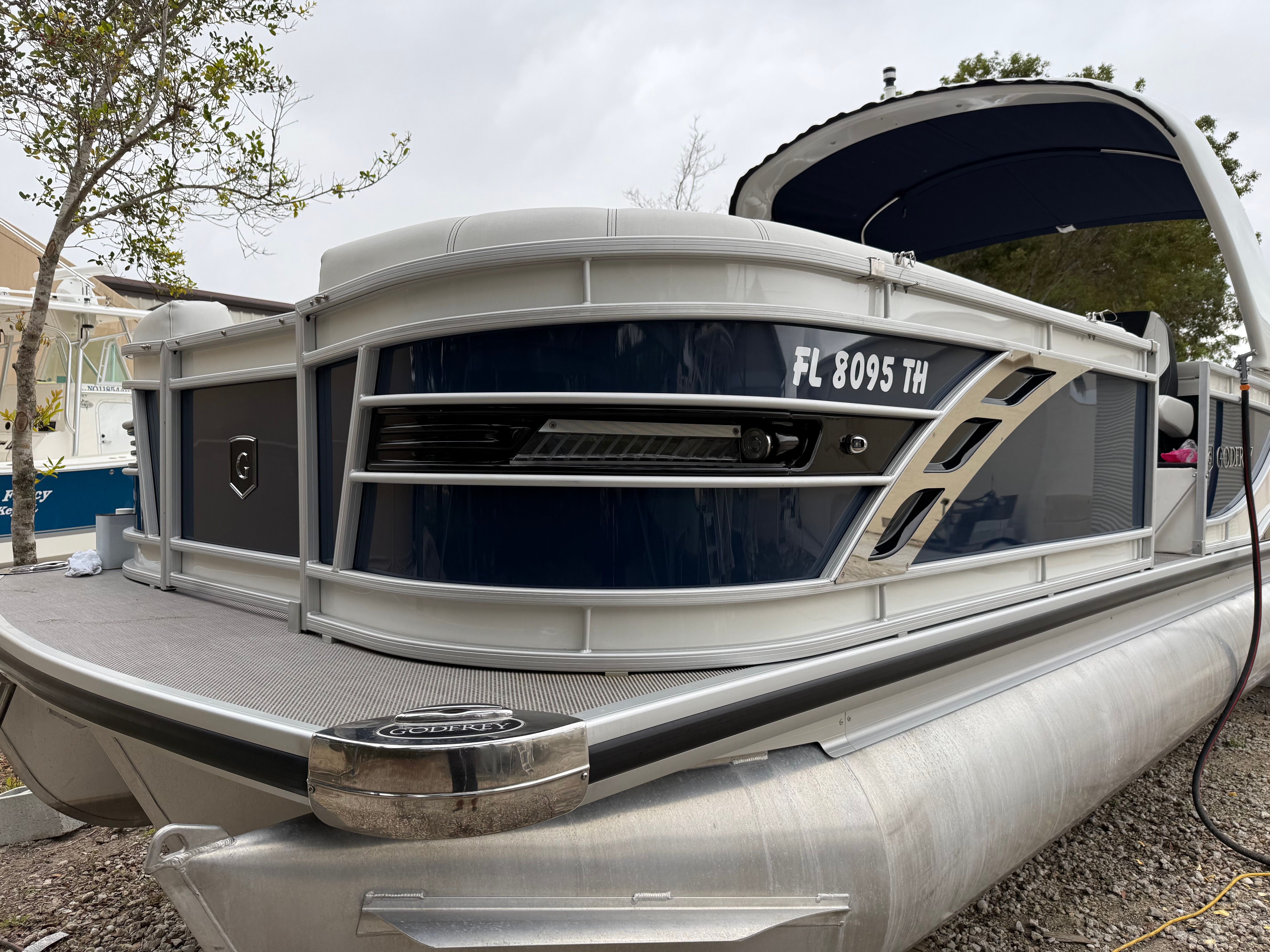 At the heart of the Godfrey SP 2500 SBC is a robust single engine delivering an impressive 300 horsepower. With only 129 engine hours, this pontoon boat promises reliability and plenty of life left for countless adventures. The powerful engine ensures smooth acceleration, responsive handling, and the ability to cruise effortlessly across lakes, rivers, or coastal waters. Whether you are towing water toys, heading out for a day of fishing, or simply enjoying a leisurely cruise, the performance of this pontoon will not disappoint.