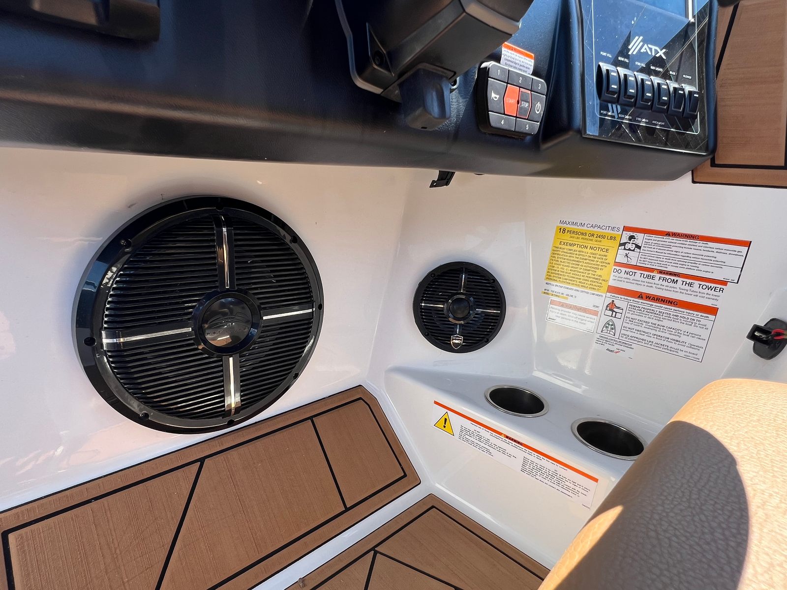 Performance: At the heart of the Atx 24 Type S is a powerful single engine delivering an impressive 350 horsepower. This robust engine ensures exhilarating acceleration, smooth cruising, and the ability to create the perfect wake for both skiers and wakeboarders. The advanced hull design enhances stability and maneuverability, allowing you to carve through the water with precision and confidence. Whether you are towing a wakeboarder, skier, or simply enjoying a high-speed ride, the Atx 24 Type S offers the performance you need for an action-packed day on the water.