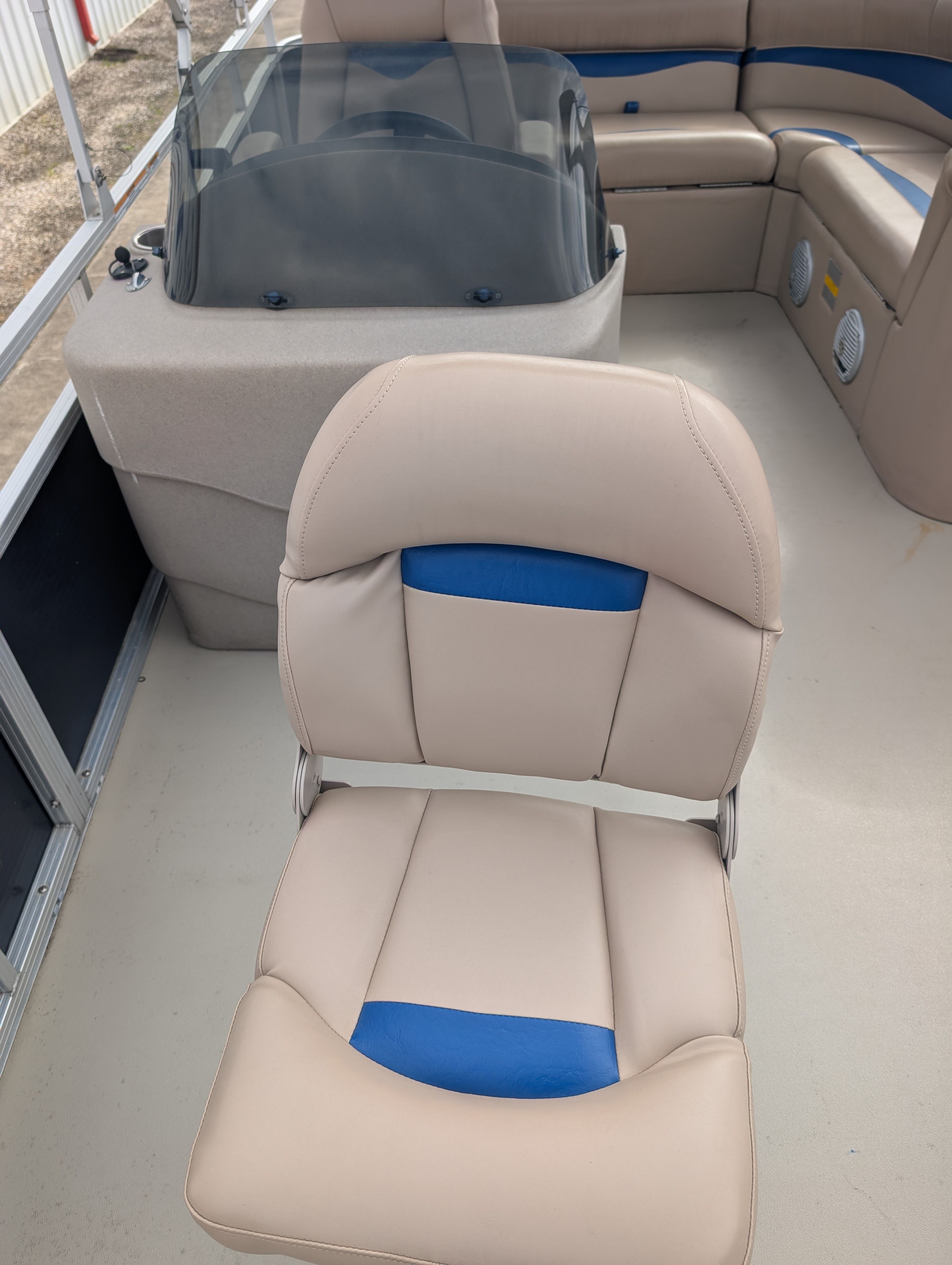 The Avalon LSV RF-18 comes equipped with a selection of special features designed to enhance your time on the water. The Bimini top offers shade and protection from the sun, creating a comfortable environment for relaxing or socializing, even on the brightest days. Enjoy your favorite tunes with the Bluetooth stereo system, which allows you to stream music wirelessly and set the perfect mood for any occasion. For anglers and those who love exploring, the Minn Kota I Pilot Trolling Motor provides precise control and effortless navigation, making fishing trips and leisurely cruises more enjoyable than ever.This pontoon boat’s layout is designed for maximum comfort and convenience, with spacious seating areas that invite conversation and relaxation. The open deck plan ensures easy movement throughout the boat, while the sturdy construction and quality materials reflect Avalon’s commitment to safety and longevity. As a used Avalon boat for sale, the LSV RF-18 offers a proven track record of performance and reliability, giving you peace of mind as you embark on new adventures.