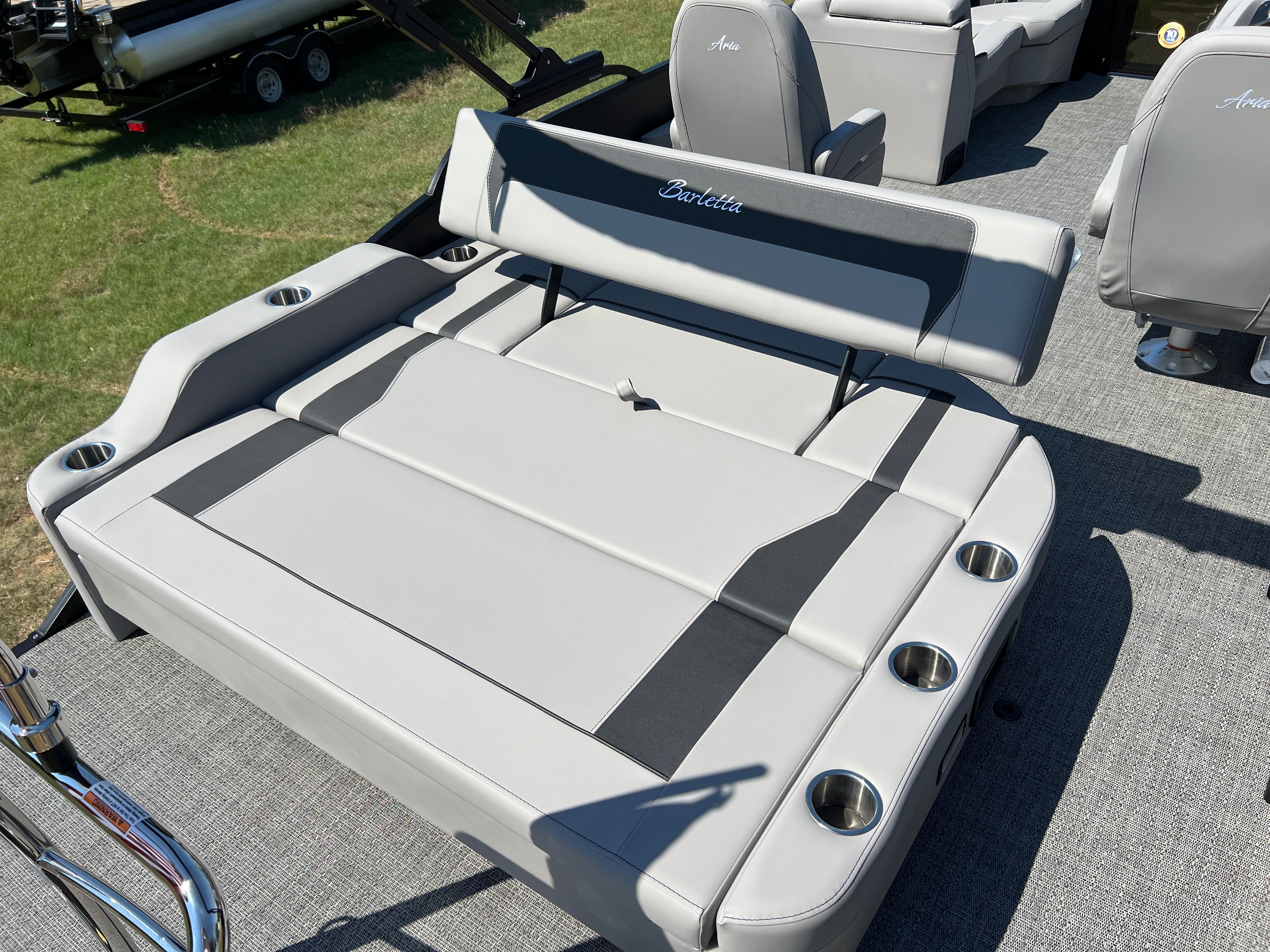 Designed to be obtainable without sacrifice. The Aria is for those who seek quality at a favorable price point. With 2 floorplans, the Barletta DNA, and uncompromised construction, this is affordable luxury. Do you have a large crew that demands lots of seating? The quad-lounge is the layout for those who want to spread out and relax on the ultra-comfy Barletta chaise lounges. The way the furniture wraps around the perimeter of the boat is also great for keeping curious kiddos and pets inside the boat while underway. Freight, prep, dealer fee and tax additional.