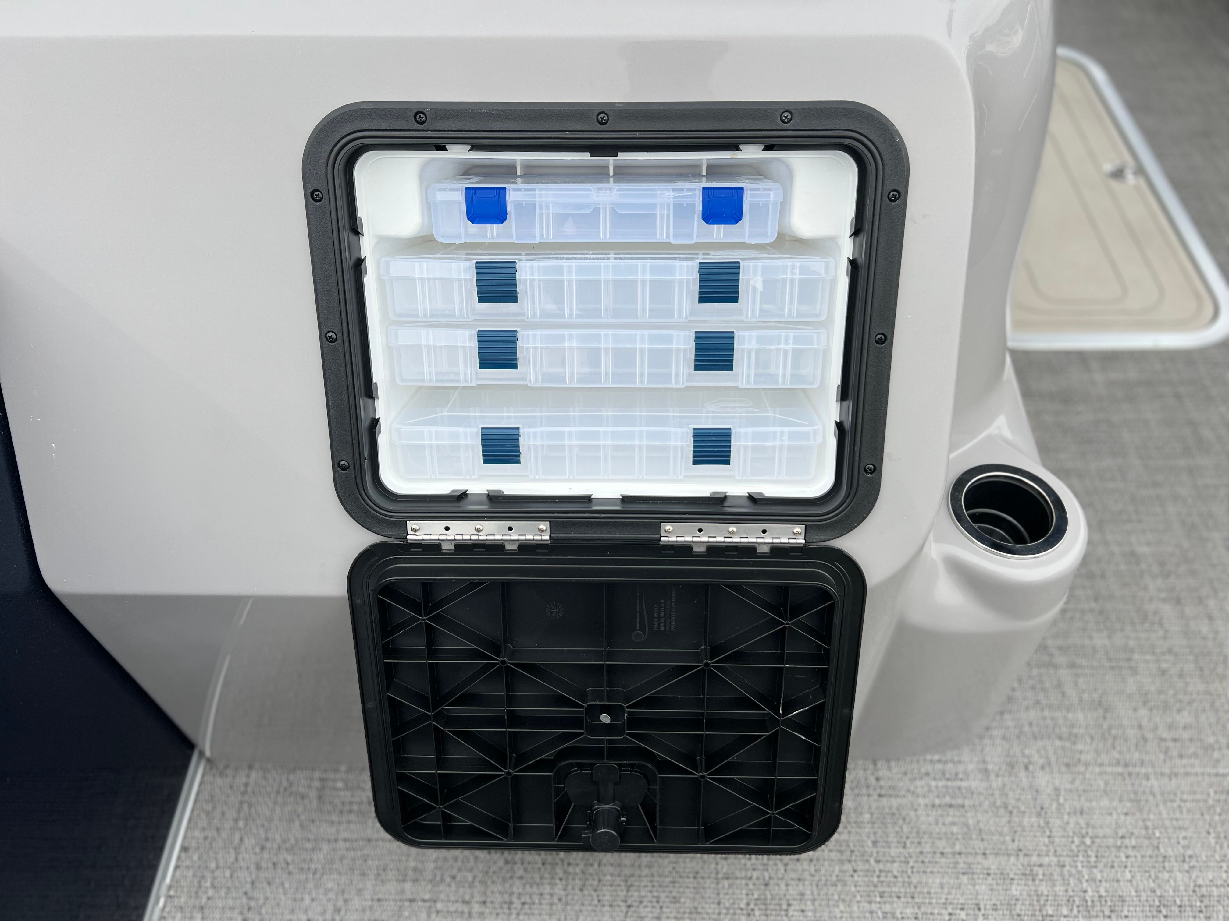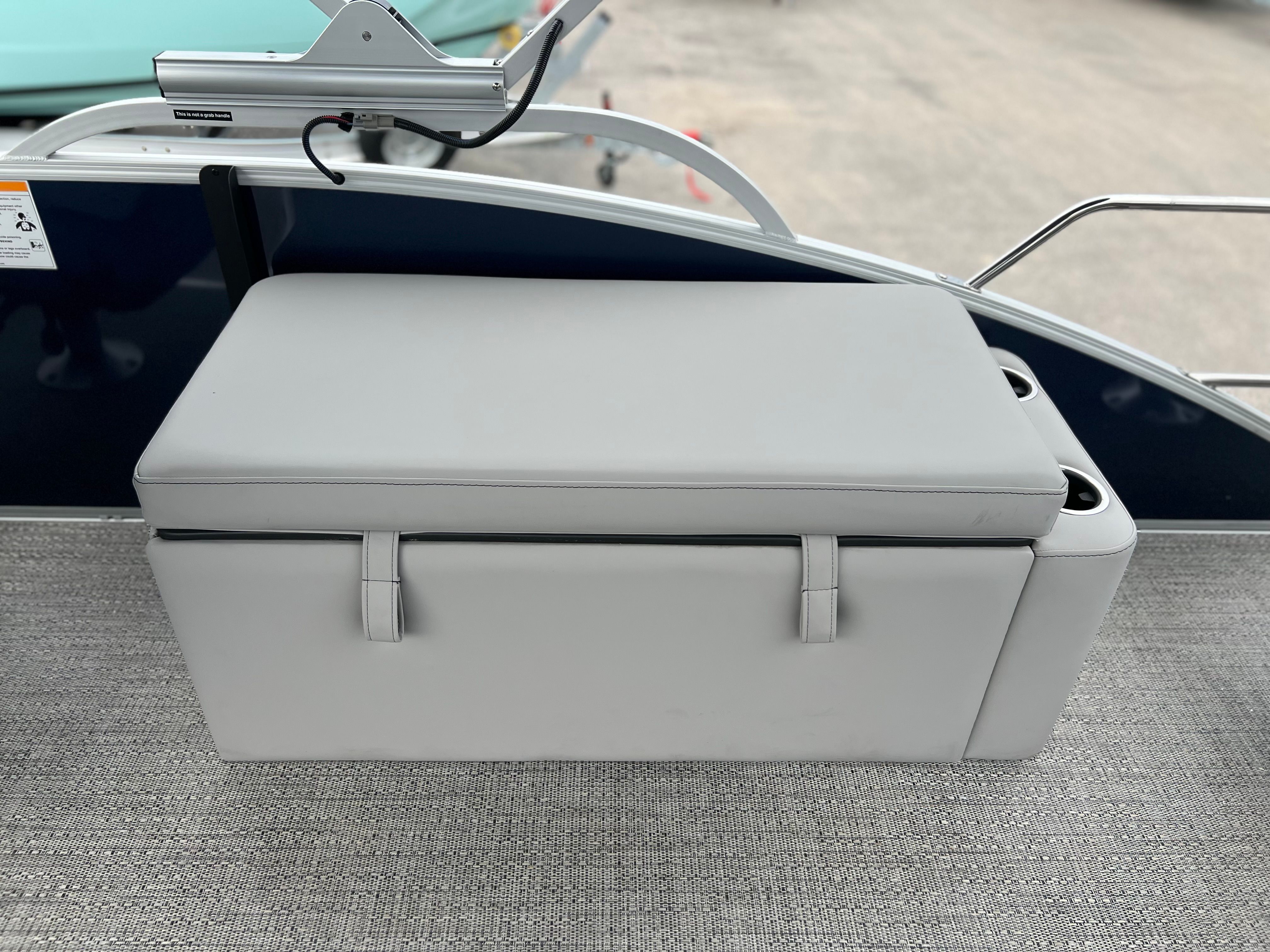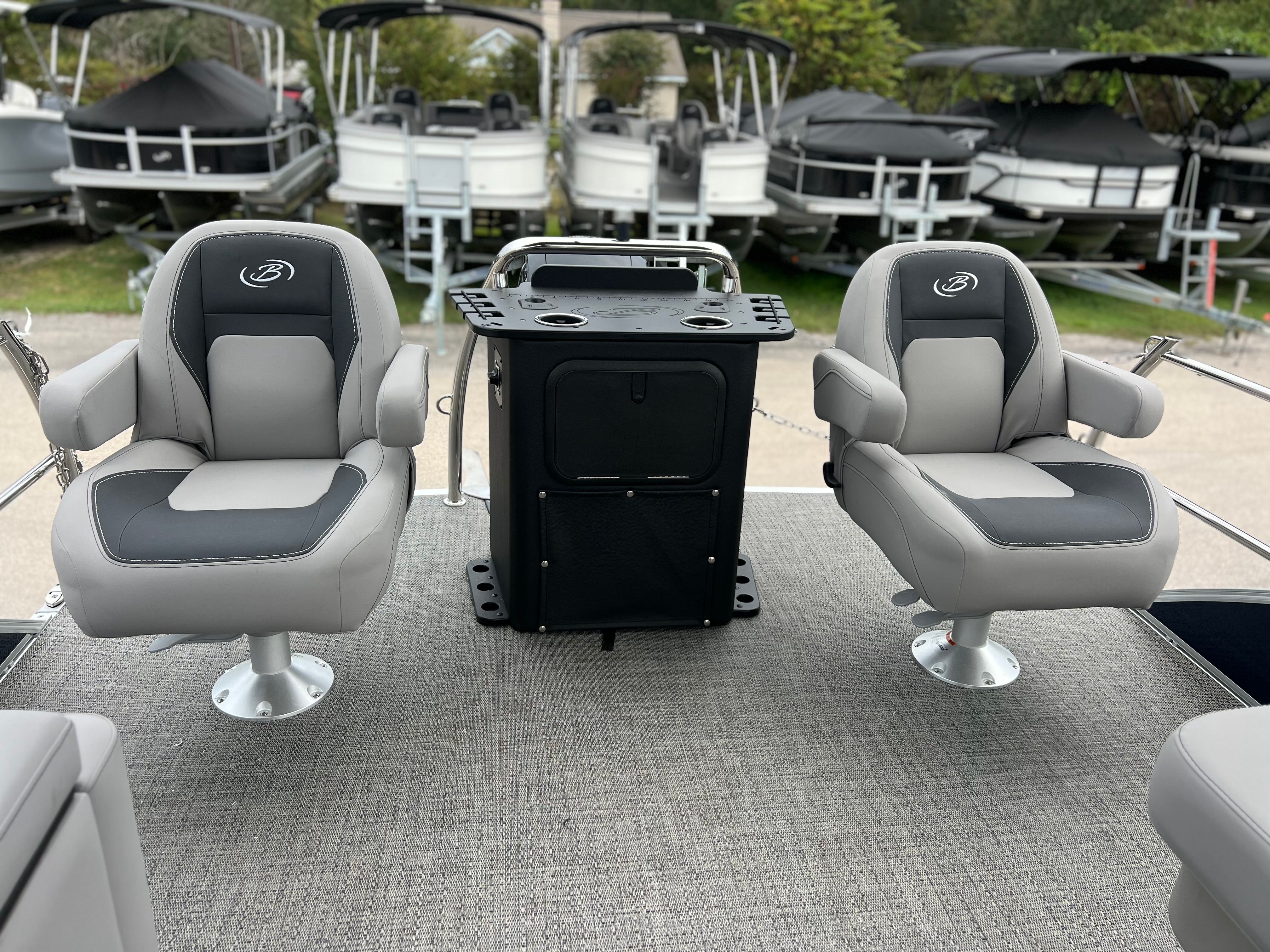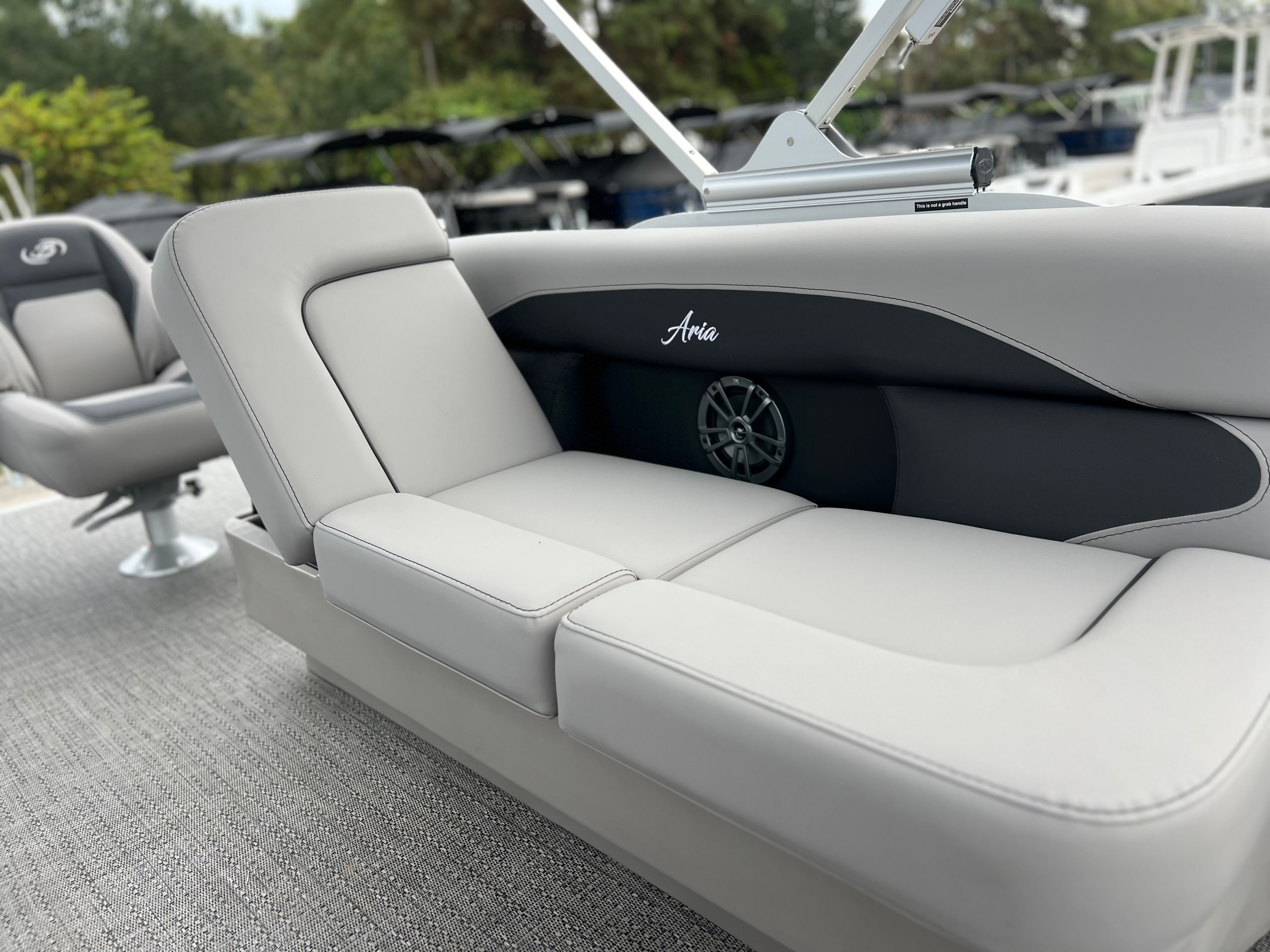 The 2025 Barletta Aria A22F is loaded with features designed to enhance your boating experience. The Triple Toon Package Aria provides added stability and buoyancy, ensuring a smooth and comfortable ride even in choppier waters. The Amore Gray flooring is not only stylish but also easy to maintain, offering a sophisticated look that complements the Tempest Gray furniture. The helm is equipped with a Simrad 7 G07 XSE, providing advanced navigation and control at your fingertips. The Blue Sapphire Railskin adds a touch of elegance and modern flair, while the Metal Jacket Protectant safeguards the exterior from the elements, preserving the boat’s beauty for years to come.