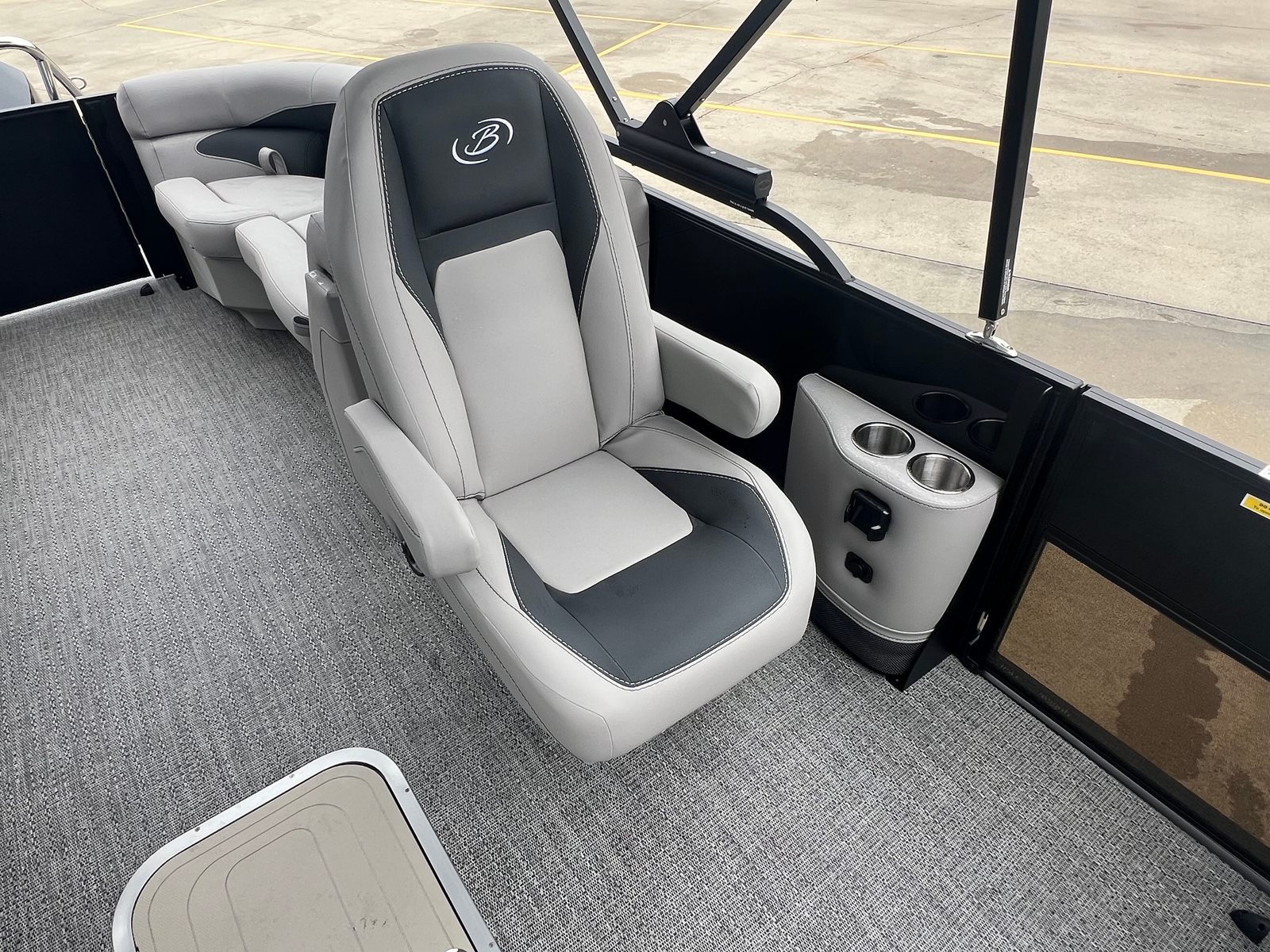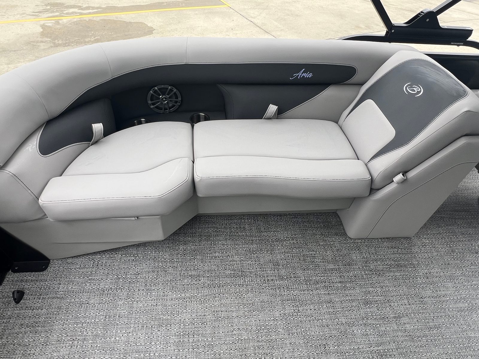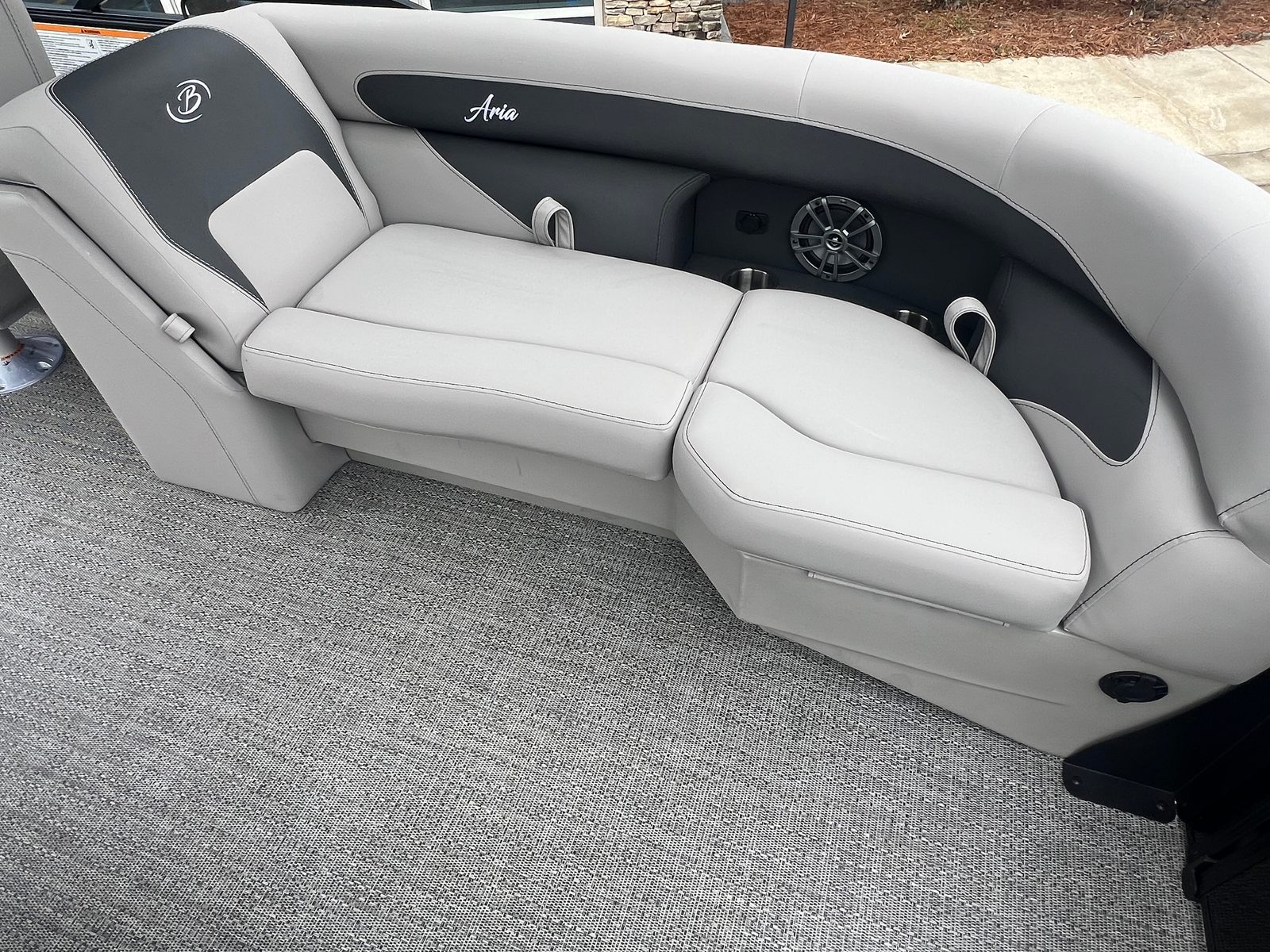 The Barletta Aria A22QC-Platinum comes loaded with special features that elevate your boating experience. The Railskin Color Aria in Black Diamond, paired with the Blackout Package Aria, gives this pontoon a bold and sophisticated appearance that is sure to turn heads. Inside, the Tempest Gray furniture offers both style and comfort, creating an inviting space for you and your guests to relax. The Amore Gray flooring is not only visually appealing but also practical, providing a durable and easy-to-clean surface for all your adventures.The Triple Toon Package Aria enhances stability and performance, ensuring a smooth and enjoyable ride even in choppier waters. The on-board battery charger for a single battery keeps your power needs covered, so you can focus on making memories. A stainless steel flag pole with an American flag adds a patriotic touch, making this pontoon boat a true standout on any waterway.