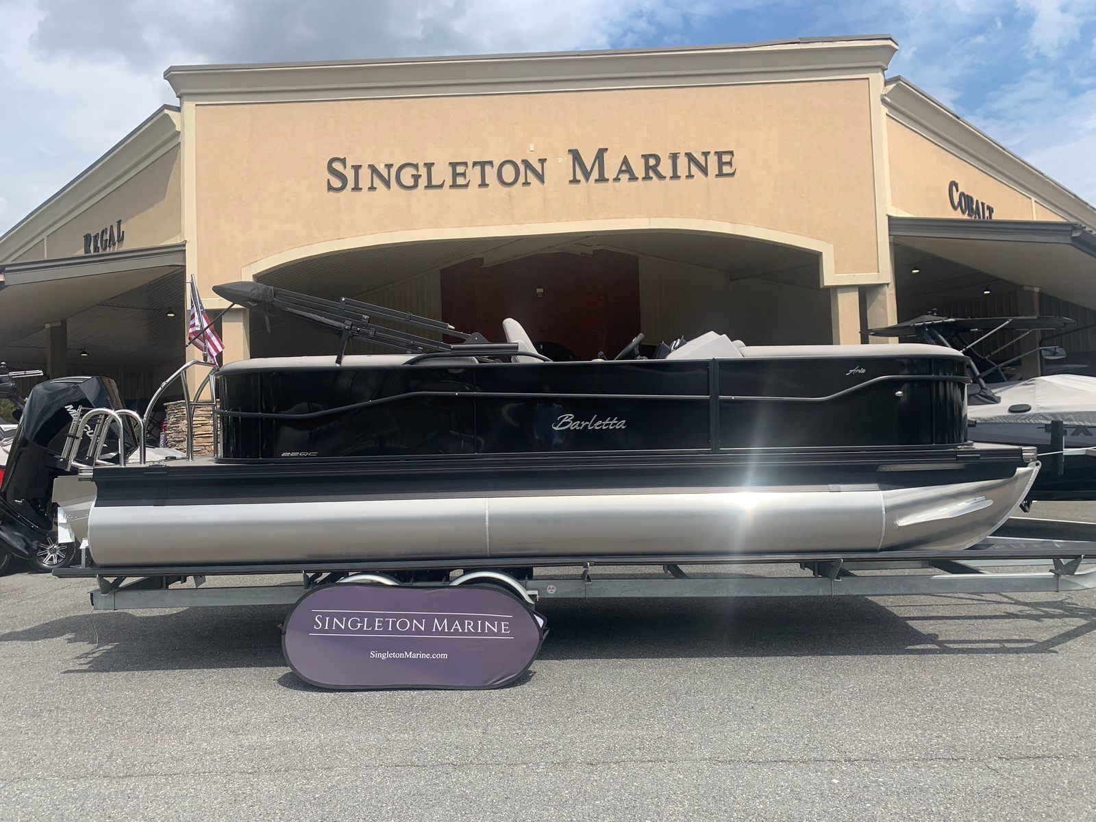 The Barletta Aria A22QC-Platinum is packed with premium features designed to enhance comfort, convenience, and style. The Blackout Package Aria offers a bold and contemporary aesthetic, while the Stainless Steel Flag Pole with American Flag adds a touch of patriotic flair to your vessel. At the helm, the Simrad 7" G07 XSE provides advanced navigation and system monitoring, keeping you informed and in control at all times.Inside, the Tempest Gray furniture creates a welcoming and luxurious atmosphere, perfect for relaxing or entertaining guests. The Triple Toon Package Aria not only improves stability and performance but also enables the inclusion of In Floor Midship Storage, offering ample space for gear, water toys, and personal belongings. Every detail is thoughtfully designed to ensure your time on the water is as enjoyable and stress-free as possible.