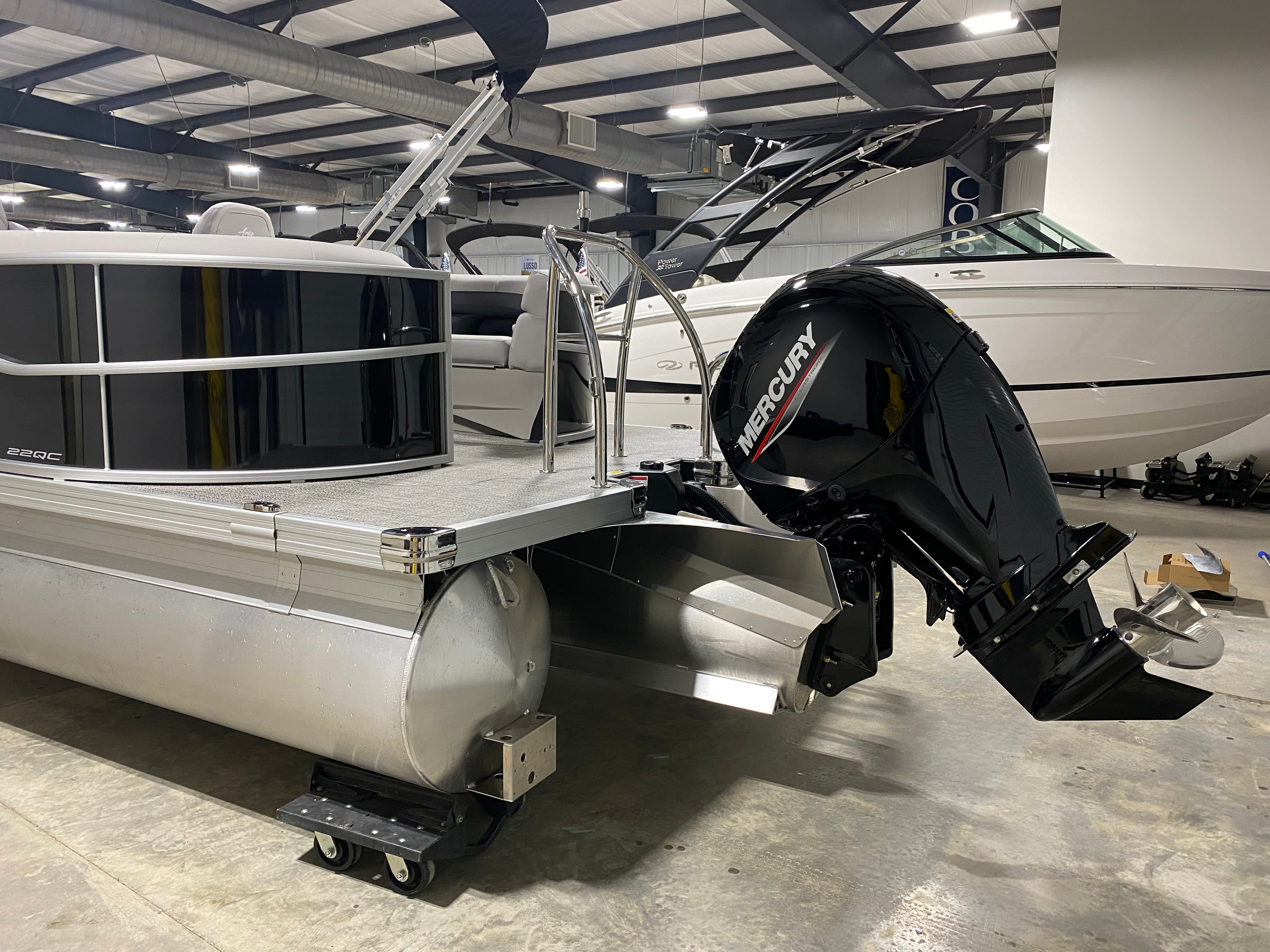 The Barletta Aria A22QC is designed with convenience in mind. The in-floor midship storage provides a smart solution for keeping your belongings safe and accessible, while the intuitive Mercury - Mechanical controls make docking and maneuvering a breeze. The efficient Mercury 150L Four Stroke engine offers a balance of power and fuel economy, so you can spend more time on the water and less time at the fuel dock.Whether you are planning a day of swimming, fishing, or simply cruising, this pontoon boat adapts to your needs. Its manageable size makes it easy to trailer, launch, and store, giving you the flexibility to explore a variety of waterways and destinations.