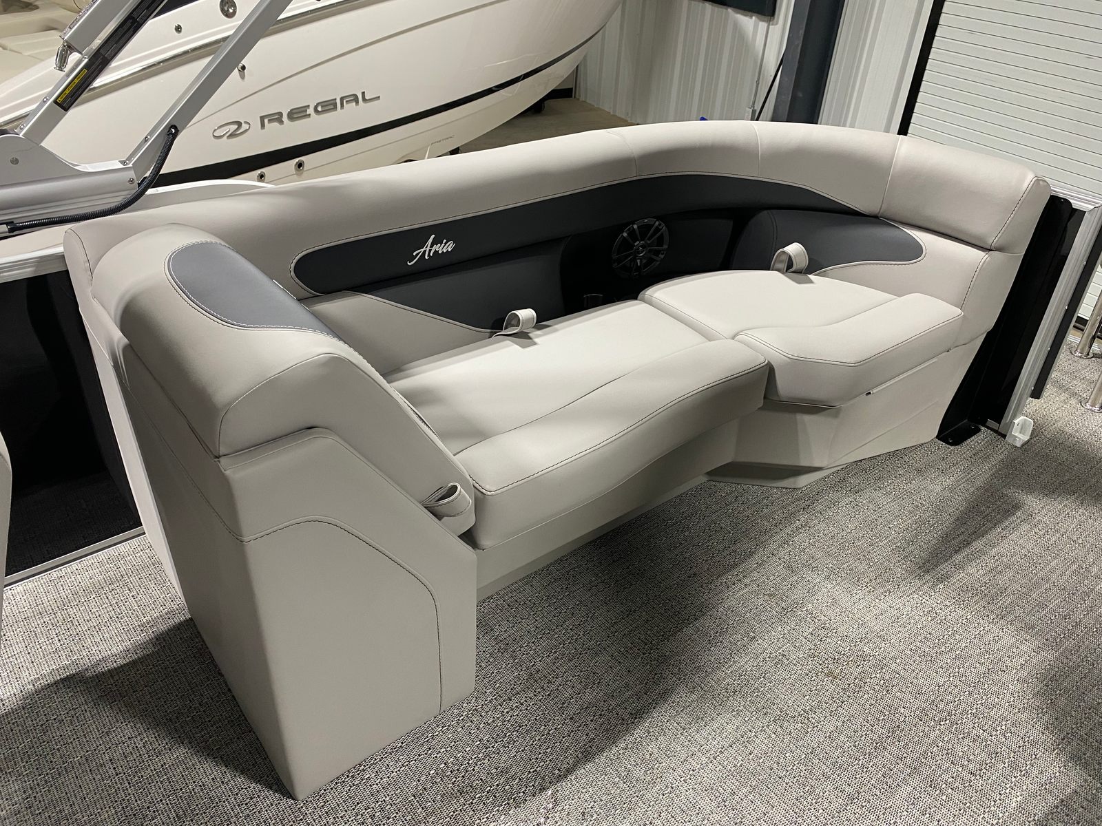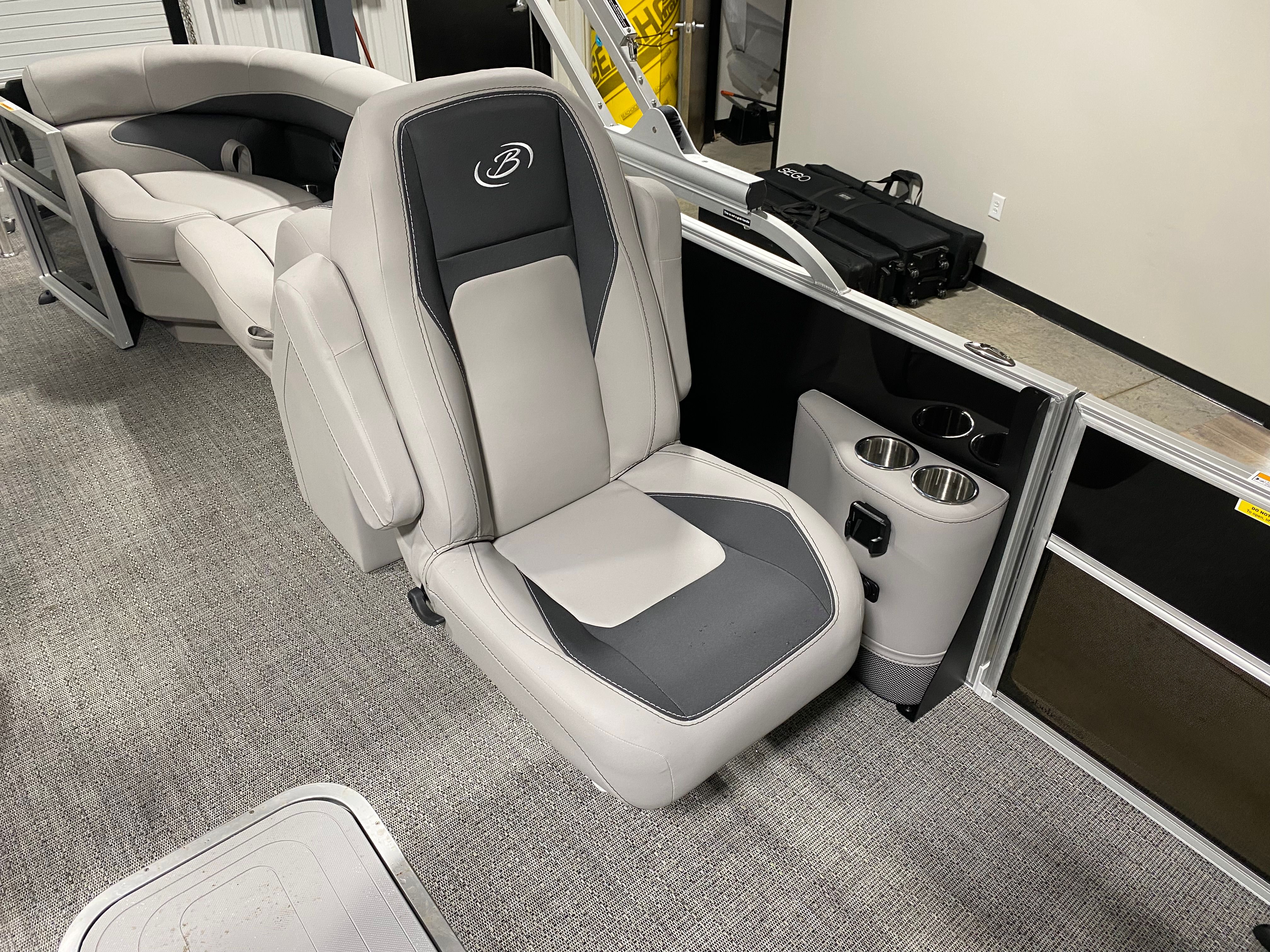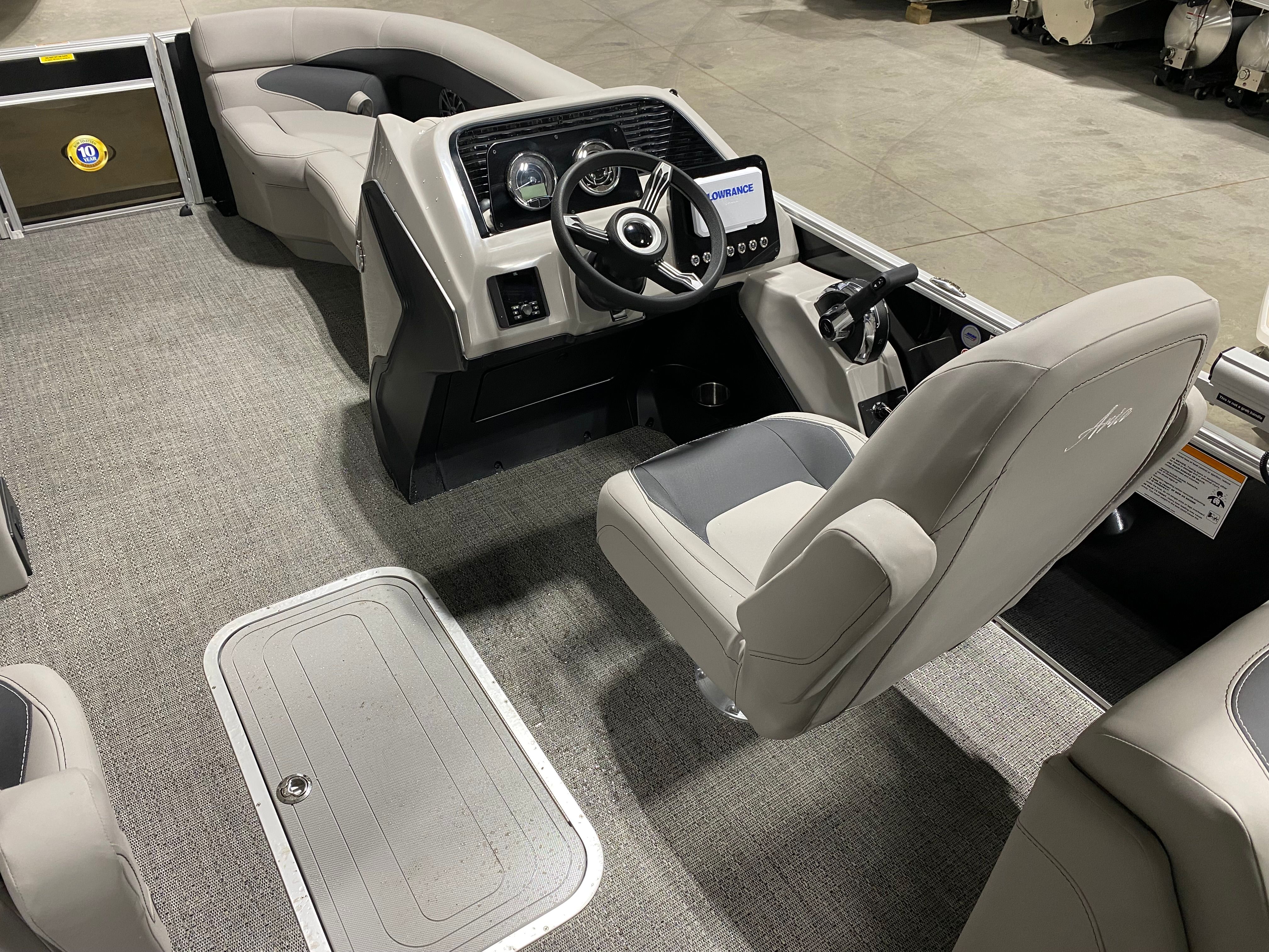 Step aboard the Barletta Aria A22QC and you will immediately notice the attention to detail and premium finishes throughout. The Tempest Gray furniture provides a plush, inviting atmosphere, while the Amore Gray flooring adds a touch of elegance and durability underfoot. The in-floor midship storage is a practical addition, offering ample space to stow your gear, water toys, or picnic essentials, keeping the deck clutter-free and organized.Navigation and safety are enhanced with the Eagle 5 GPS, giving you confidence to explore new waters and find your way back home with ease. The stainless steel flag pole with an American flag adds a patriotic touch, making your boat stand out at every dock or marina.