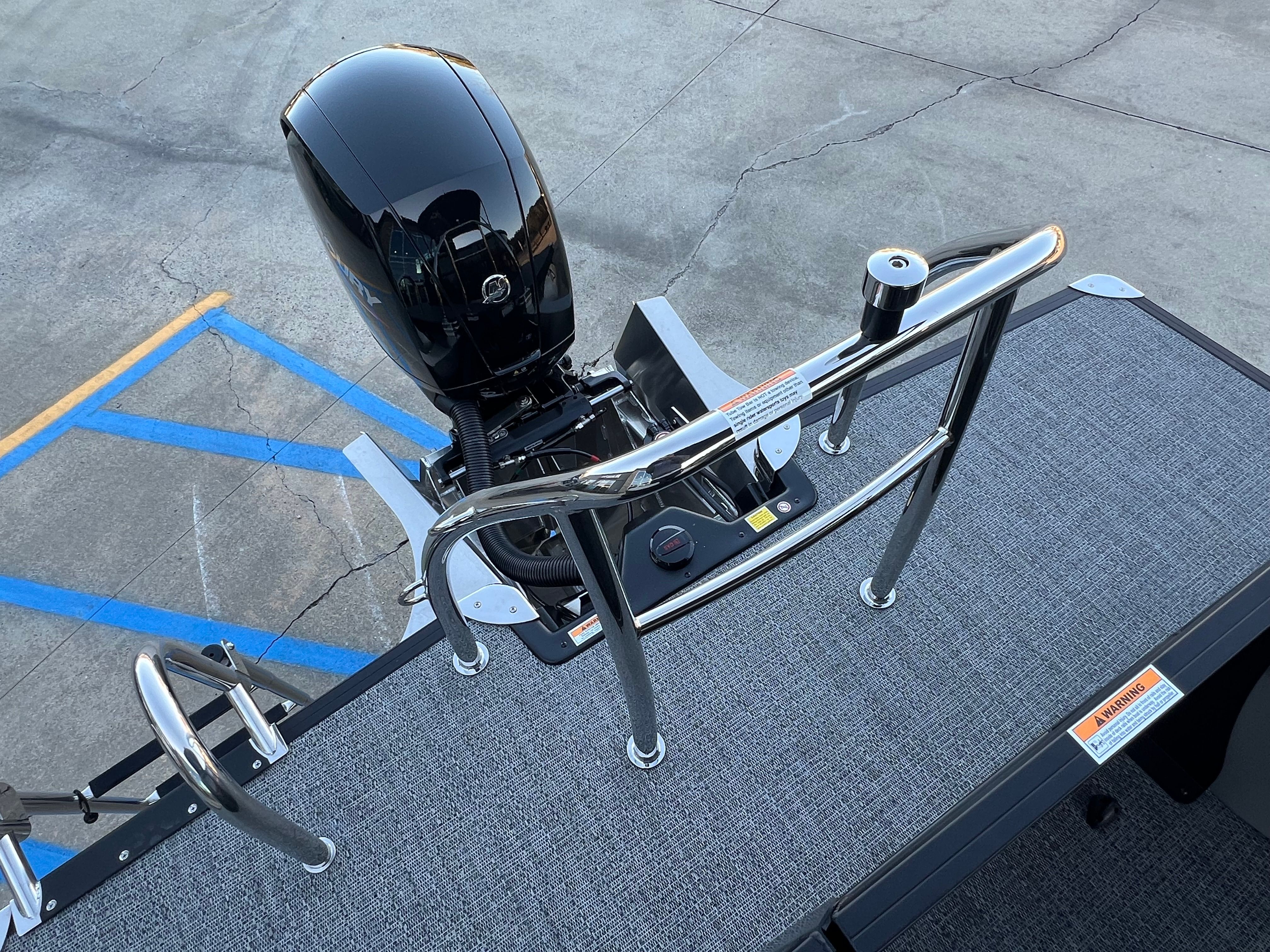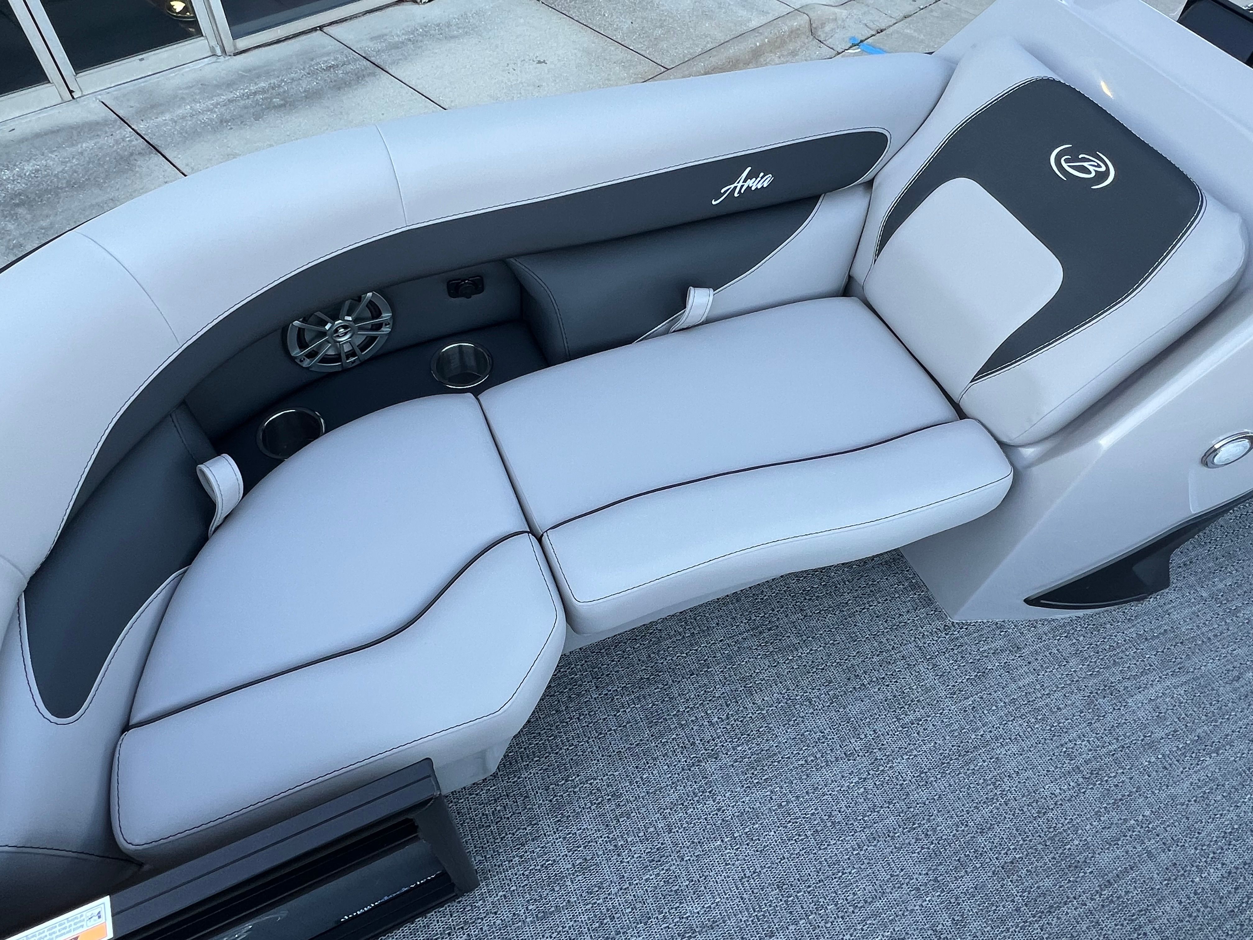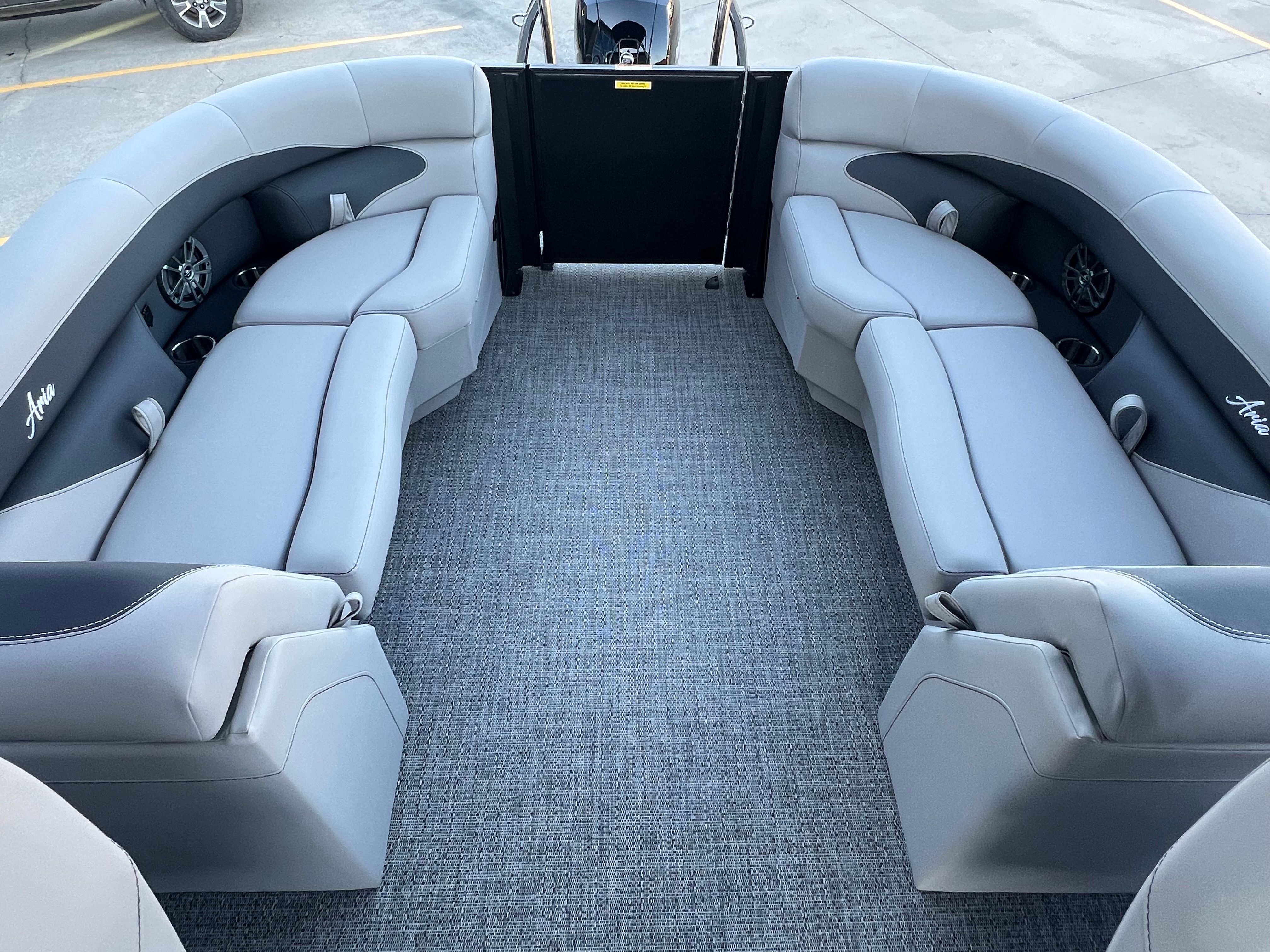 The Barletta Aria A22QC is loaded with features designed to maximize your comfort and enjoyment on the water. The Black Diamond Railskin and Blackout Package Aria give the boat a striking, contemporary look that turns heads at every dock. The Tempest Gray furniture offers plush seating for you and your guests, while the Amore Gray flooring is both durable and easy to clean, making maintenance a breeze.One of the standout features is the Triple Toon Package Aria, which provides enhanced buoyancy and stability, allowing for a smoother and more secure ride. The Mercury (M) 150L Four Stroke engine, combined with Mercury mechanical rigging and a stainless steel prop, ensures reliable performance and longevity. The clipped playpen cover with poles offers protection from the elements, keeping your boat looking pristine year after year. Additionally, the in-floor midship storage provides ample space for stowing gear, water toys, and other essentials, keeping the deck clutter-free and organized.