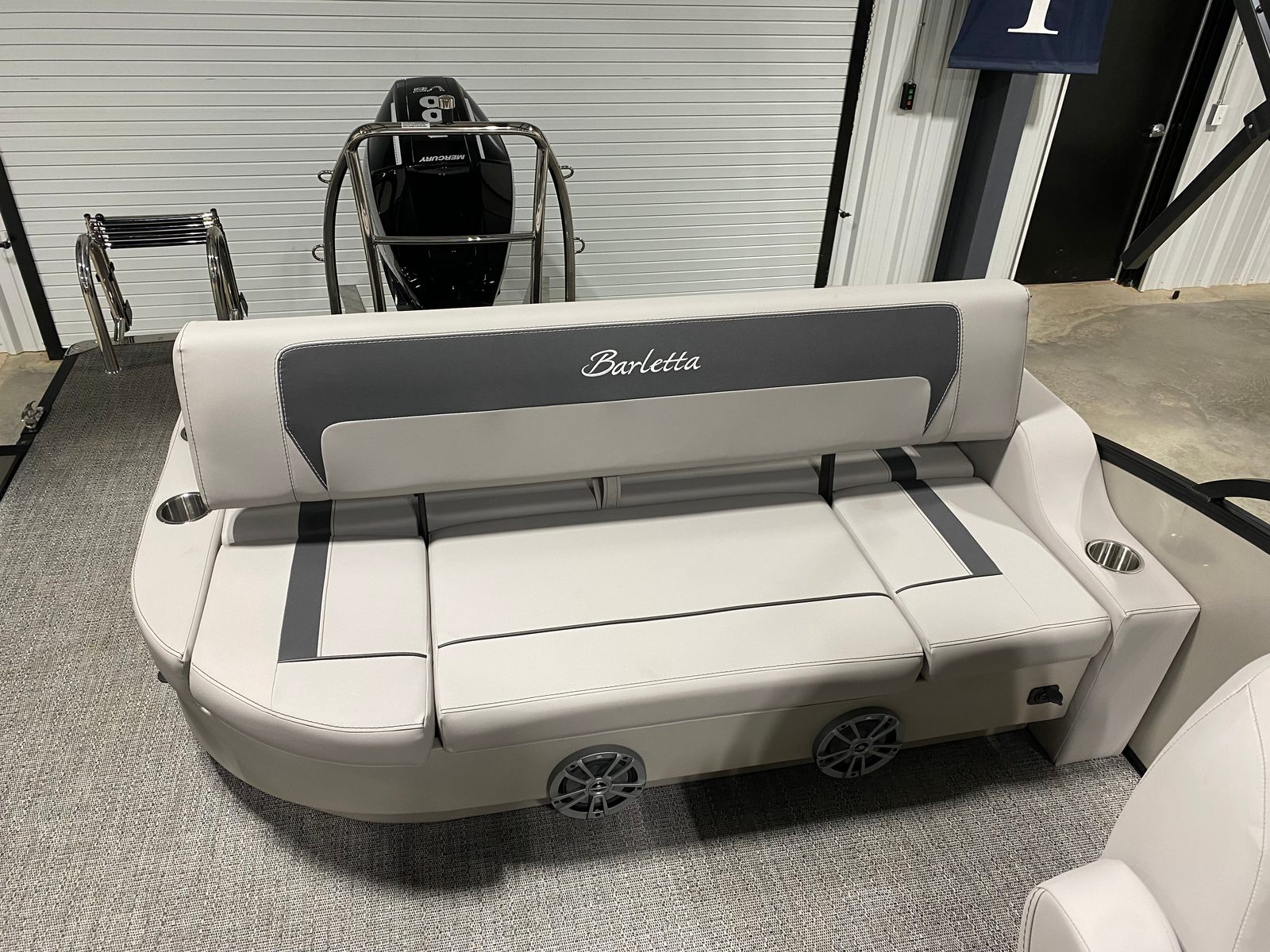 Under the hood, the Barletta Aria A22UC-Platinum is powered by a robust Mercury (M) 200L FourStroke engine, delivering an impressive 200 horsepower. This single-engine setup ensures smooth acceleration, responsive handling, and reliable performance, whether you are gliding across calm waters or picking up speed for a thrilling ride. The Mercury FourStroke is renowned for its fuel efficiency and quiet operation, allowing you to enjoy long days on the water without interruption. The pre-rig Mercury mechanical system ensures seamless integration and optimal control, giving you confidence at the helm. With the Triple Toon Package Aria, this pontoon boat offers enhanced stability and maneuverability, making it a joy to operate in a variety of conditions.