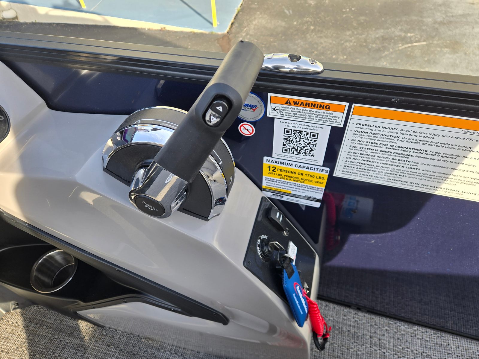 Powering the Barletta Aria A22UC-Platinum is a single Mercury (M) 200L FourStroke engine, delivering an impressive 200 horsepower. This engine is renowned for its reliability, smooth operation, and fuel efficiency, making it ideal for long days on the water. The Mercury - Mechanical with Power Assist steering ensures effortless handling, even at higher speeds, while the rig engine with a stainless steel prop provides enhanced durability and performance. Whether you’re cruising across the lake or enjoying a leisurely ride, this pontoon boat offers a responsive and enjoyable boating experience.