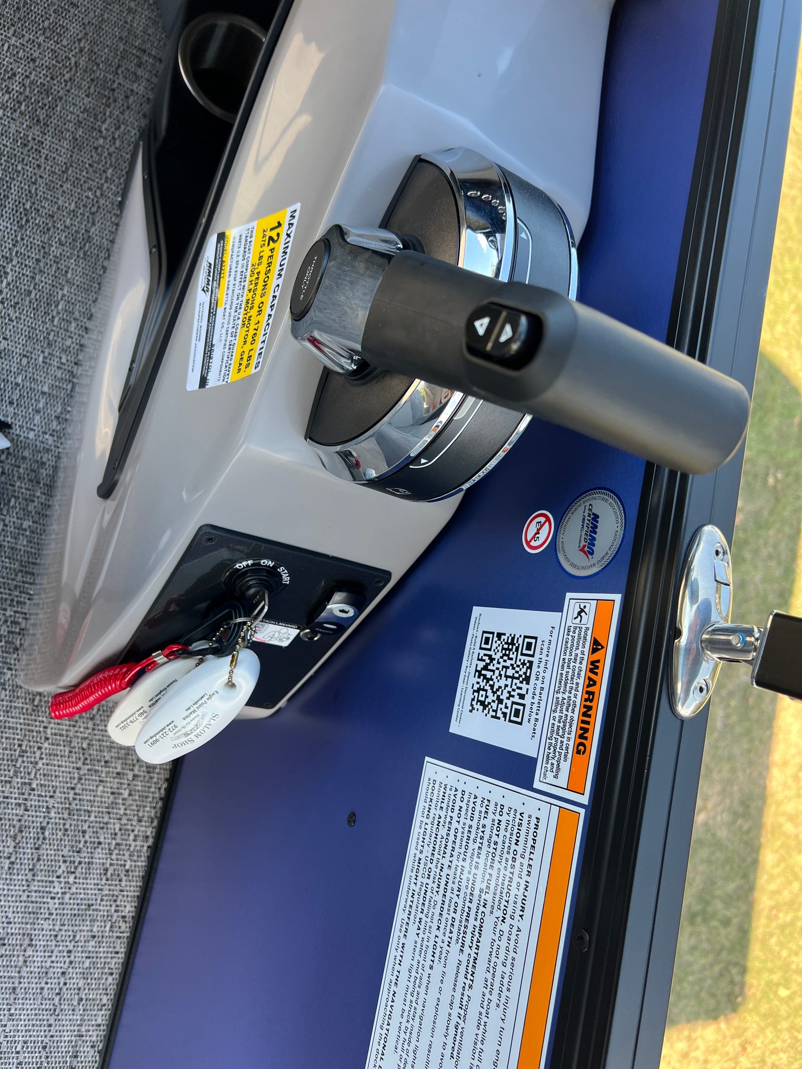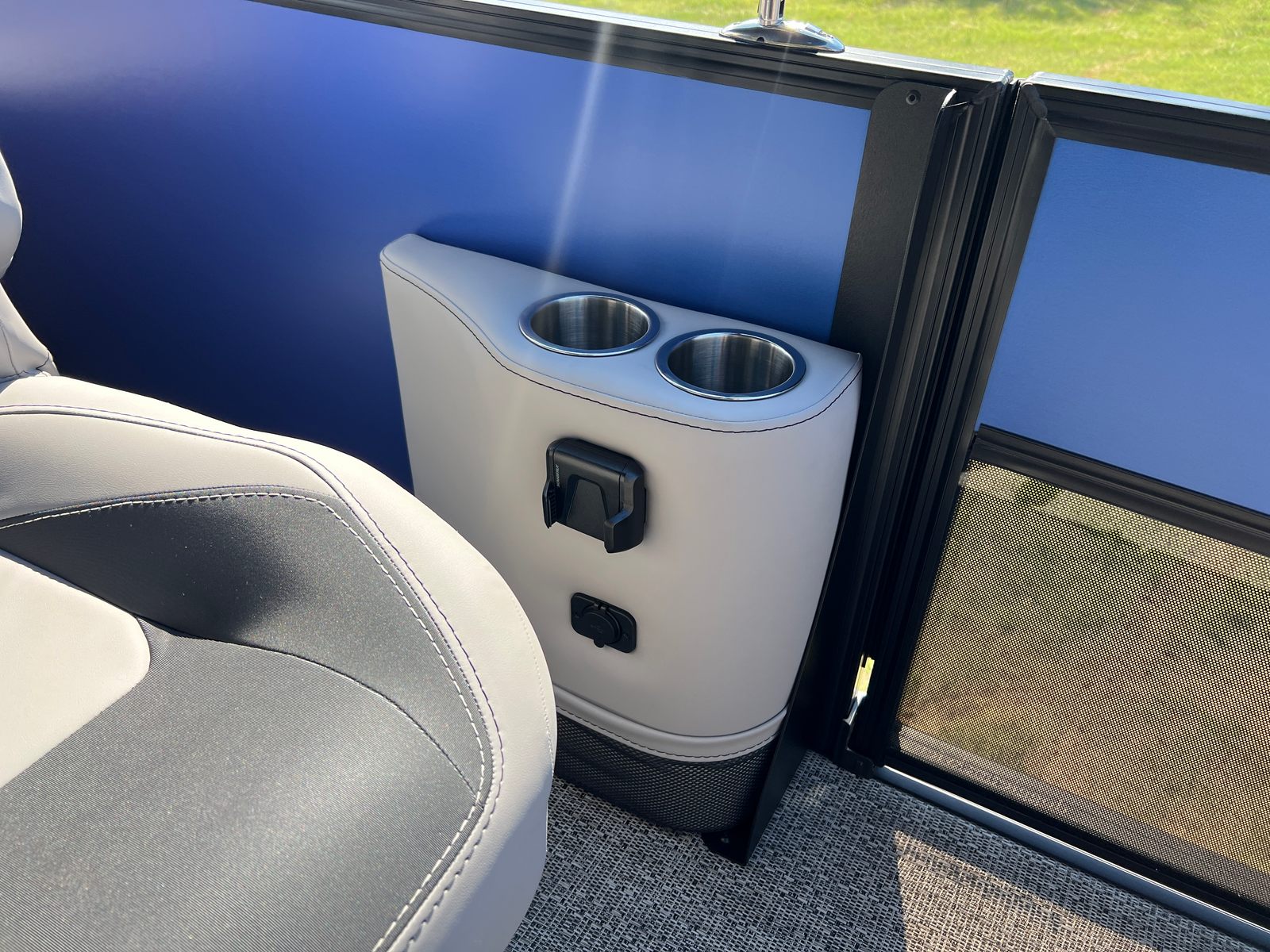 The Barletta Aria A22UC is packed with features designed to elevate your boating experience. The Pacific Matte Blue Railskin, complemented by Black Diamond accents and the Blackout Package Aria, creates a striking visual impression. Inside, the Tempest Gray furniture offers a plush, inviting atmosphere, while the Amore Gray flooring is both stylish and easy to maintain. The Triple Toon Package Aria enhances buoyancy and stability, making this pontoon perfect for larger groups or those who want extra peace of mind on the water. The Mercury 150L Four Stroke engine, paired with a stainless steel prop, ensures reliable performance and longevity. A stainless steel flag pole with an American flag adds a patriotic touch, making this boat a true standout.