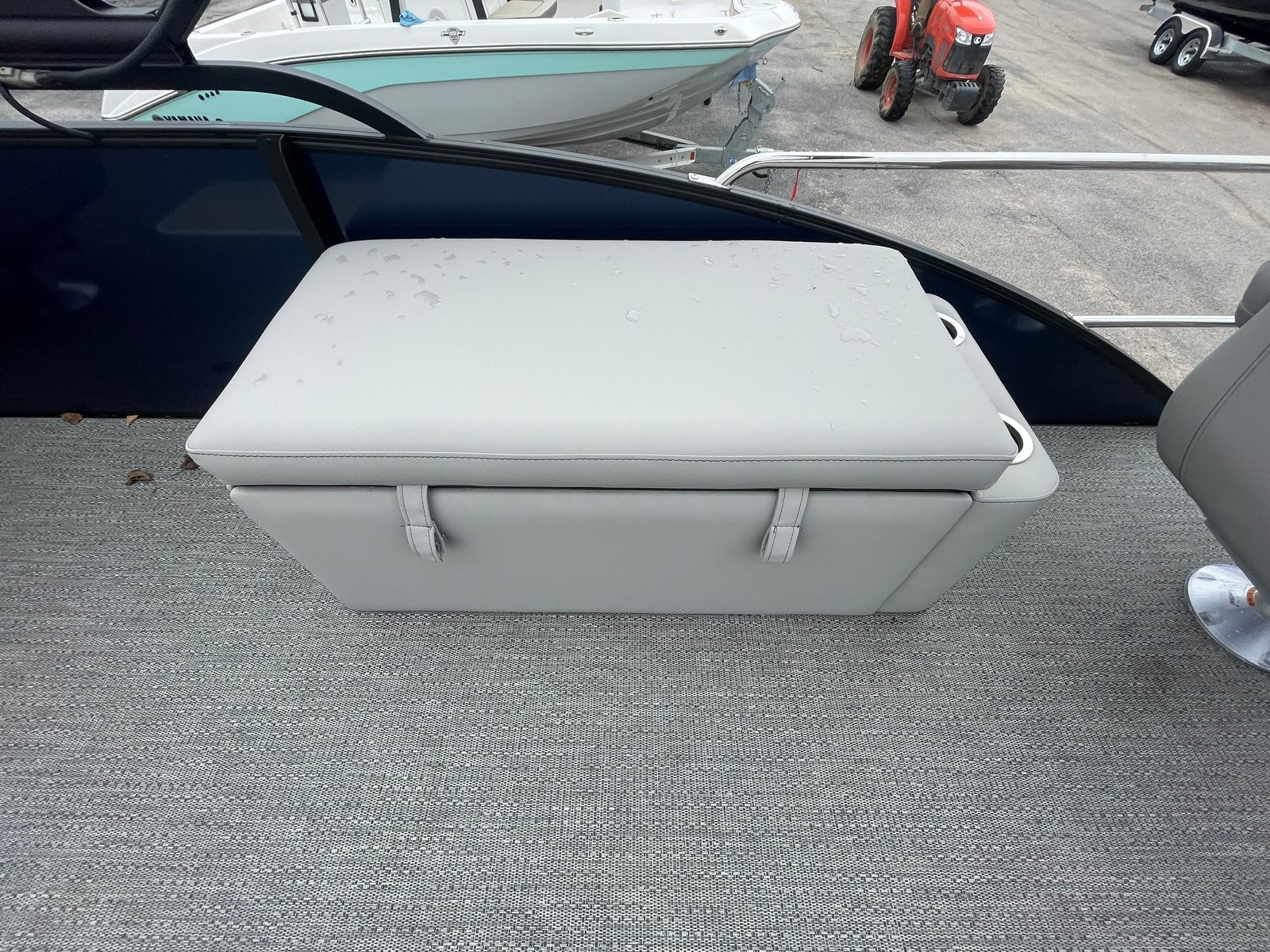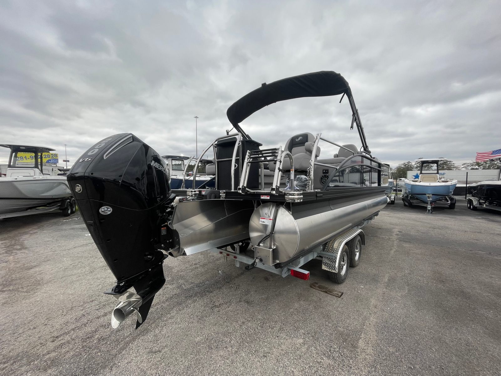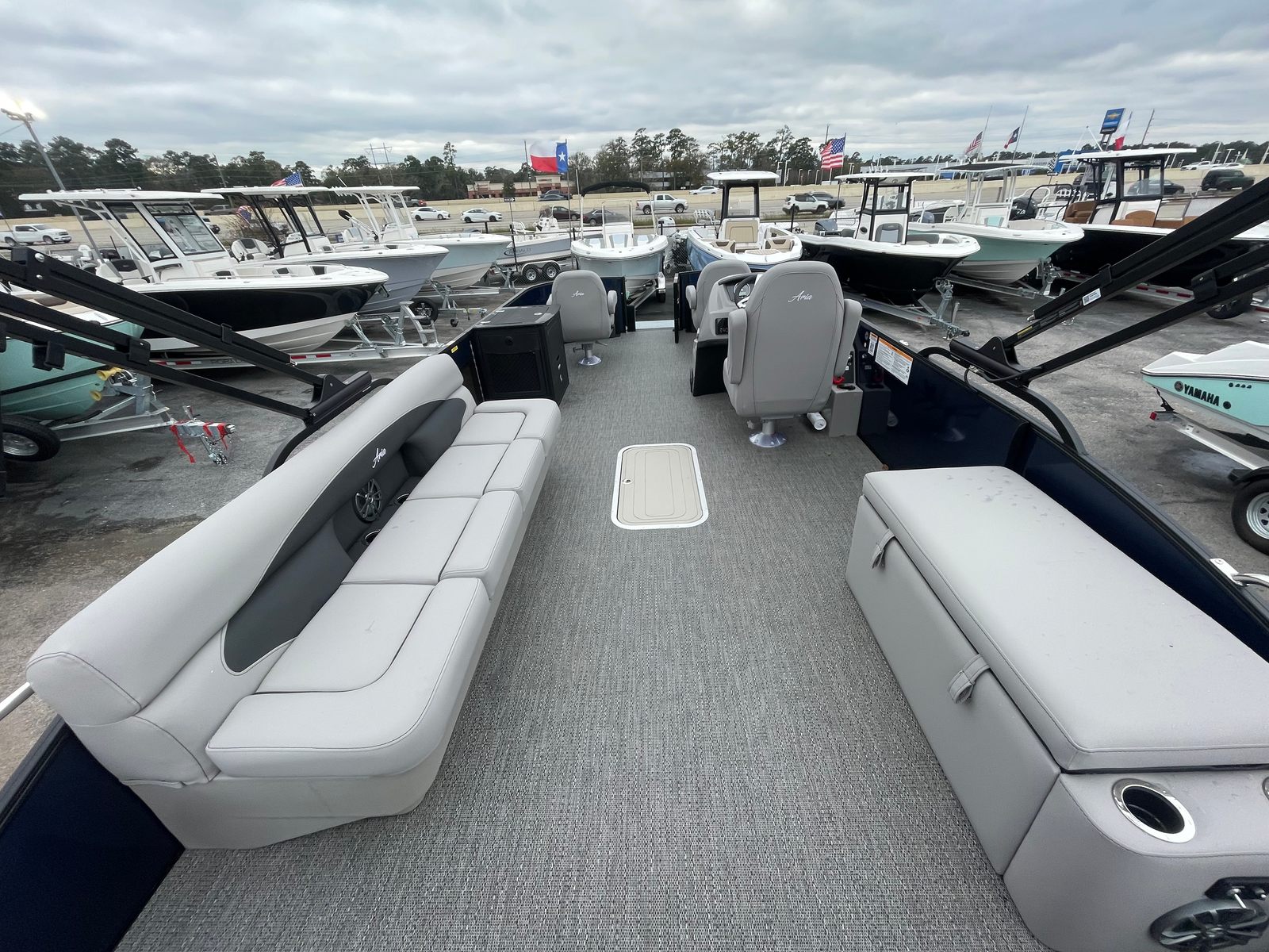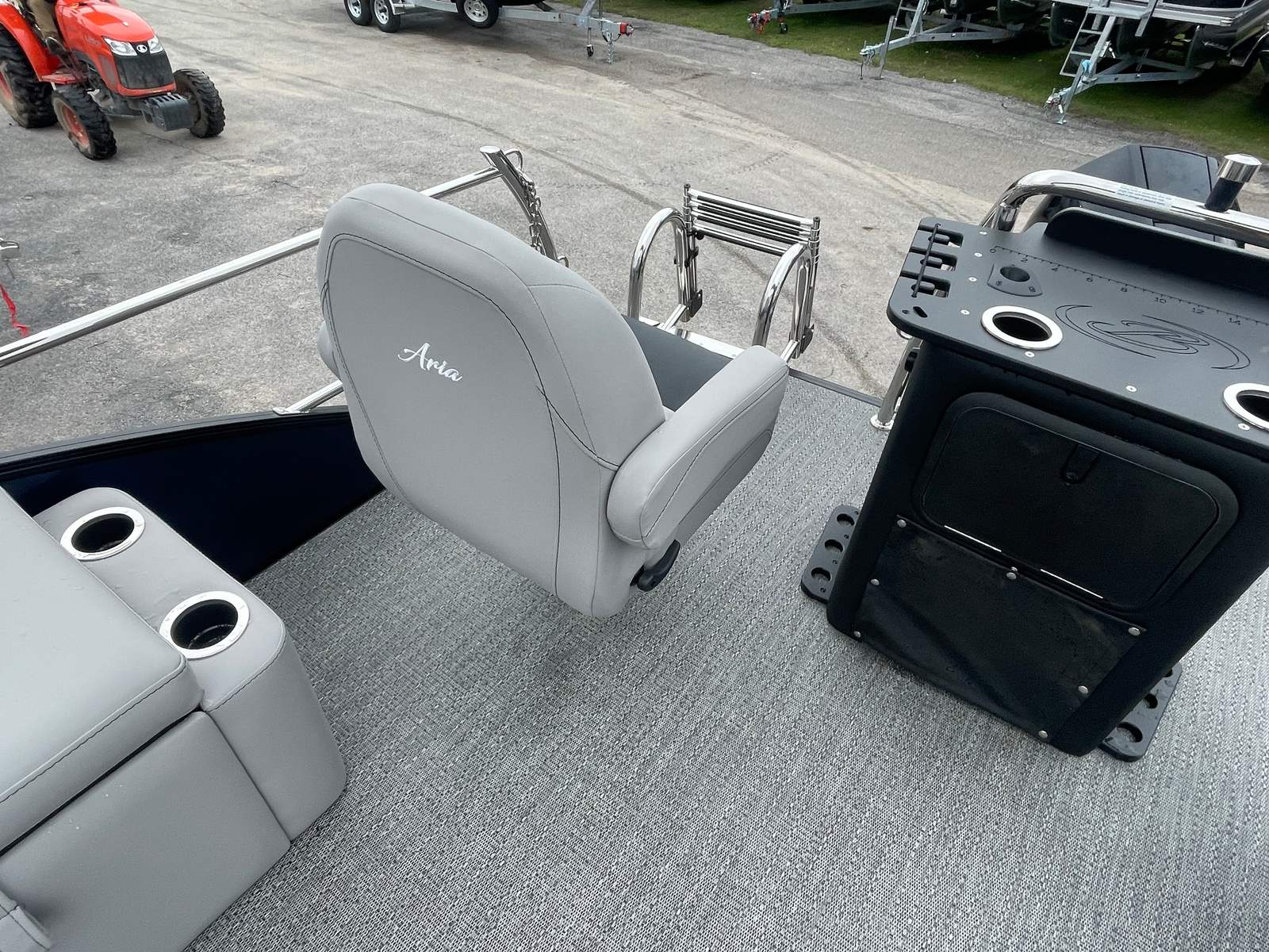 Step aboard the Barletta Aria A24F and experience a world of luxury and convenience. The furniture is finished in Tempest Gray, offering a plush and inviting atmosphere for passengers. The Amore Gray flooring is both stylish and practical, providing a durable surface that’s easy to maintain. The exterior is adorned with a stainless steel flag pole featuring an American flag, adding a patriotic touch to your boating adventures. The Triple Toon Package Aria further enhances the boat’s stability and performance, making it ideal for a variety of activities, from leisurely cruises to lively gatherings. Every detail, from the railskin packages to the rigging, reflects Barletta’s dedication to excellence and innovation.