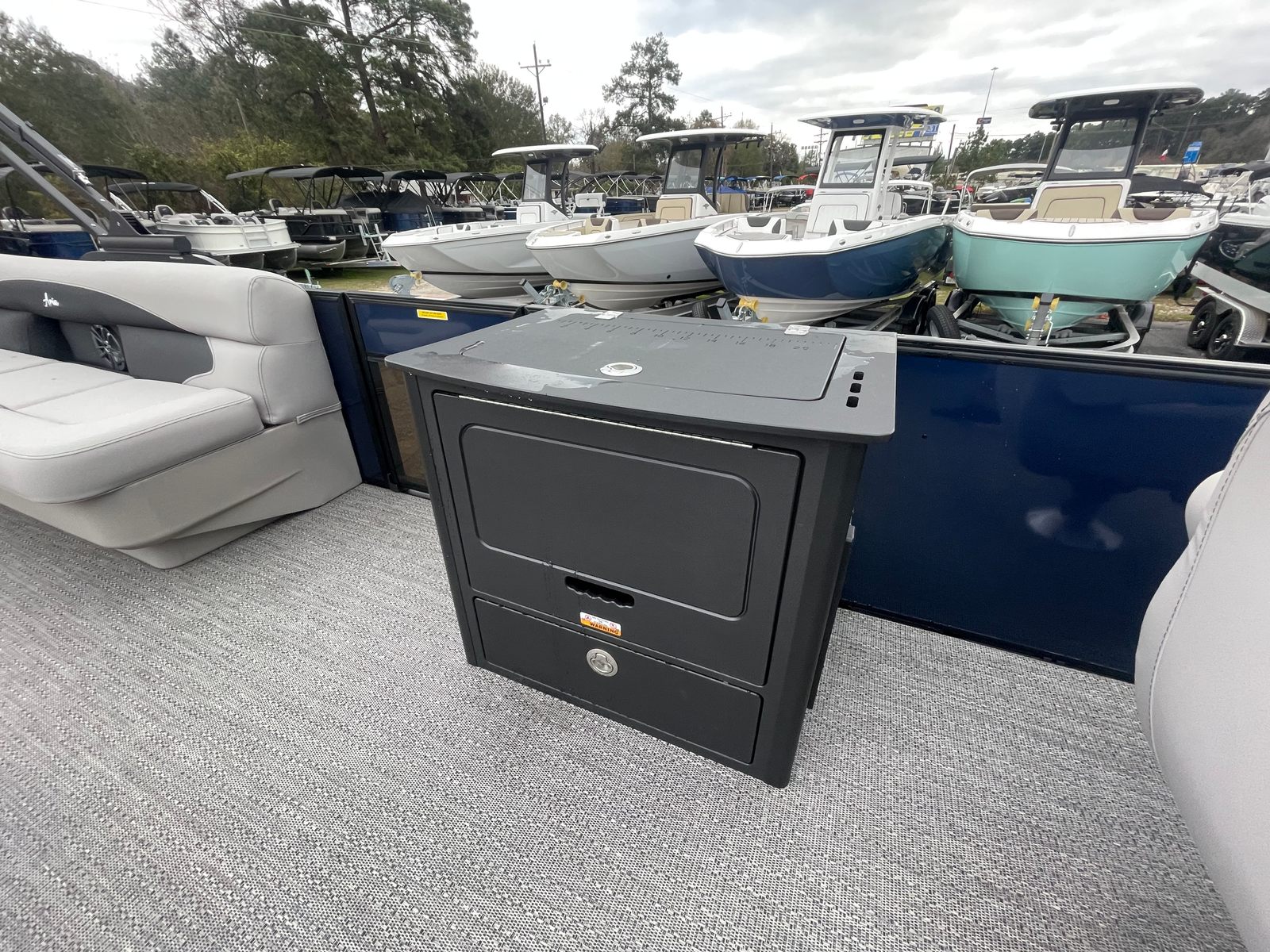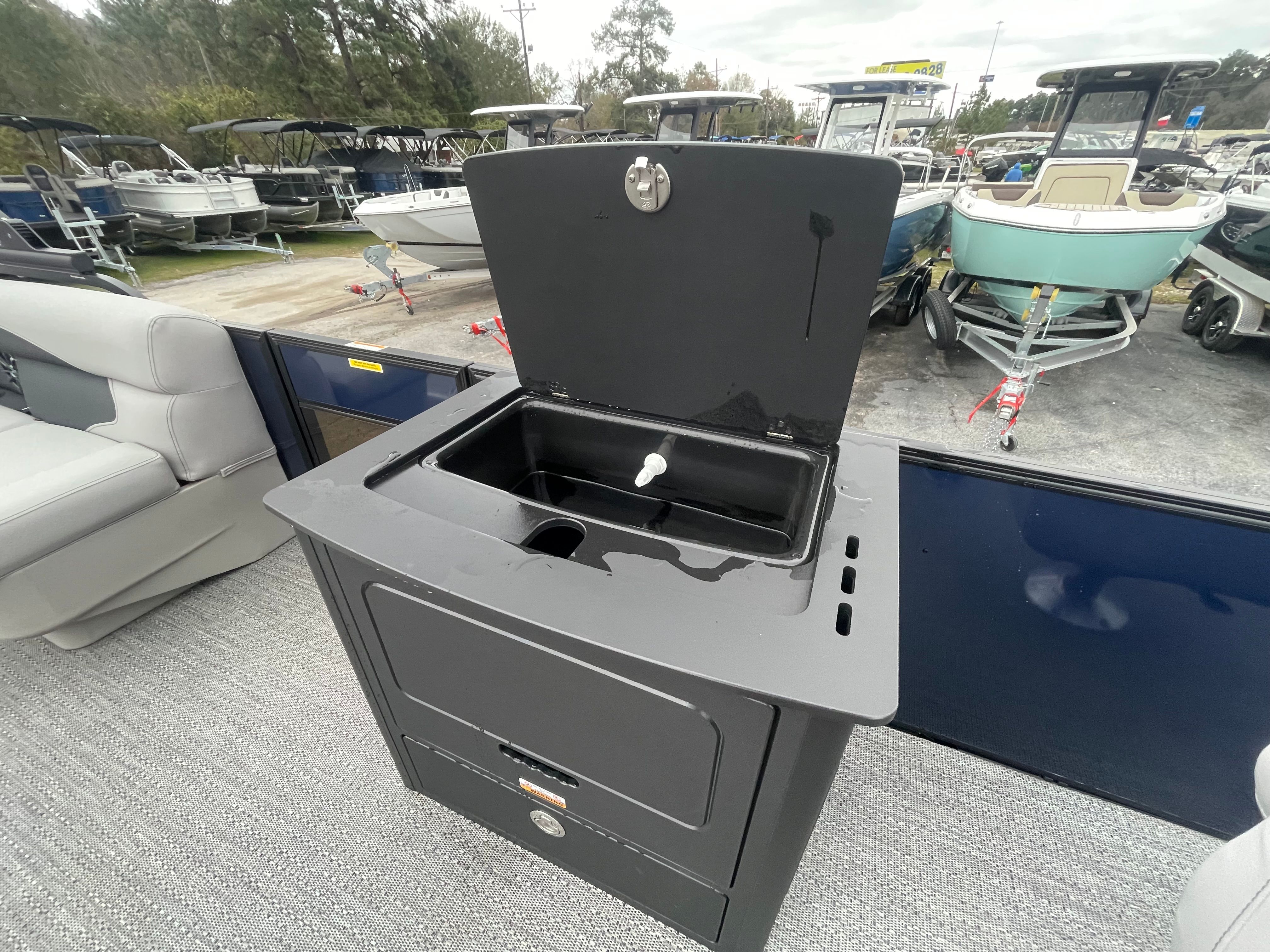 The Barletta Aria A24F is designed with practicality in mind, making ownership a breeze. Its spacious layout provides ample storage for gear, snacks, and water toys, keeping the deck clutter-free and organized. The efficient Mercury engine offers excellent fuel economy, allowing you to spend more time on the water and less time at the pump. Docking is simple and stress-free, thanks to the boat’s responsive handling and well-thought-out design. The durable flooring and high-quality furniture are easy to clean and maintain, ensuring your pontoon boat stays looking its best season after season. Whether you’re planning a day trip or a weekend getaway, the Aria A24F is equipped to handle all your boating needs with ease.