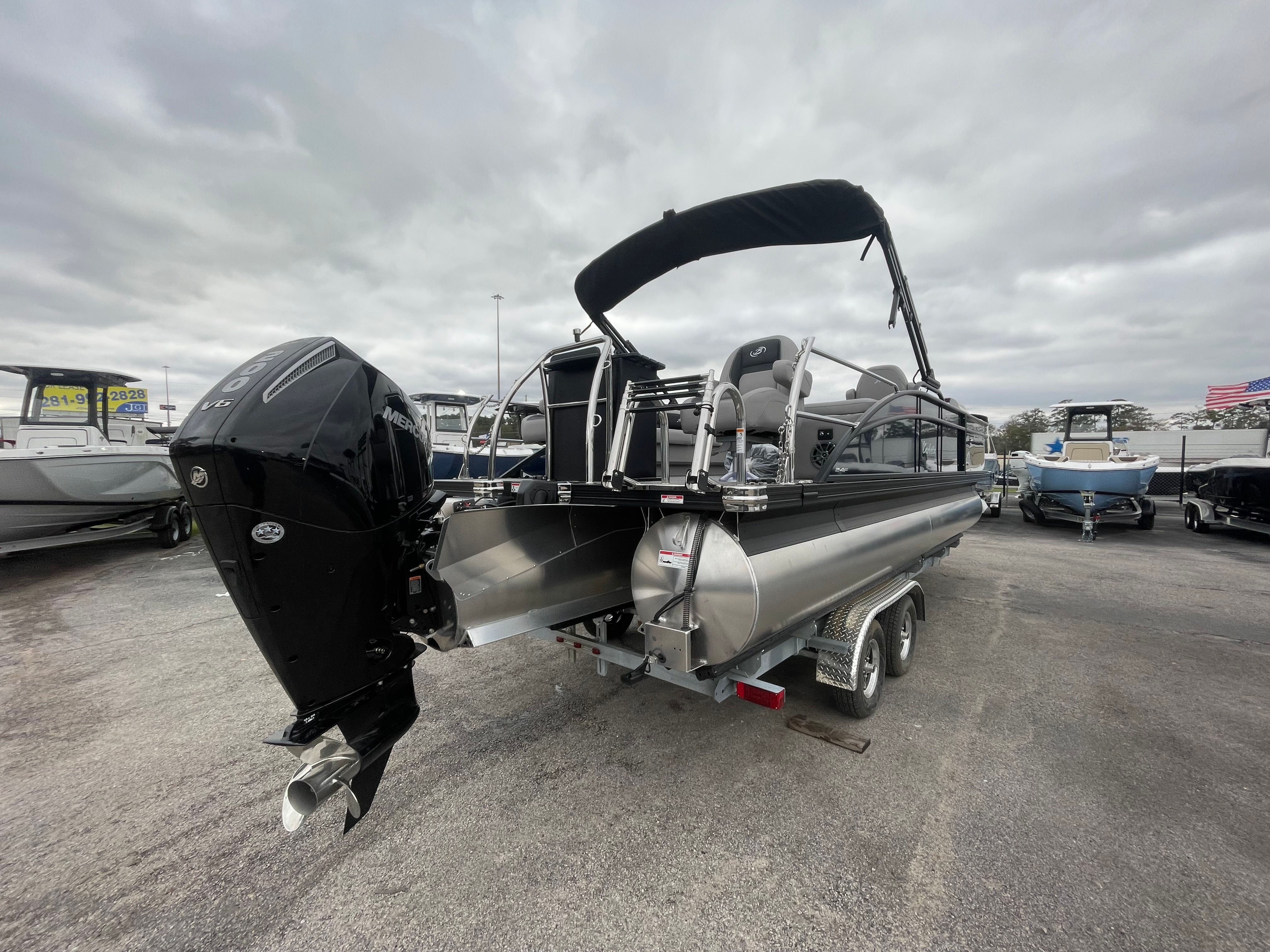 Powering the Barletta Aria A24F is a single Mercury (M) 200L FourStroke engine, delivering a robust 200 horsepower for smooth cruising and exhilarating rides. This engine is expertly pre-rigged with Mercury mechanical controls and features a stainless steel prop for optimal efficiency and durability. Whether you’re gliding across calm lakes or tackling more spirited waters, the Aria A24F’s Triple Toon Package ensures enhanced stability, superior handling, and a comfortable ride for all on board. This pontoon boat for sale is engineered to provide reliable performance, making every outing enjoyable and worry-free.