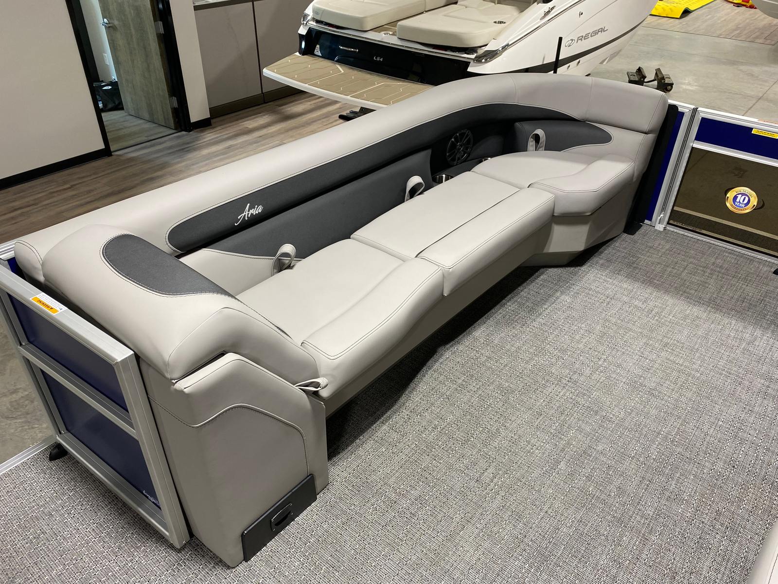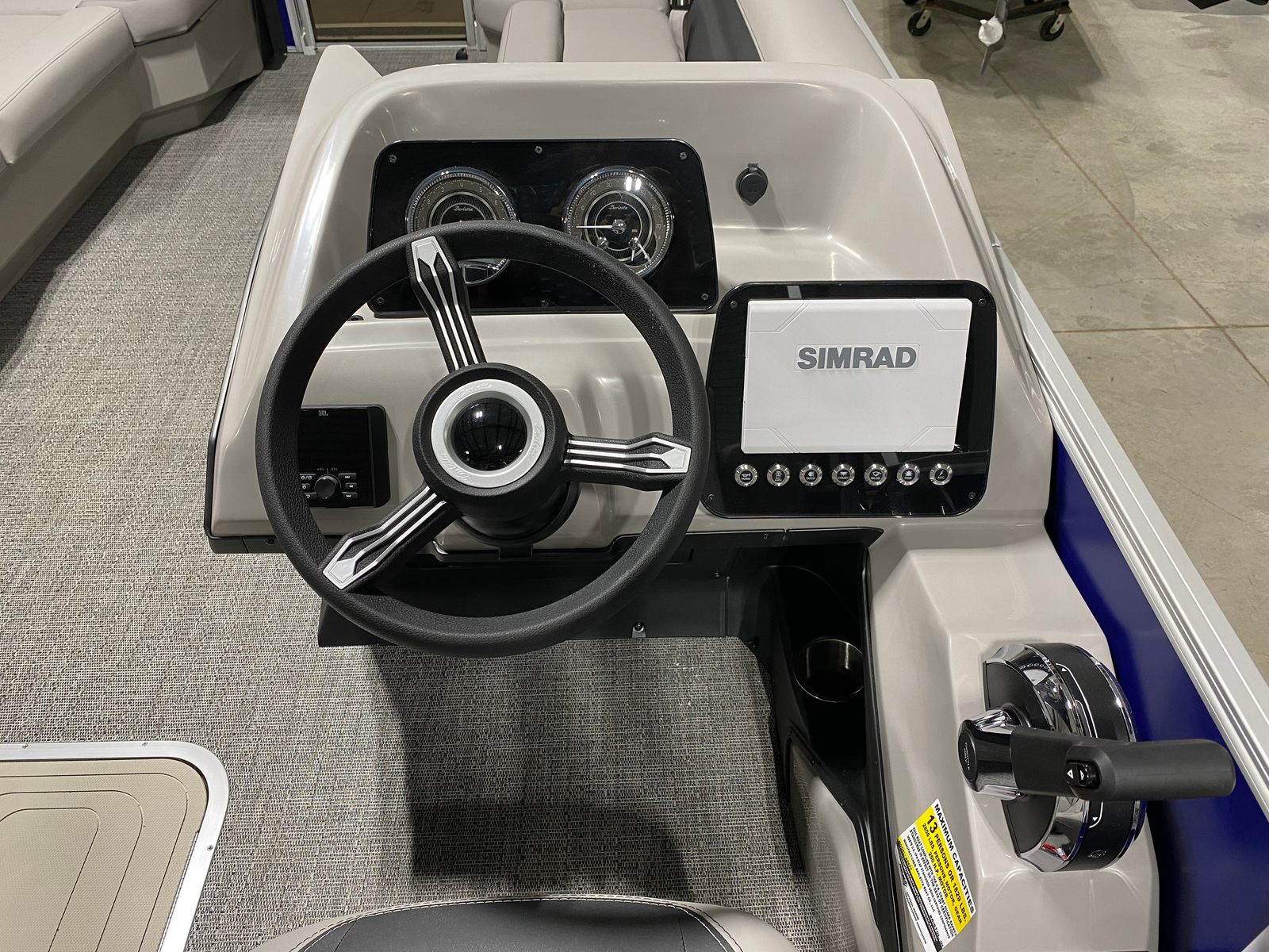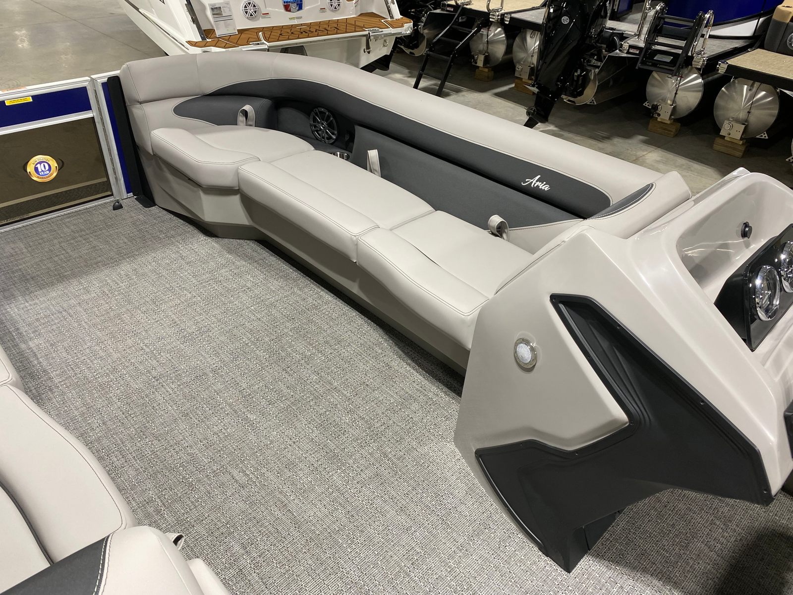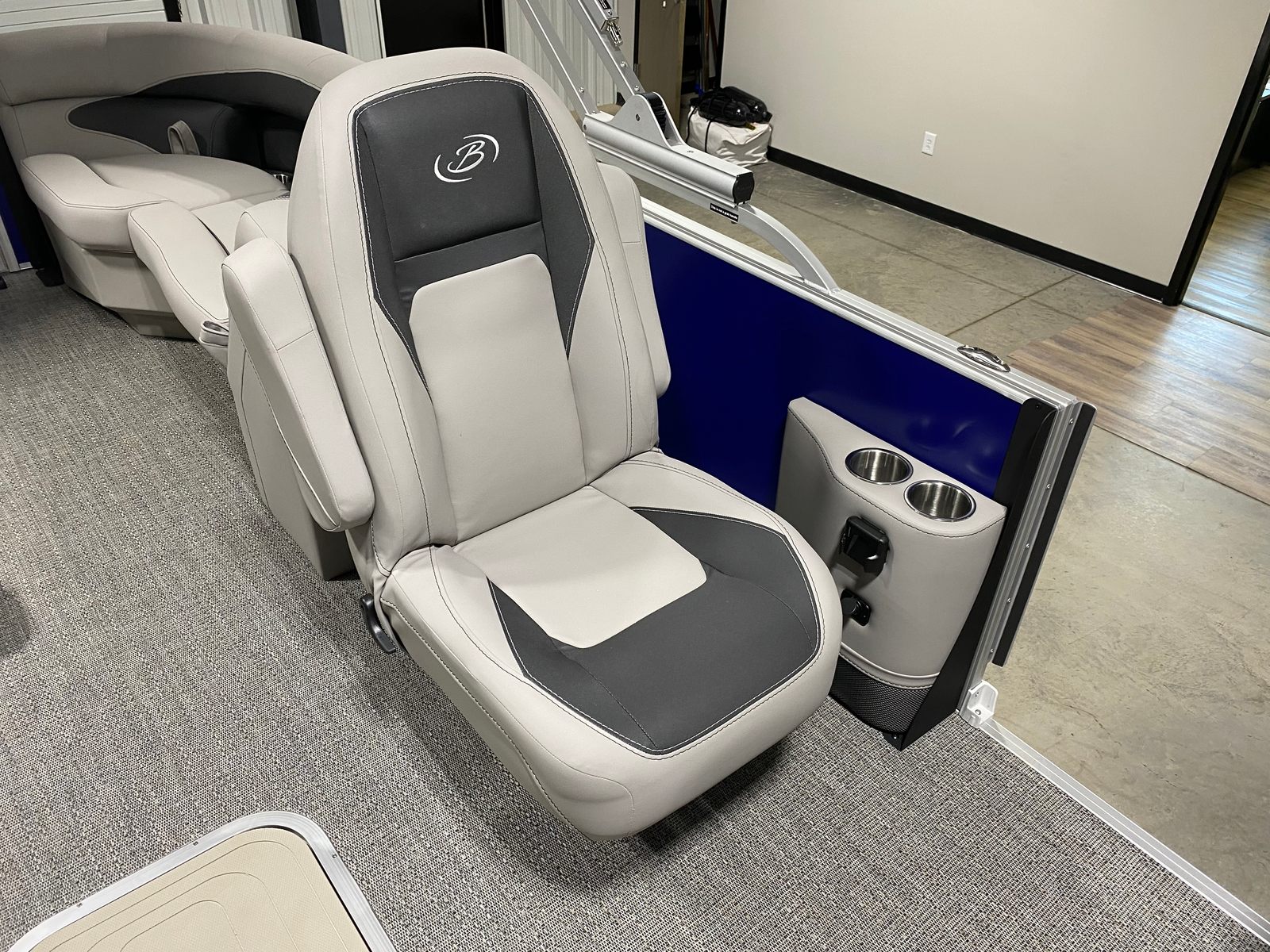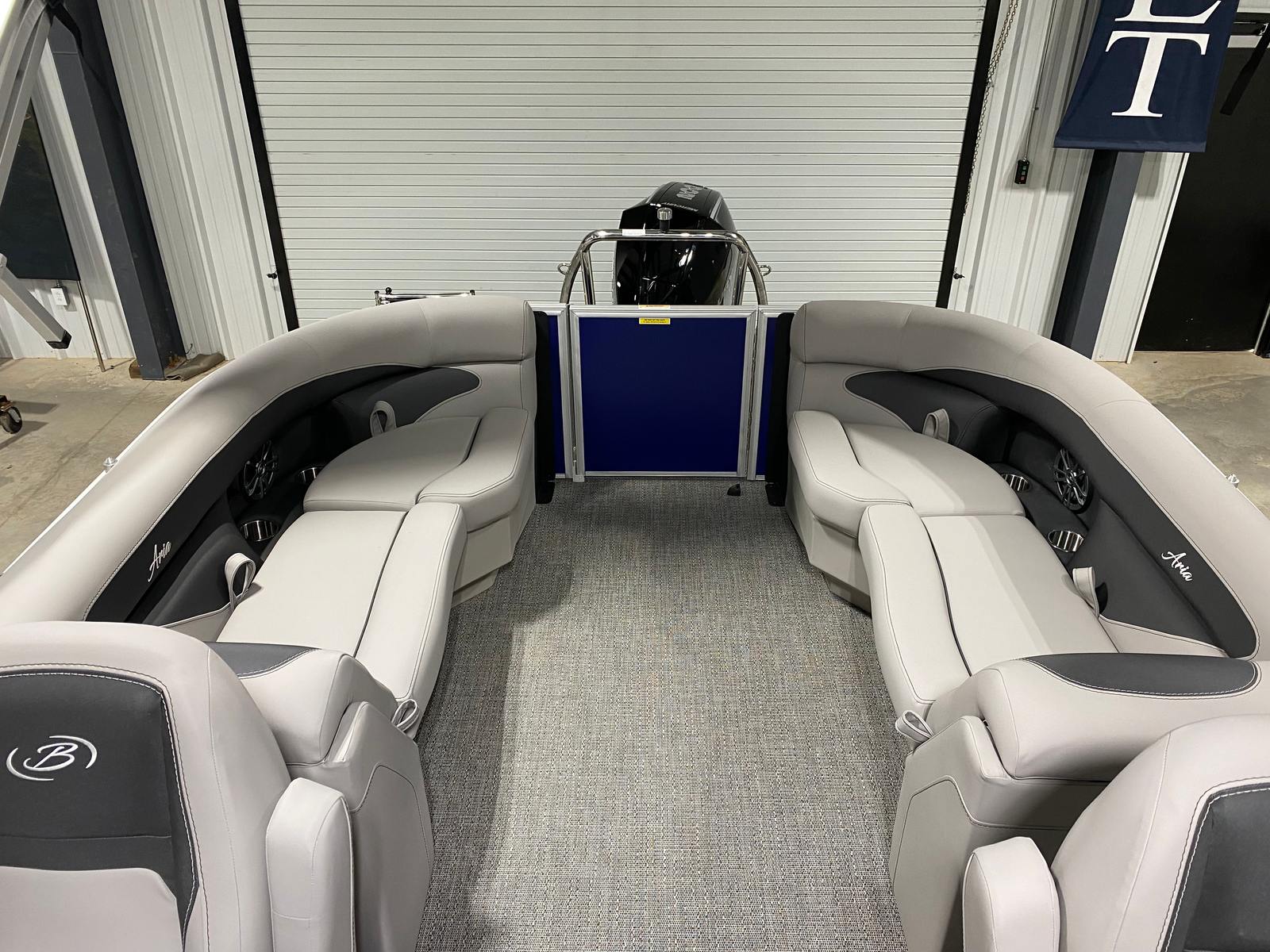 Step aboard the Barletta Aria A24QC and you’ll immediately notice its striking Bohemian Blue Railskin color, which sets the tone for a stylish and modern boating experience. The Tempest Gray furniture offers plush seating and a contemporary look, while the Amore Gray flooring provides both durability and elegance underfoot. The in-floor midship storage is a practical addition, giving you plenty of room to stow away gear, water toys, and personal items without cluttering the deck.Navigation is made simple and intuitive with the Simrad 7" G07 XSE, a state-of-the-art display that keeps you informed and in control. Whether you’re charting a course or monitoring your surroundings, this advanced system adds confidence and convenience to every journey. The Drop Ship Engine configuration ensures the latest Mercury technology is at your fingertips, while the absence of a prop allows for customized selection based on your specific boating needs.