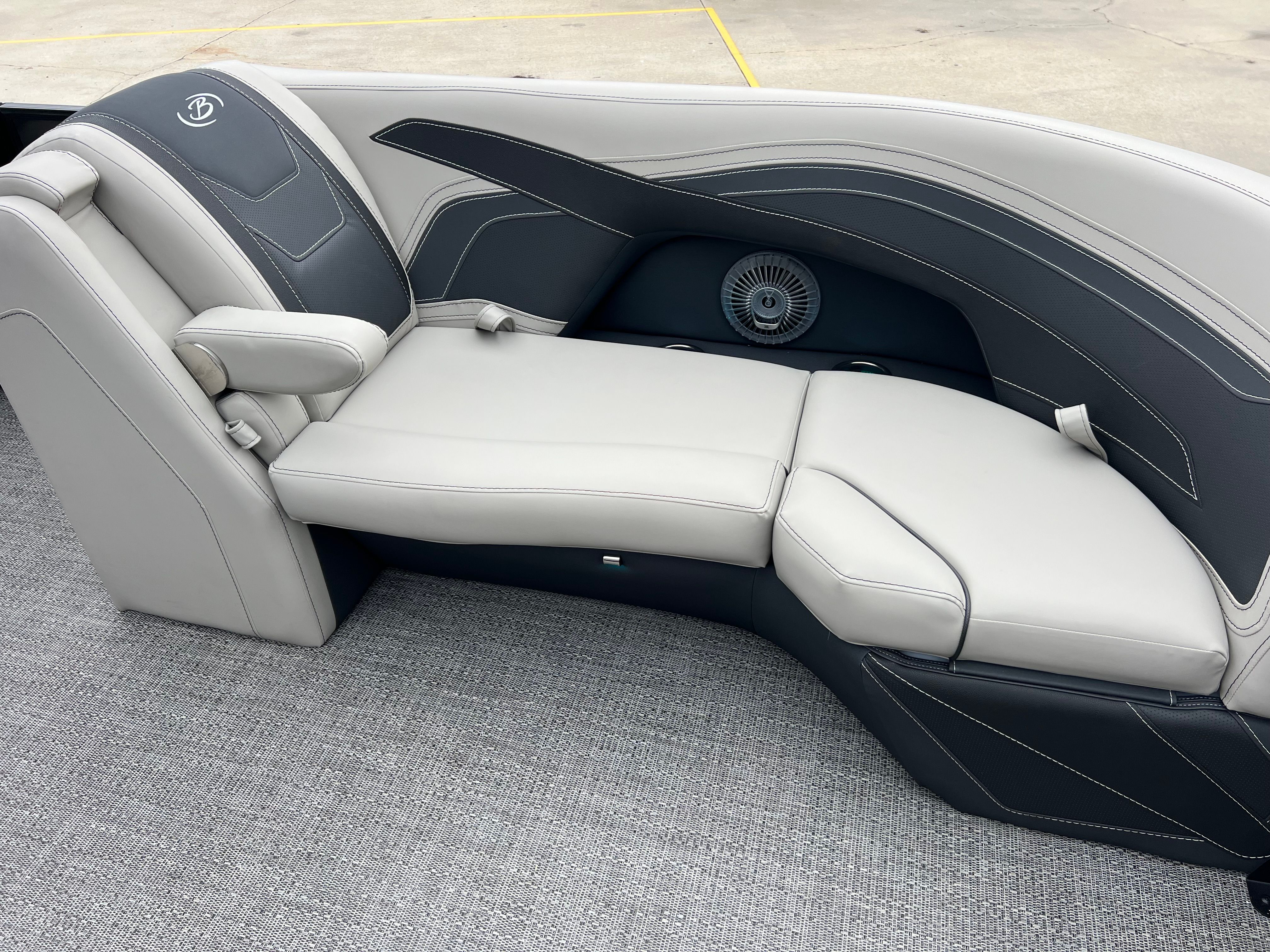 The 2026 Barletta Cabrio C22QC is a brand-new pontoon boat, measuring just over 23 feet in length. This spacious design provides ample room for family and friends, making it an ideal choice for those who love to entertain or simply enjoy the open water. The sleek Railskin Color in Black Diamond gives the boat a modern, sophisticated look, while the Marquesan Gray with Onyx furniture and Amore Gray flooring create a welcoming and stylish interior. Every detail of this Barletta boat for sale has been thoughtfully crafted to deliver comfort, durability, and a touch of elegance.