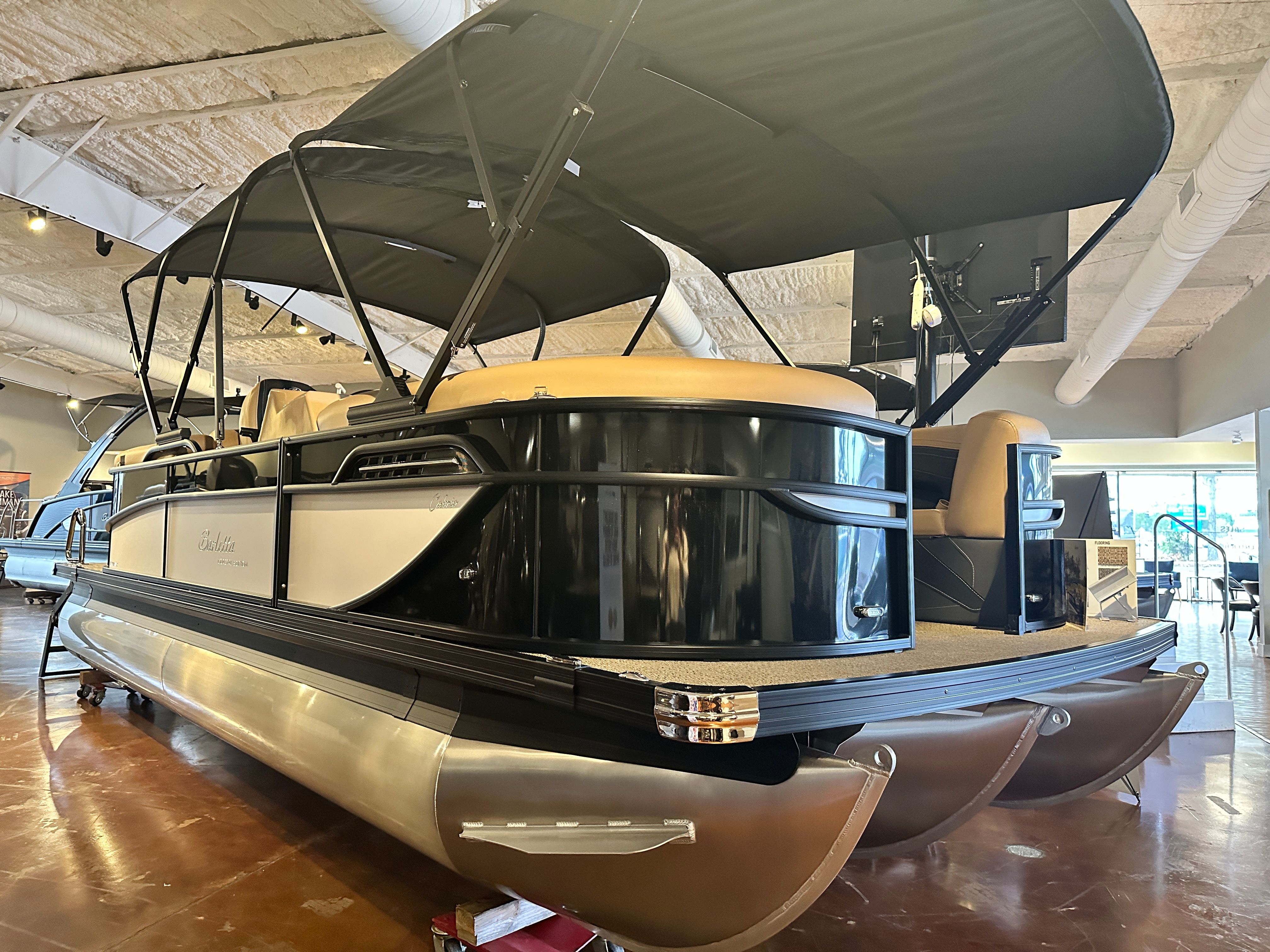 The Barletta Cabrio C22QC is packed with special features that set it apart from other pontoon boats for sale. The striking Railskin Color in Black Diamond, complemented by a Winter White accent, gives the boat a sophisticated and modern look. The Blackout Package Cabrio adds a touch of elegance and exclusivity, making this model a true standout on the water. Inside, the Carmella Tan furniture with Onyx accents creates a warm and inviting atmosphere, while the Amore Tan flooring adds both comfort and style.This pontoon is part of the Coastal Edition Cabrio, designed to withstand the unique challenges of coastal environments while maintaining its luxurious appeal. The Triple Toon Package with Midship Storage offers enhanced stability and additional storage space, making it easy to bring along everything you need for a day of fun. The Pre-Rig Mercury Mechanical setup ensures seamless integration with the engine, while the drop ship engine with a stainless steel prop (in boat) provides optimal performance and durability.