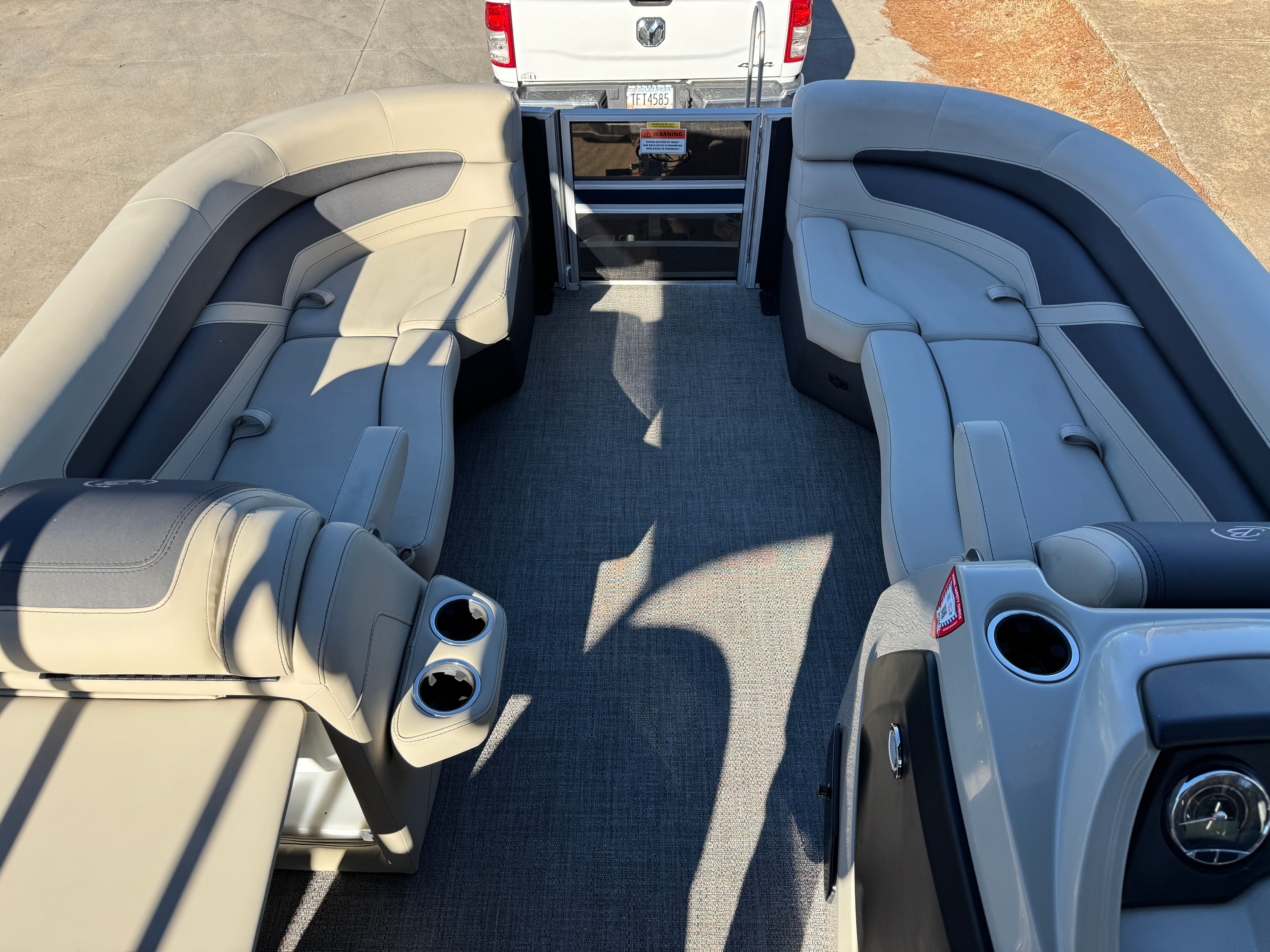 At the heart of this Barletta boat for sale is a powerful single engine with 150 horsepower, providing a smooth and responsive ride. With 249 engine hours, this pontoon boat has been enjoyed but remains in excellent running condition, offering plenty of reliable performance for future adventures. The 150 HP engine delivers the perfect balance of speed and efficiency, allowing you to glide effortlessly across lakes and rivers. Whether you are towing water toys, cruising at a leisurely pace, or heading to your favorite fishing spot, the Cabrio C22UC’s engine ensures you have the power and agility to make the most of every outing.
