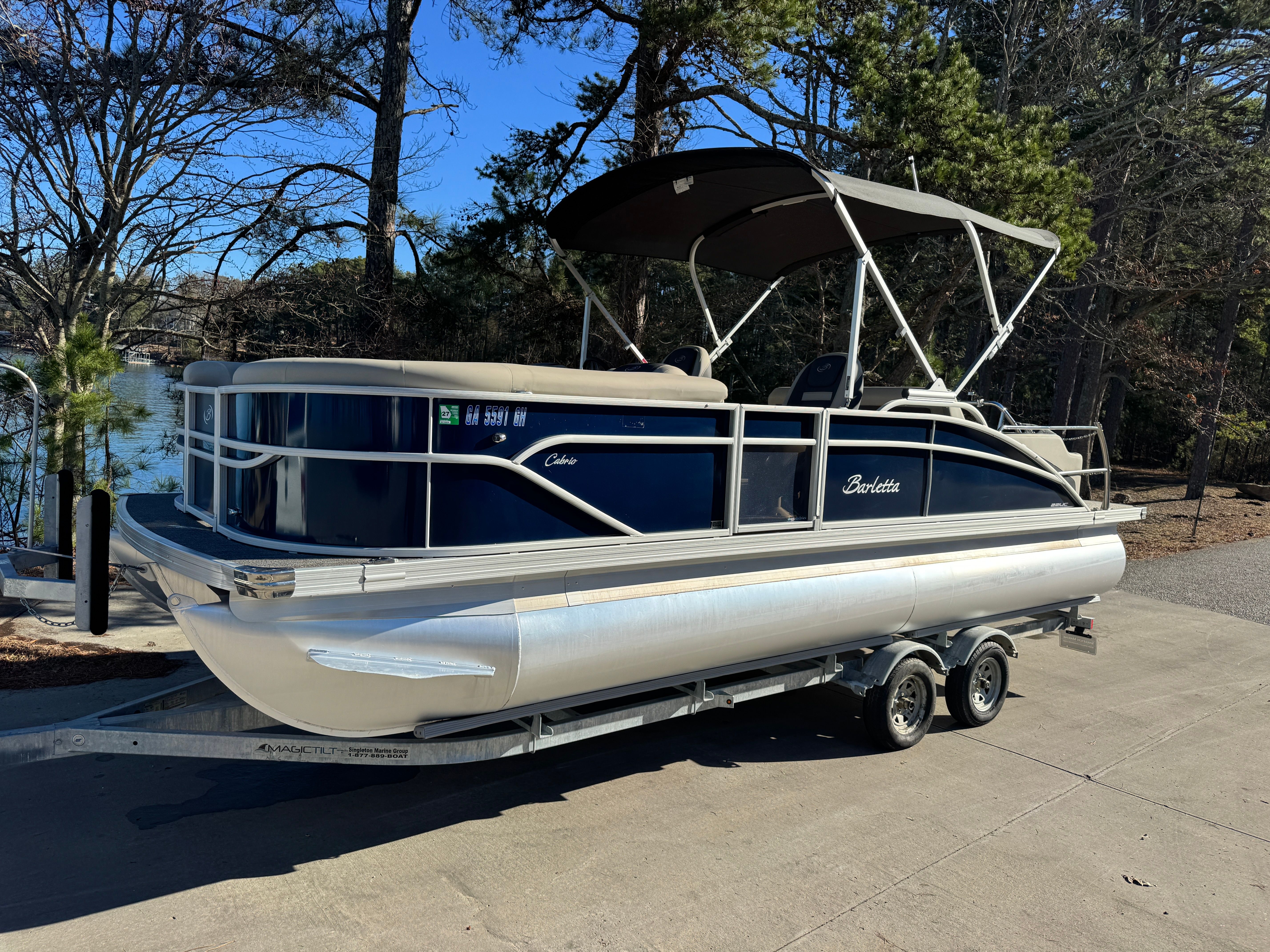 The 2023 Barletta Cabrio C22UC is a 23-foot pontoon that embodies the spirit of relaxation and adventure. With a length of approximately 23.17 feet, this model offers ample space for guests and gear, making it ideal for both intimate gatherings and lively parties on the water. As a used pontoon boat, it has been well-maintained and is ready to deliver countless more hours of enjoyment. The Cabrio C22UC’s sleek design and modern aesthetic ensure that you will turn heads wherever you cruise, while its thoughtful layout maximizes both comfort and functionality.