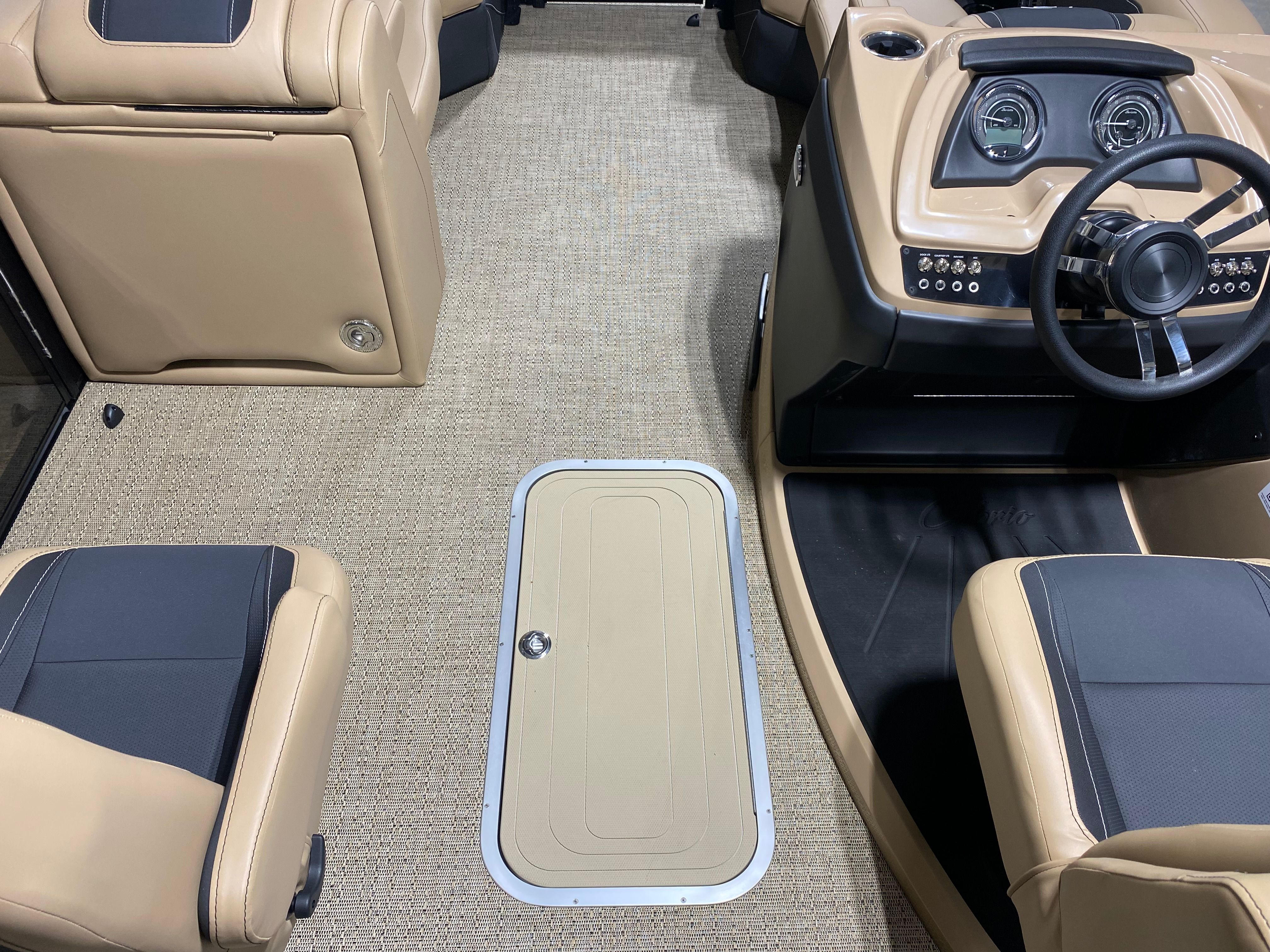 The Barletta Cabrio C22UC is designed with practicality in mind, making ownership as enjoyable as your time on the water. The Triple Toon Package with Midship Storage provides ample space for storing water toys, fishing gear, or picnic supplies, keeping the deck clutter-free and organized. The power assist steering system simplifies docking and maneuvering, reducing stress and making it easy to navigate tight spaces.The durable Amore Tan flooring is easy to clean and maintain, ensuring your pontoon looks great season after season. The exterior lighting not only enhances the boat’s appearance but also improves visibility and safety during evening outings. With thoughtful features and smart design, the Cabrio C22UC makes every aspect of boating more convenient and enjoyable.