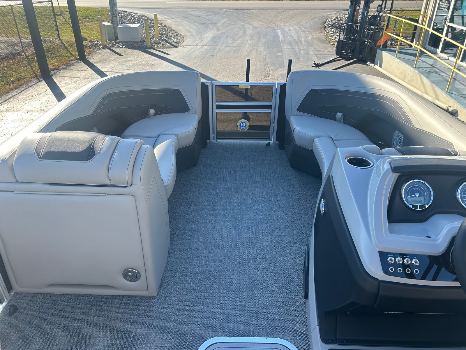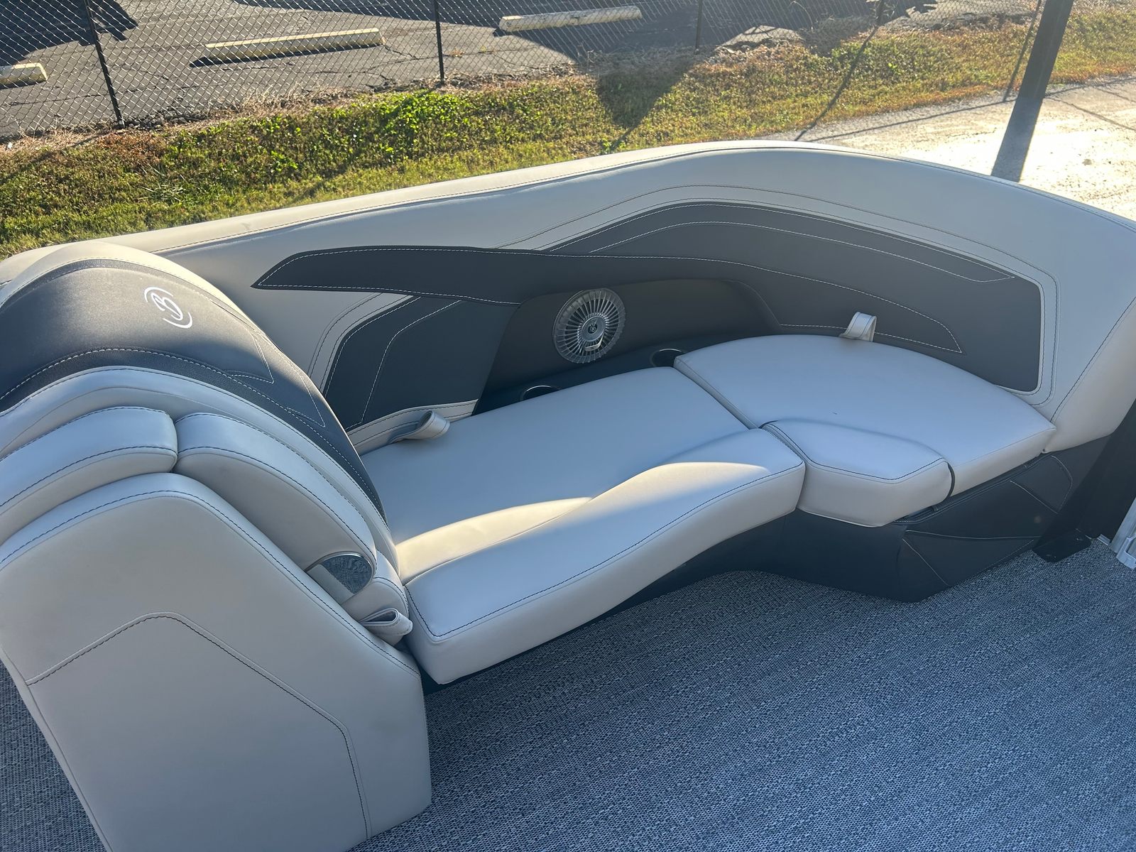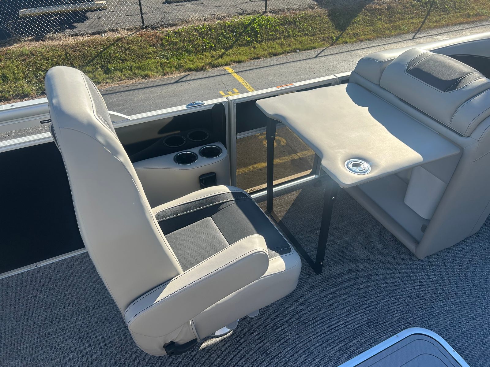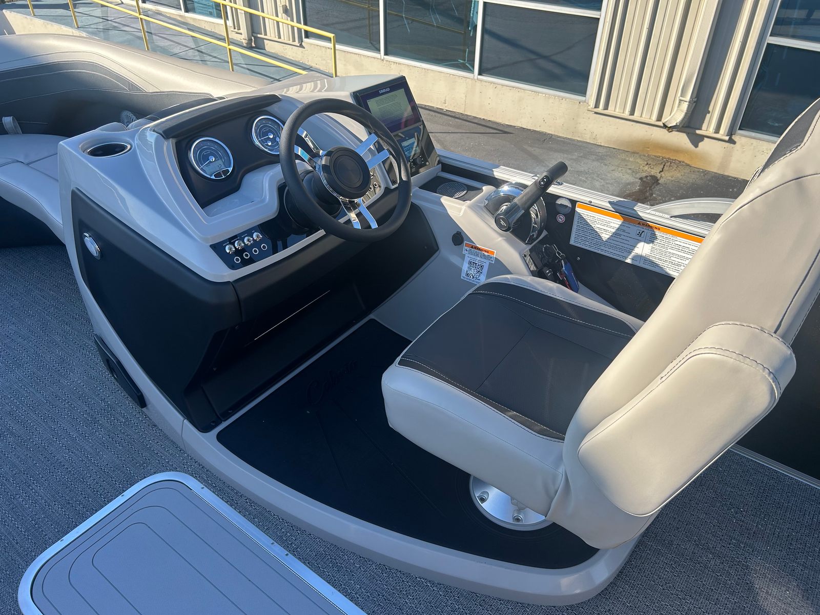 The Barletta Cabrio C22UC is loaded with features that elevate your boating experience. The Triple Toon Package with midship storage maximizes stability and buoyancy, allowing for a smoother ride even in choppier conditions. The midship storage compartment provides ample space for stowing gear, water toys, and essentials, keeping the deck clutter-free and organized.The interior of the Cabrio C22UC is a showcase of luxury and functionality. The Marquesan Gray with Onyx furniture offers plush seating and a contemporary look, while the Amore Gray flooring is both stylish and easy to maintain. The interior RGB lighting package creates a customizable ambiance, perfect for evening cruises or entertaining guests after sunset.At the helm, the Simrad 7" G07 XSR Chartplotter/Multifunction Display puts advanced navigation and system controls at your fingertips. This intuitive display allows you to monitor your route, track your speed, and access vital boat information with ease, ensuring a safe and enjoyable journey every time.The exterior is just as impressive, featuring a stainless steel flag pole with an American flag, adding a patriotic touch and a sense of pride to your boating adventures.
