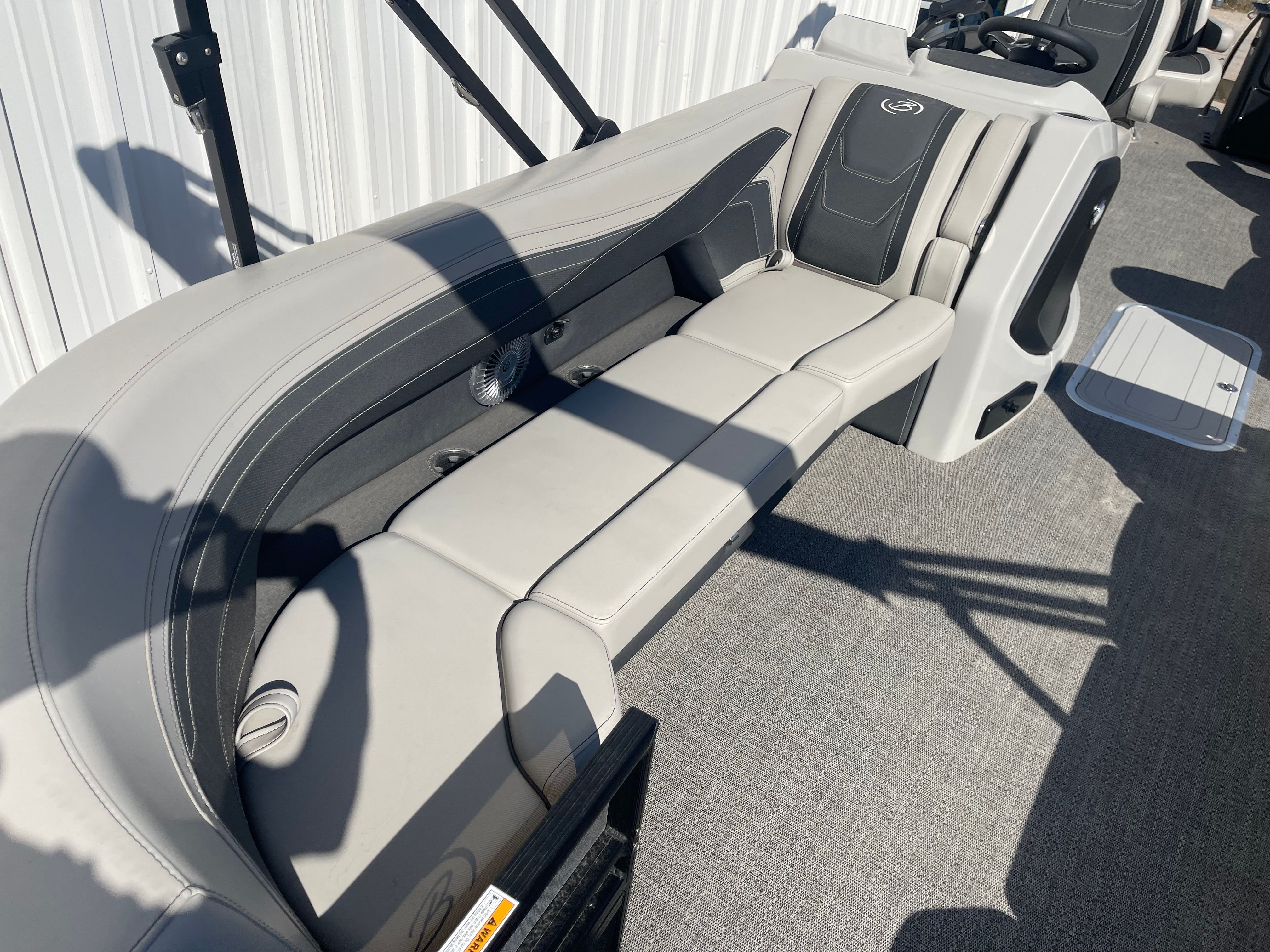 The 2026 Barletta Cabrio C24CC is a brand-new pontoon boat that measures an impressive 25.17 feet in length, offering ample space for relaxation, entertainment, and adventure. As a Barletta boat for sale, this model showcases the brand’s commitment to quality craftsmanship and attention to detail. The sleek Black Diamond railskin color, complemented by the Blackout Package Cabrio, gives the boat a modern and sophisticated look that is sure to turn heads at any marina or lake.Inside, the Marquesan Gray/Onyx furniture provides a luxurious and inviting atmosphere, while the Amore Gray flooring adds a touch of elegance and durability. Whether you’re hosting a lively gathering or seeking a peaceful escape, the Cabrio C24CC offers the perfect setting for every occasion.