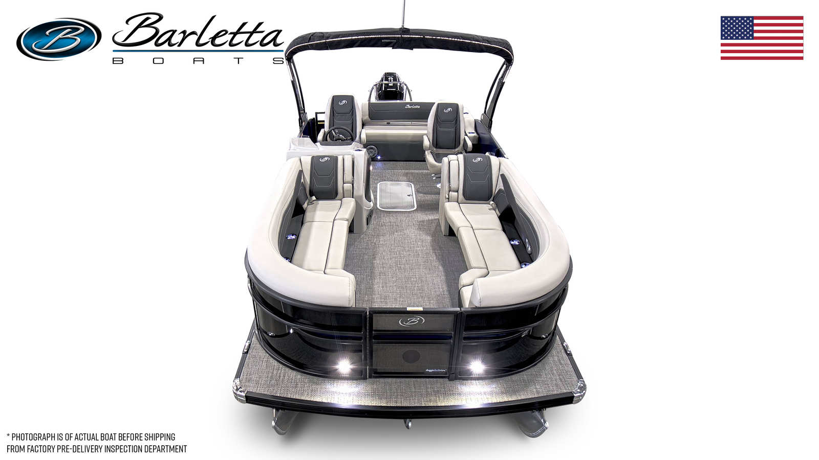 Step aboard the Barletta Cabrio C24UC and you’ll immediately notice its luxurious flooring in Amore Gray, which adds a touch of elegance and comfort underfoot. The Marquesan Gray furniture with Onyx accents creates a sophisticated and inviting atmosphere, perfect for socializing or unwinding. The Railskin color accent in Bohemian Blue provides a striking visual contrast, ensuring your pontoon stands out wherever you go.One of the standout features is the Interior RGB Lighting Package Cabrio, allowing you to customize the ambiance to suit any mood or occasion. Whether you’re hosting a lively gathering or enjoying a quiet evening cruise, the lighting package sets the perfect tone. The Triple Toon Package with midship storage maximizes stability and performance, while also offering convenient storage solutions for gear and essentials.Navigation and entertainment are elevated with the Simrad 7" G07 XSR Chartplotter/Multifunction Display, providing intuitive access to maps, navigation tools, and system controls. The stainless steel flag pole with an American flag adds a patriotic touch, while the onboard battery charger for two batteries ensures you’re always powered up and ready to go.