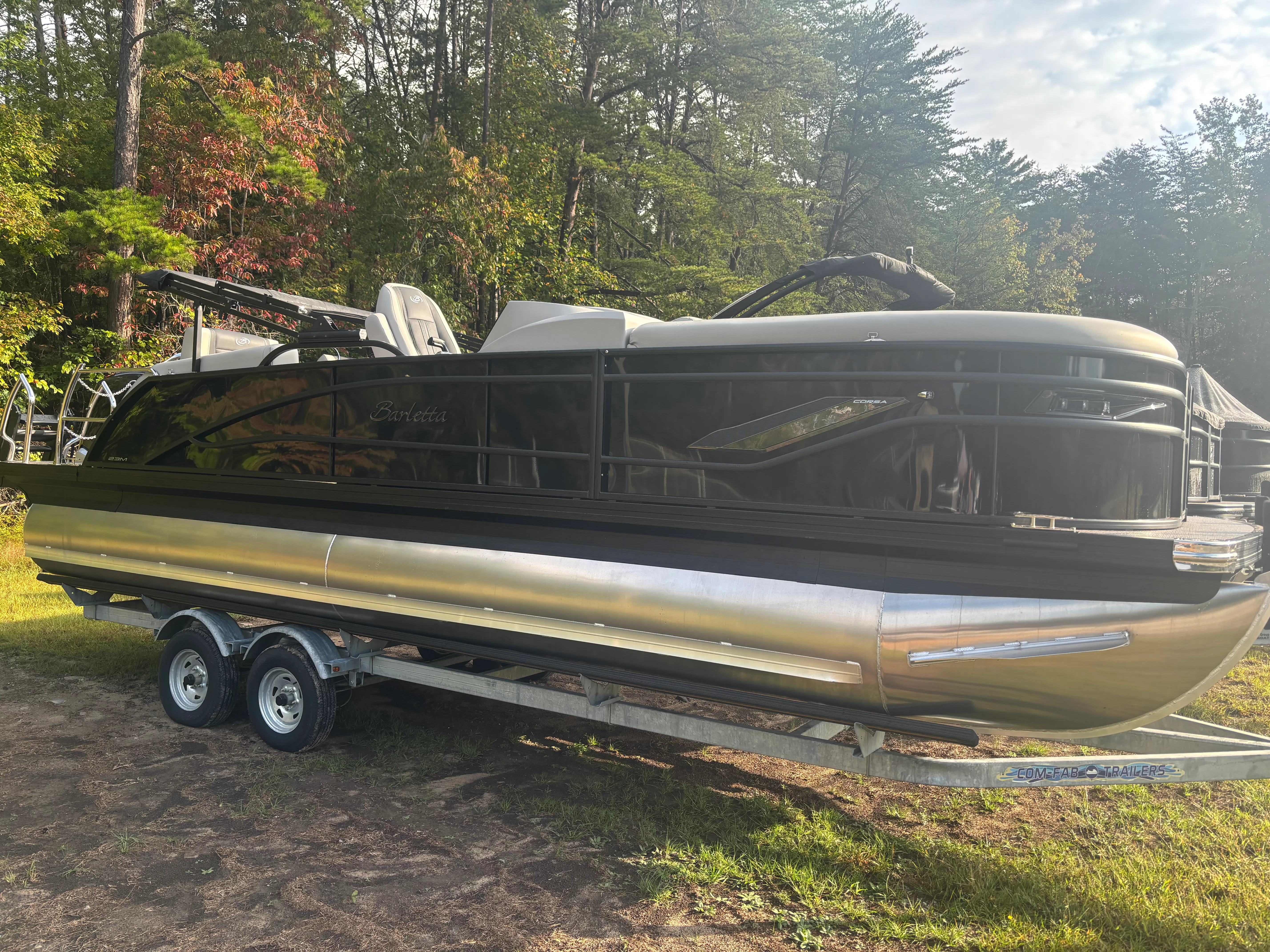 The 2026 Barletta Corsa 23M pontoon boat is a remarkable fusion of luxury, performance, and innovation. With its powerful Mercury 250L Verado V8 engine, advanced digital controls, and premium features such as the 2-bank battery charger, Amore Gray flooring, Soft Touch Marquesan Gray furniture, Blackout Package Corsa, and elegant exterior lighting, this pontoon stands out as a top choice for discerning boaters. If you are looking for a Barletta boat for sale that promises unforgettable memories, effortless handling, and head-turning style, the Corsa 23M is ready to deliver. Take the next step toward your dream boating lifestyle and discover all that this exceptional pontoon has to offer. Contact the dealer today for more information and to schedule your personal tour of the Barletta Corsa 23M.