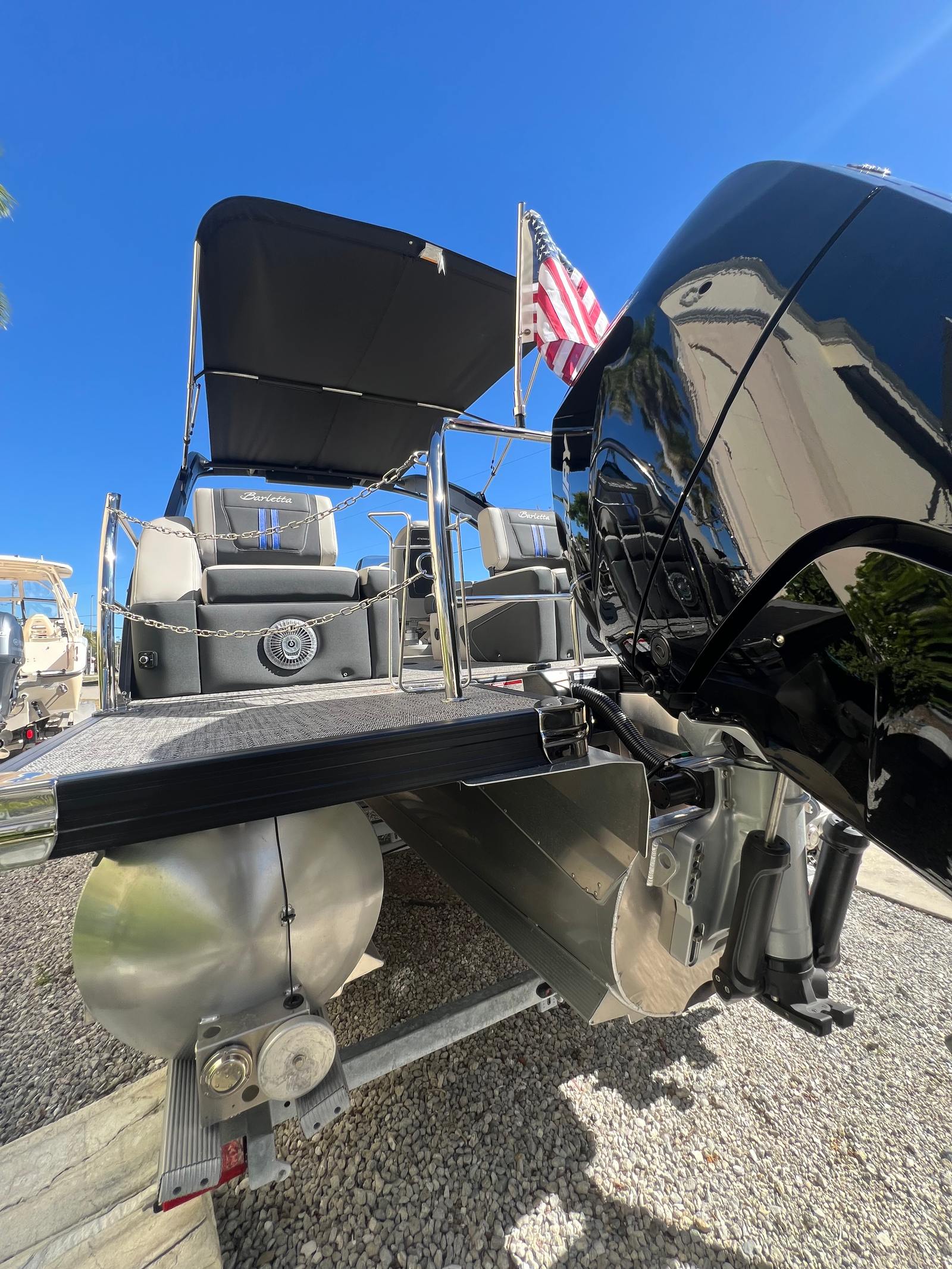 The 2026 Barletta Corsa 23MA is more than just a pontoon boat for sale – it’s an invitation to experience the best that boating has to offer. With its powerful Mercury 350L V10 Verado engine, stunning design, and array of special features including exterior lighting, a stainless steel flag pole with American flag, Arch Sound Bar, Amore Gray flooring, Blackout Package Corsa, adjustable pedestal captain’s chair, Soft Touch Marquesan Gray furniture with blue accent, and the Coastal Edition Corsa, this boat is built for both excitement and relaxation.If you’re ready to elevate your boating lifestyle, the Barletta Corsa 23MA is the perfect choice. Discover the joy of owning a Barletta boat for sale and make every day on the water an adventure to remember. Contact your local dealer today to learn more about this exceptional pontoon and start planning your next great escape.
