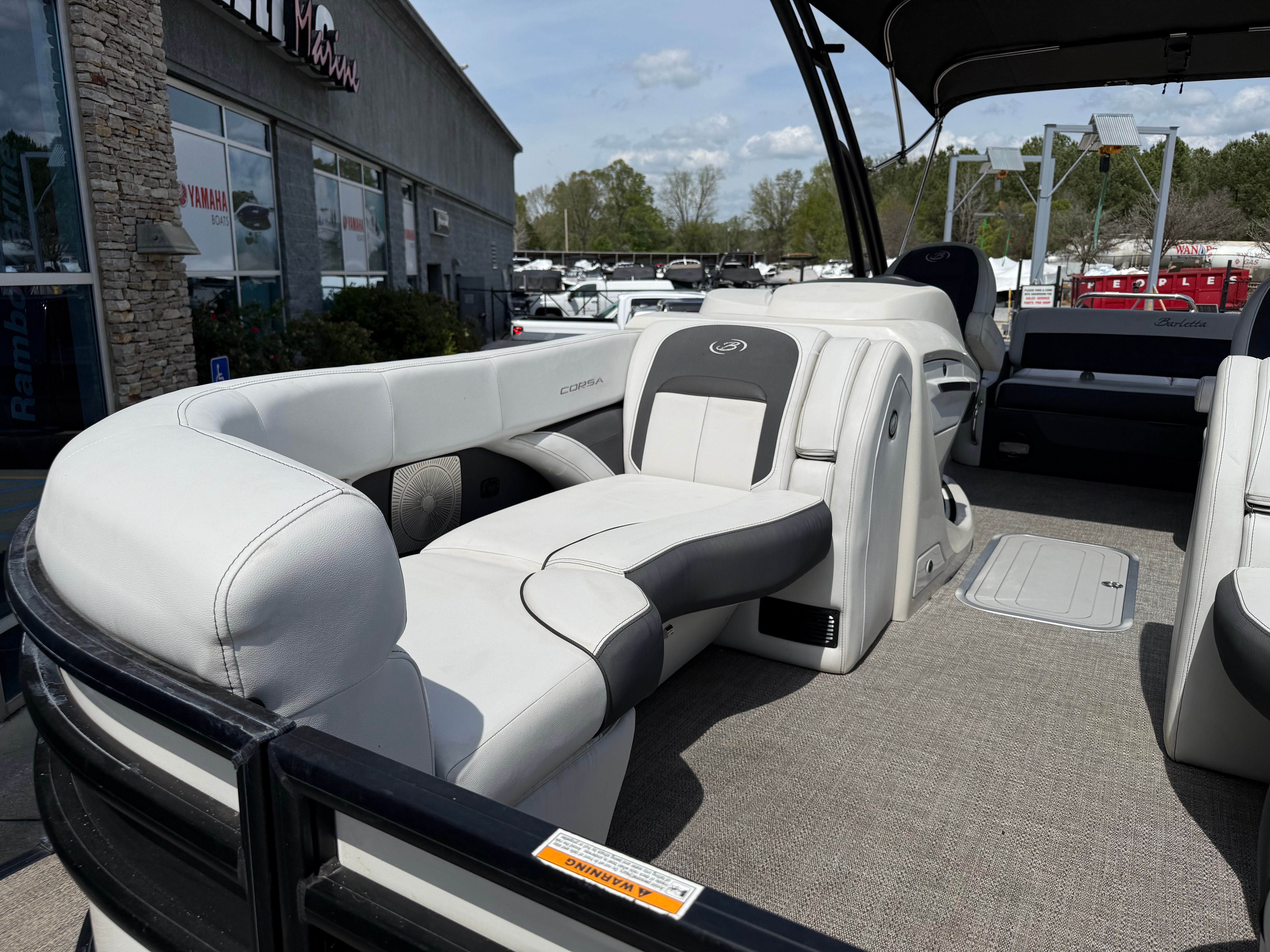 The 2021 Barletta Corsa 23UCA is as practical as it is enjoyable. Its spacious deck offers plenty of storage options for gear, water toys, and personal belongings, keeping the area tidy and organized. The pontoon’s design makes docking and maneuvering straightforward, even for those new to boating. Fuel efficiency is another highlight, allowing you to spend more time on the water and less time at the pump.This used pontoon boat is perfect for a wide range of activities, from leisurely cruises and fishing trips to water sports and family picnics. The sturdy construction and reliable engine mean you can venture out with confidence, knowing that your boat is built to handle whatever the day brings. The Corsa 23UCA’s versatility makes it a smart investment for anyone looking to maximize their time on the water.