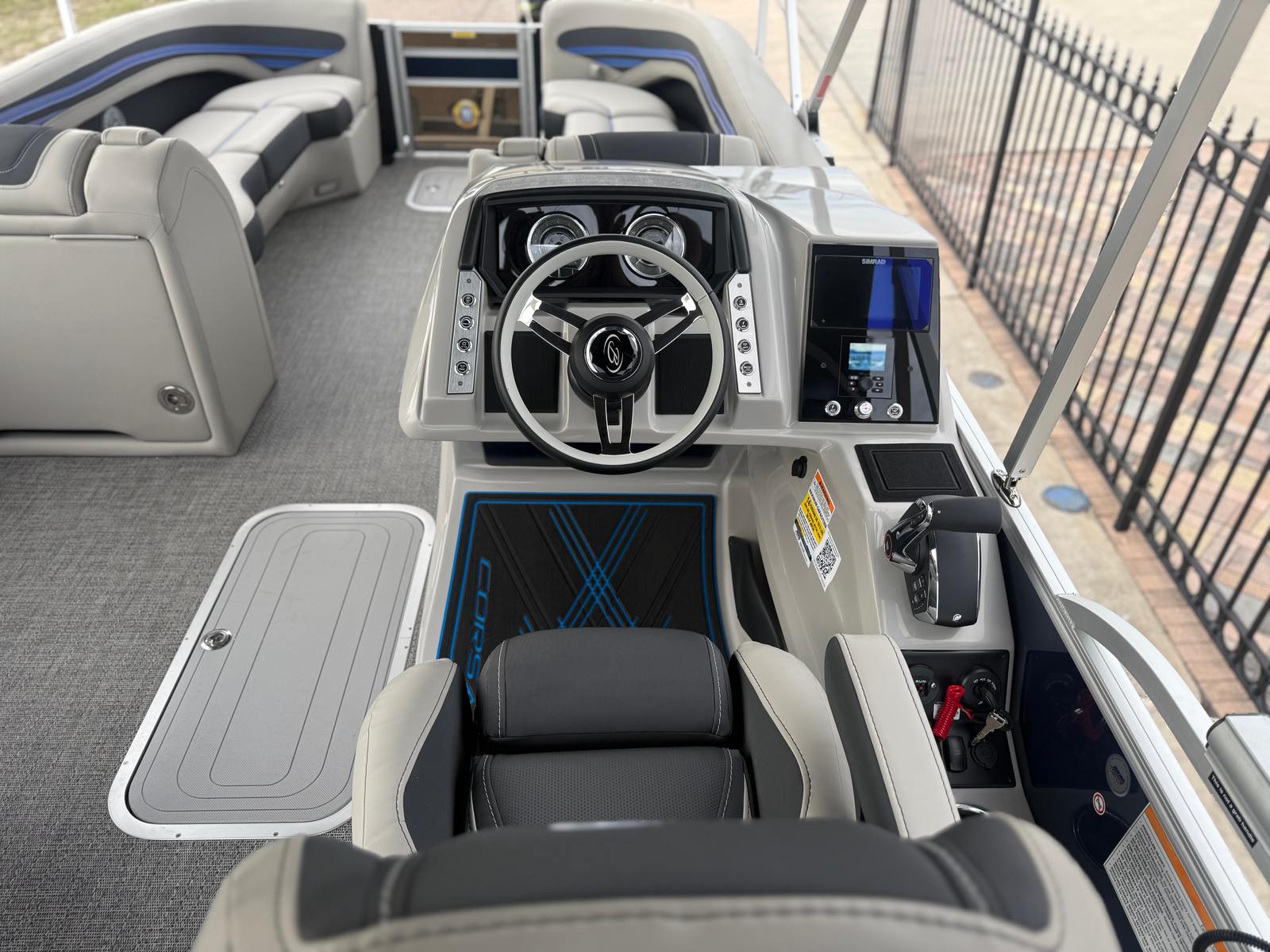 The Barletta Corsa 25UC is designed with practicality in mind, offering features that make ownership easy and enjoyable. The double bimini system provides flexible shade options, allowing you to adapt to changing weather conditions and keep your guests comfortable. The onboard battery charger and dual batteries ensure that your boat is always ready to go, minimizing downtime and maximizing your time on the water.Docking and maneuvering are a breeze thanks to the hydraulic and power assist steering, while the durable flooring and furniture stand up to the rigors of regular use. The digital gauges and Vessel Link connectivity make it simple to monitor your boat’s performance and stay on top of maintenance needs. With its spacious layout and thoughtful design, this pontoon boat is perfect for storing gear, refreshments, and water toys, so you’re always prepared for a day of fun.