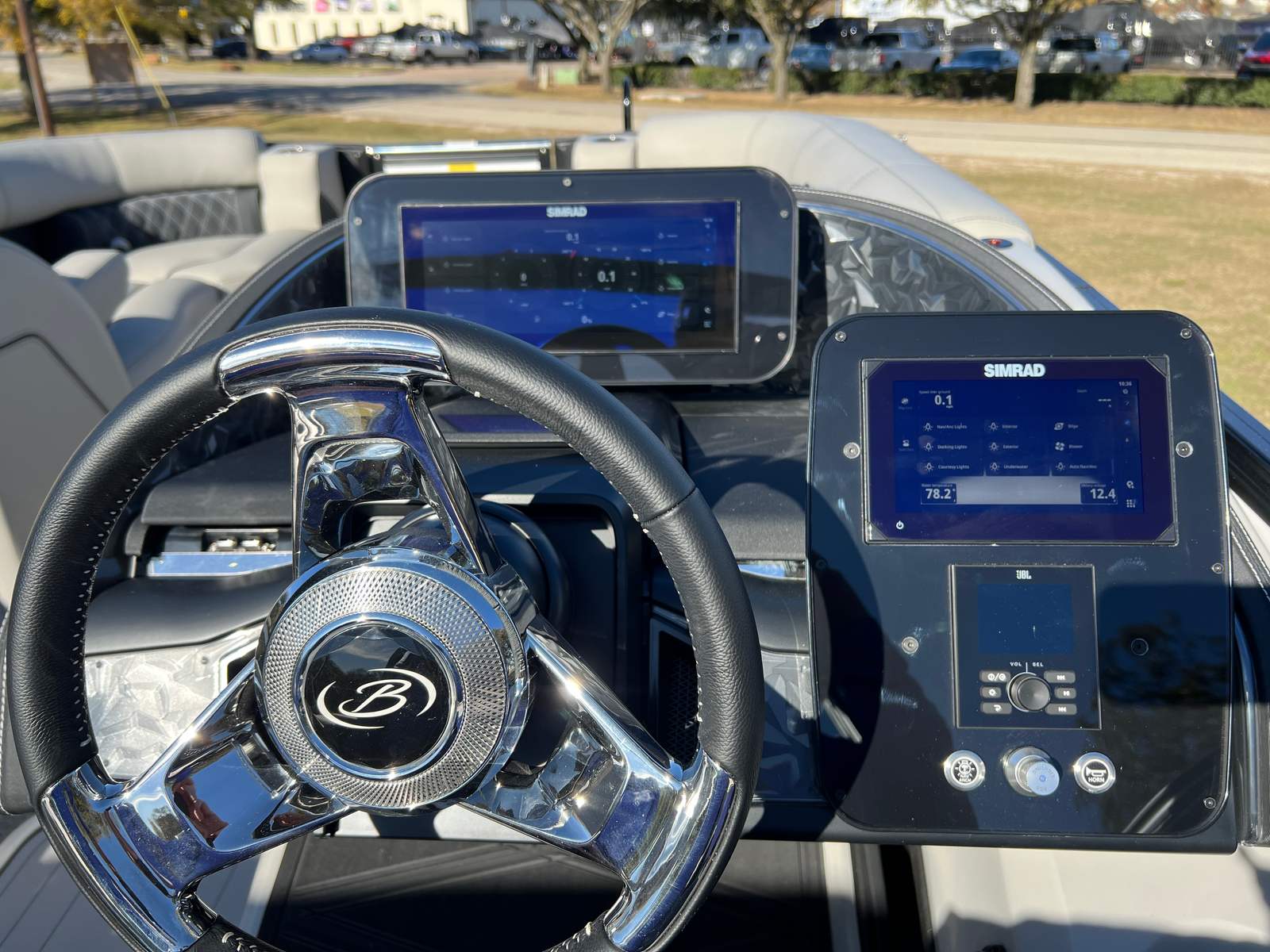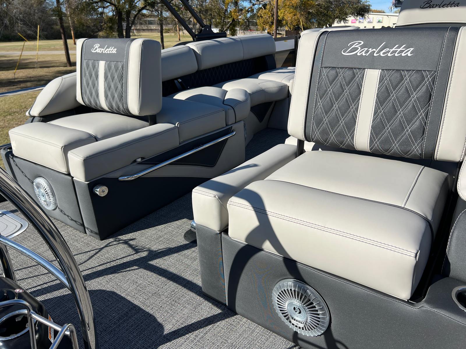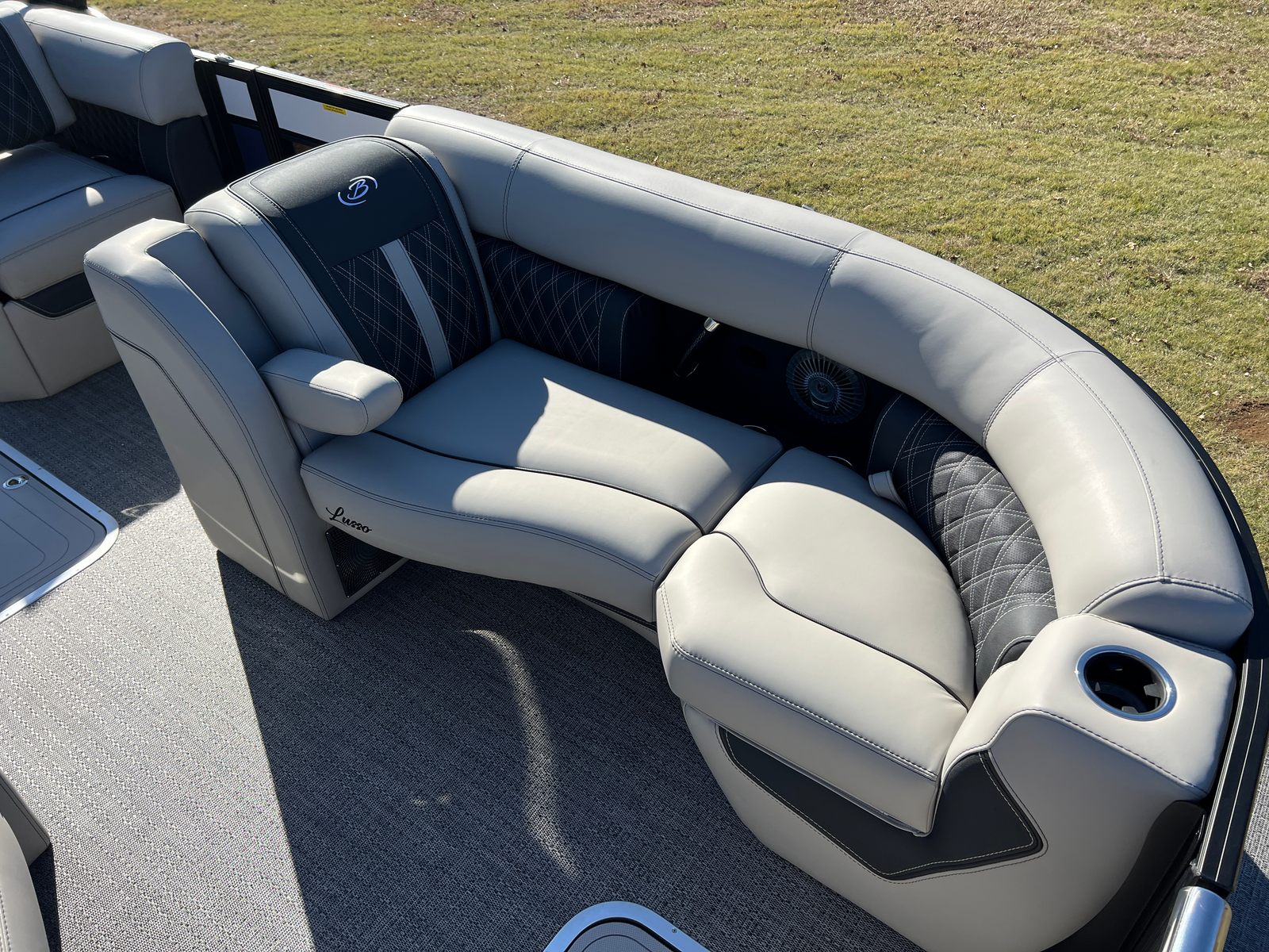 The Barletta Lusso L23M is loaded with features designed to enhance your time on the water. The onboard battery charger with two batteries ensures you have reliable power for all your adventures, while the Metal Jacket Protectant keeps your pontoon looking pristine season after season. The thoughtfully selected Marquesan Gray with Onyx furniture provides plush, supportive seating, perfect for lounging or entertaining guests. The Amore Gray flooring is both stylish and practical, offering a comfortable, slip-resistant surface that is easy to maintain. The Blackout Package Lusso railskin not only adds visual appeal but also offers added protection and durability. The Mercury Digital DTS Pre-Rig and Vessel Link system streamline engine management, giving you intuitive control and peace of mind. Hydraulic and power assist steering, along with digital gauges, ensure a smooth and responsive ride, while the stainless steel prop enhances performance and longevity.