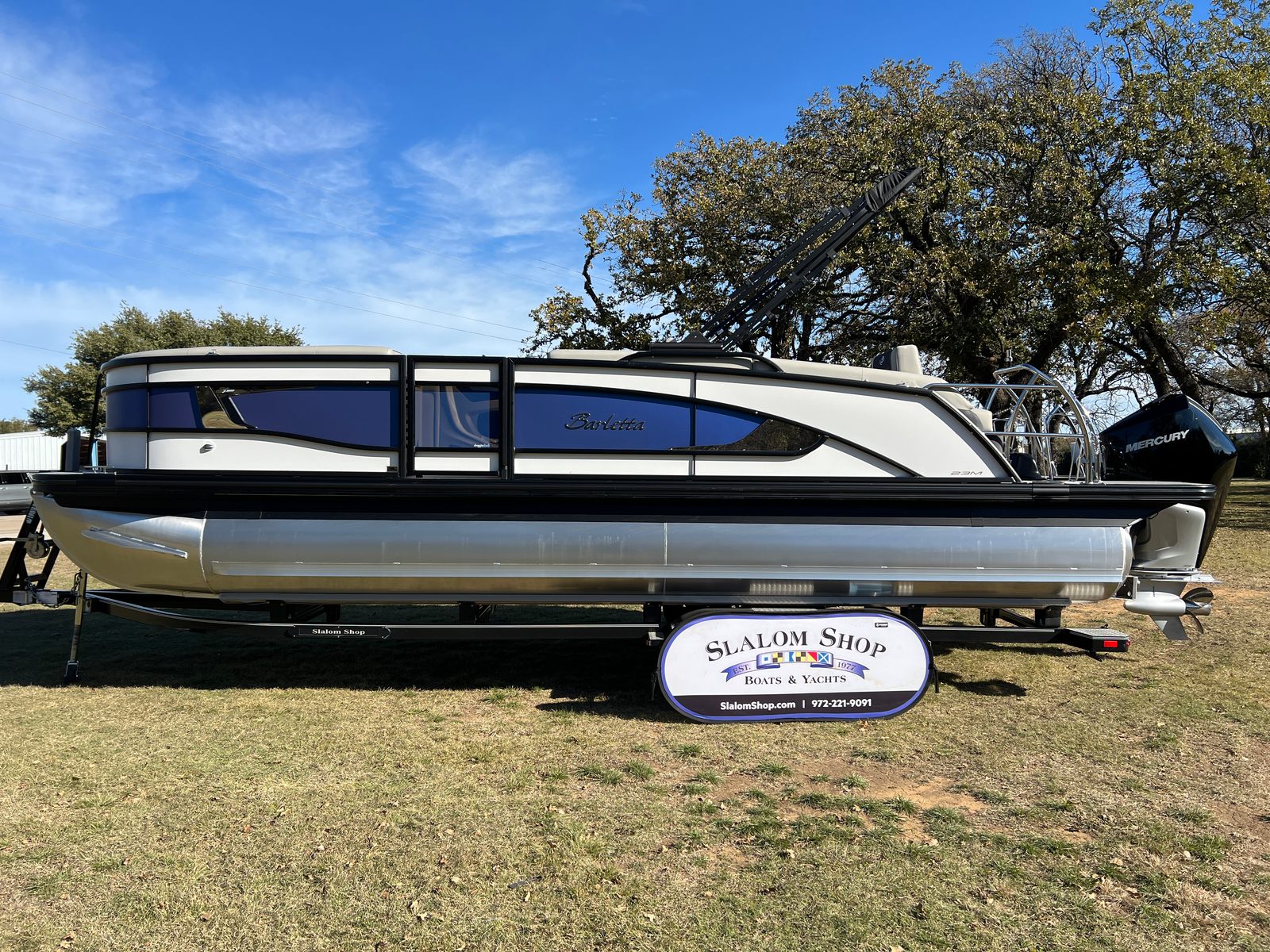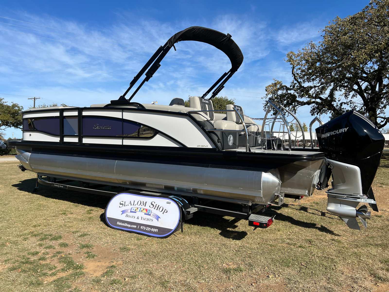 In summary, the 2026 Barletta Lusso L23M is a top-tier pontoon boat for sale that combines luxury, performance, and practicality in one stunning package. With its striking design, advanced Mercury engine, and a host of premium features—including the Winter White and Pacific Matte Blue color scheme, Blackout Package Lusso railskin, Marquesan Gray with Onyx furniture, Amore Gray flooring, Mercury Digital DTS Pre-Rig, hydraulic and power assist steering, digital gauges, stainless steel prop, onboard battery charger, and Metal Jacket Protectant—this Barletta boat for sale is ready to elevate your boating lifestyle. Discover the joy of owning a Barletta Lusso L23M and make every day on the water an extraordinary adventure. Contact your local dealer today to learn more about this exceptional pontoon boat and start planning your next unforgettable journey.
