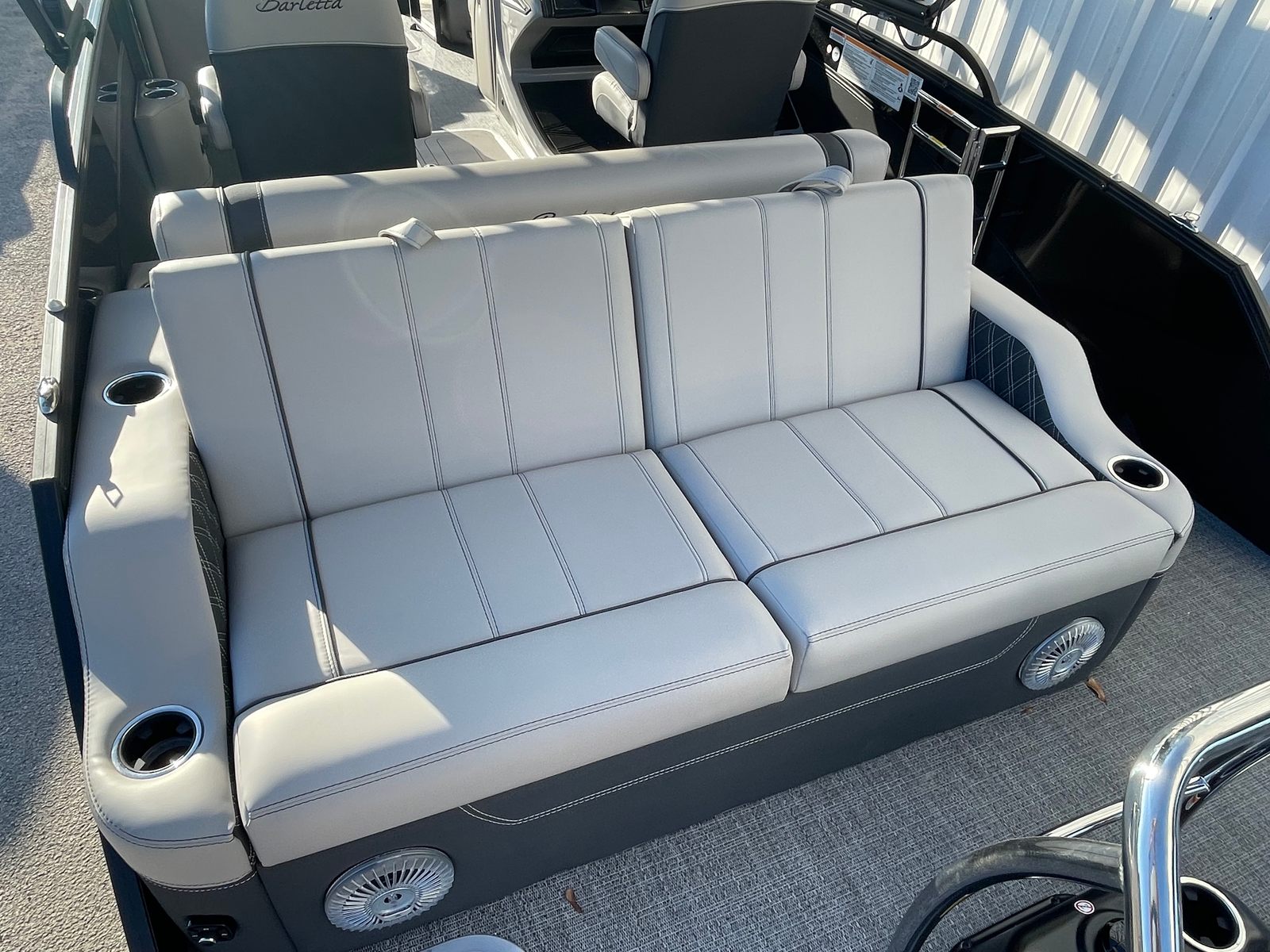 Step aboard the Barletta Lusso L23U and discover a world of luxury and innovation. The Marquesan Gray with Onyx furniture creates a refined and inviting atmosphere, perfectly complemented by the Amore Gray flooring that is both stylish and easy to maintain. The double bimini canvas provides ample shade, ensuring comfort during sunny days on the water. The exterior is protected by a Metal Jacket Protectant, preserving the boat’s pristine appearance and enhancing longevity. Every detail, from the railskin packages to the digital controls, has been selected to elevate your boating experience and make every outing memorable.