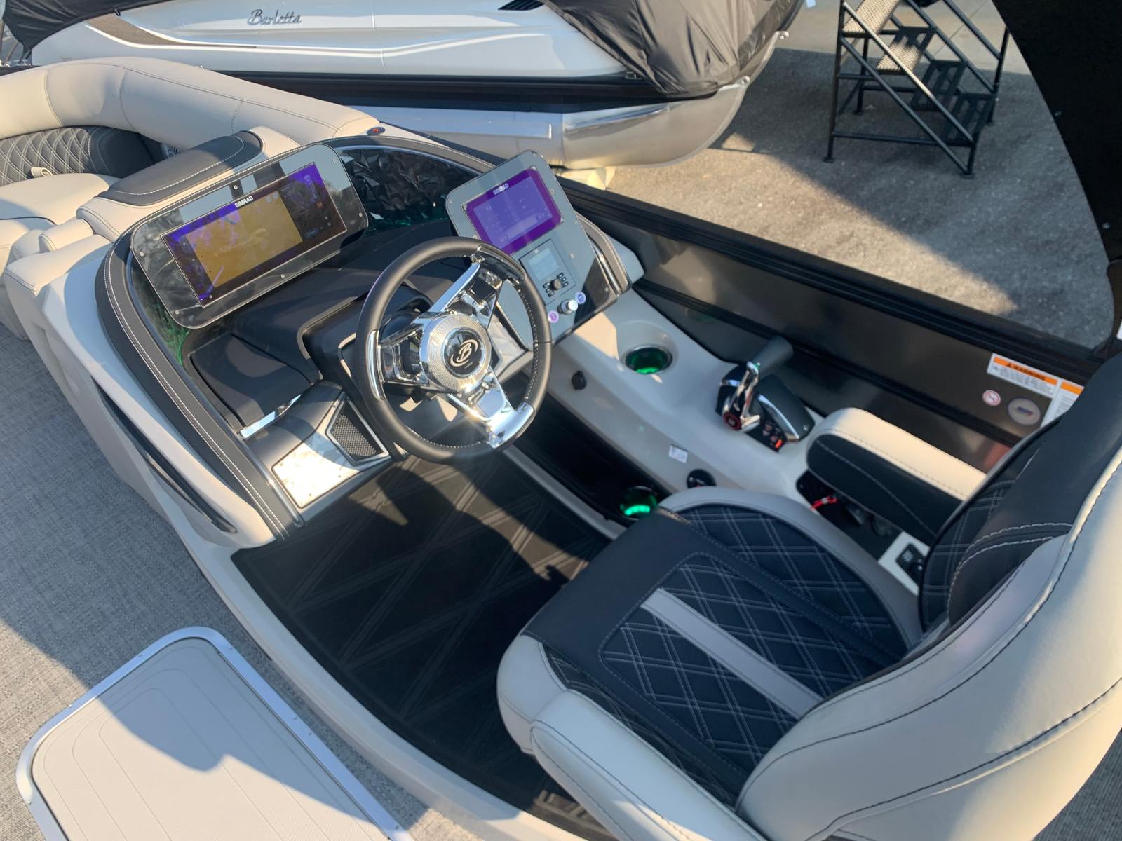 Under the deck, the Barletta Lusso L23UC is powered by a single Mercury 300L Verado V8 engine, delivering an impressive 300 horsepower. This setup provides exhilarating acceleration, smooth cruising, and reliable power for all your water activities. The Mercury Digital DTS Pre-Rig for VERADO engines with Vessel Link ensures seamless integration and precise control, while hydraulic and power assist steering make handling effortless, even at higher speeds or in challenging conditions. Whether you’re gliding across calm waters or heading out for a day of watersports, this pontoon’s performance is sure to impress.