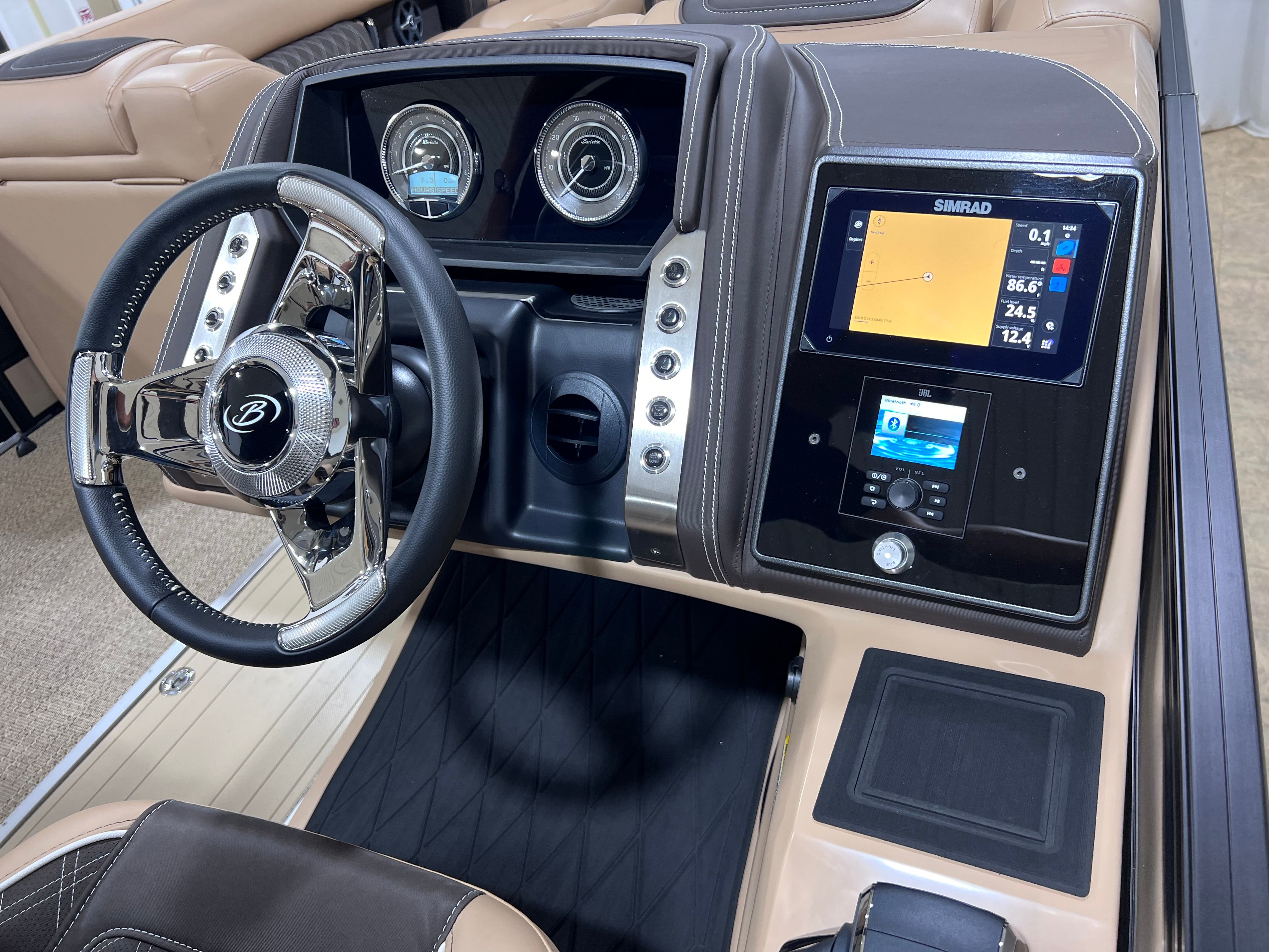 Owning the Barletta Lusso L25M means embracing a lifestyle of luxury, comfort, and endless fun on the water. The spacious layout provides plenty of room for family and friends, making it perfect for social gatherings, celebrations, or simply unwinding in style. The plush Carmella Tan with Bison furniture invites you to relax and enjoy the ride, while the Amore Tan flooring adds a touch of elegance to every step.The powerful Mercury V10 Verado engine ensures that every outing is smooth, efficient, and exhilarating. Whether you are cruising along the shoreline, exploring new coves, or towing water toys, this pontoon boat delivers the performance you need for any adventure. The advanced rigging and digital pre-rig systems make operation straightforward and hassle-free, allowing you to focus on enjoying your time on the water.