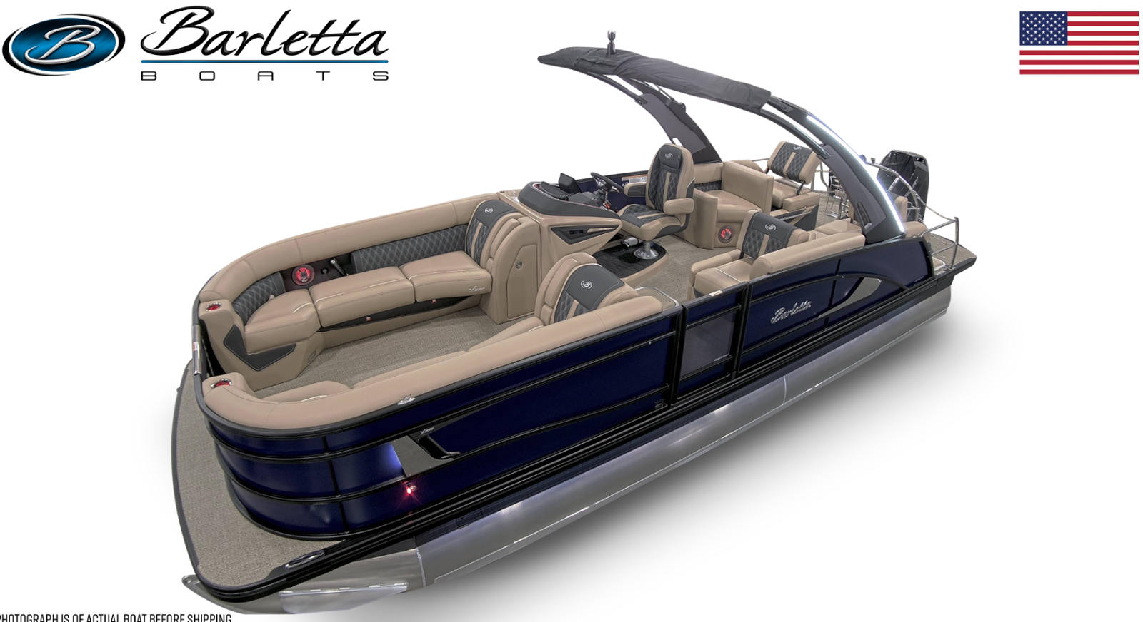 The 2026 Barletta Lusso L25MA is meticulously crafted to provide both comfort and style. The Bohemian Blue sweep and accent colors create a striking visual appeal, while the Blackout Package Lusso railskin adds a touch of modern elegance. Step aboard and you are greeted by luxurious Carmella Tan furniture with Onyx accents, offering plush seating and a refined atmosphere for all your guests. The Amore Tan flooring is both stylish and practical, providing a comfortable and durable surface underfoot.For those who appreciate ambiance, the Lusso L25MA features white underdeck and underwater exterior lighting, setting the perfect mood for evening cruises or dockside gatherings. Every detail, from the premium upholstery to the advanced Mercury Digital Pre-Rig for V10, is designed to enhance your boating experience and ensure you travel in ultimate comfort and style.