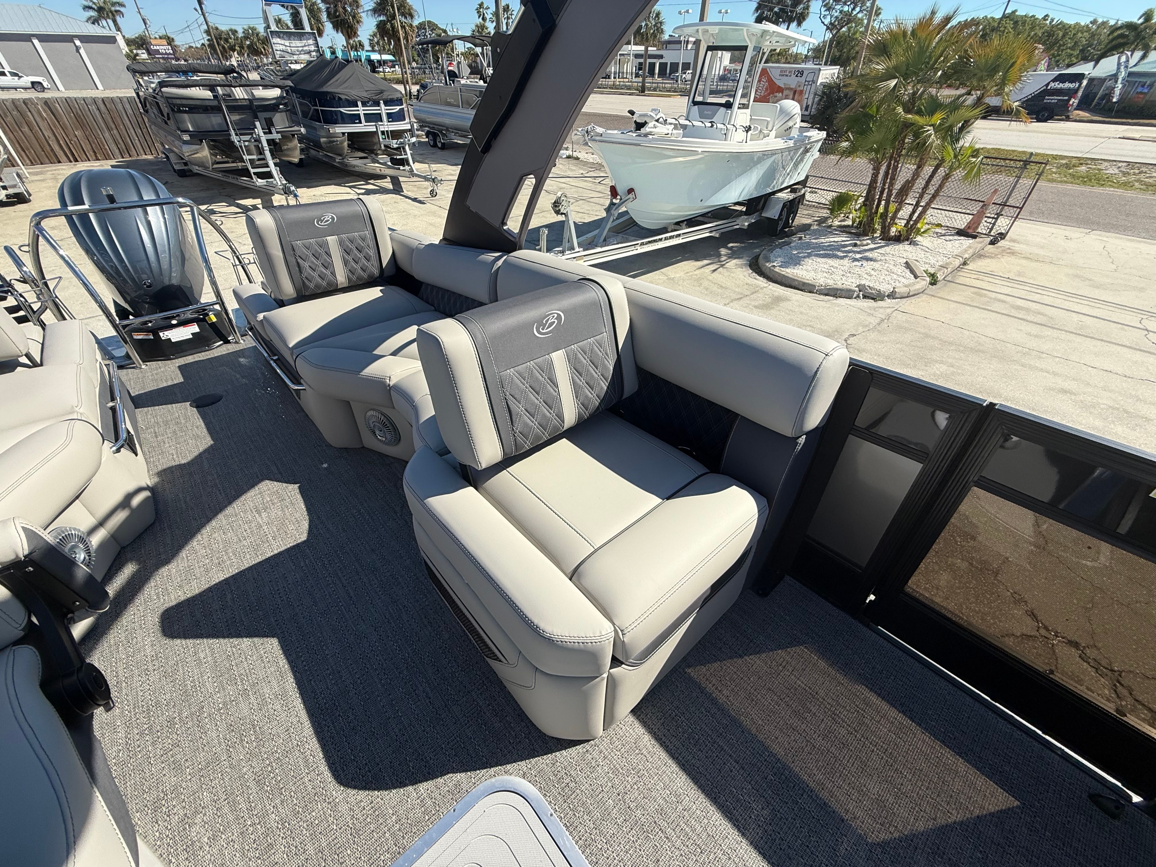 Owning the Barletta Lusso L25MA means embracing a lifestyle of fun, relaxation, and adventure. The spacious deck layout provides ample room for socializing, sunbathing, or enjoying a meal with friends and family. The plush Marquesan Gray furniture ensures everyone on board can relax in comfort, while the stylish flooring and blackout accents create a sophisticated ambiance. Whether you are hosting a sunset cruise, celebrating a special occasion, or simply unwinding after a long week, this pontoon boat offers the perfect setting.The Lusso L25MA is designed with both comfort and convenience in mind. The integrated electric steering and digital controls make piloting the boat effortless, even for less experienced boaters. The stainless steel prop and advanced Yamaha engine ensure reliable performance and fuel efficiency, so you can spend more time enjoying the water and less time worrying about maintenance or refueling.