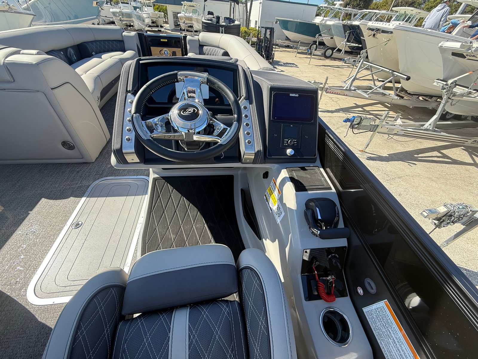 The Barletta Lusso L25MA is loaded with special features that elevate your boating experience. The exterior showcases a sophisticated Sweep Color in Black Diamond, complemented by an Accent Color in Gray Moonstone, creating a modern and eye-catching appearance. The Blackout Package Lusso adds a touch of elegance and exclusivity, while the Marquesan Gray furniture with Charcoal Accent provides both comfort and contemporary style. The flooring, finished in Amore Gray, is not only visually appealing but also durable and easy to maintain.This model is part of the Coastal Edition Lusso, designed to withstand the unique challenges of coastal environments. The 25 Transom ensures stability and performance, even in choppier waters. The Yamaha Pre-Rig Digital system, required with the XSB Digital Engine, integrates seamlessly with the boat’s controls, offering a user-friendly and technologically advanced boating experience. Digital gauges provide real-time information at a glance, keeping you informed and in control at all times.