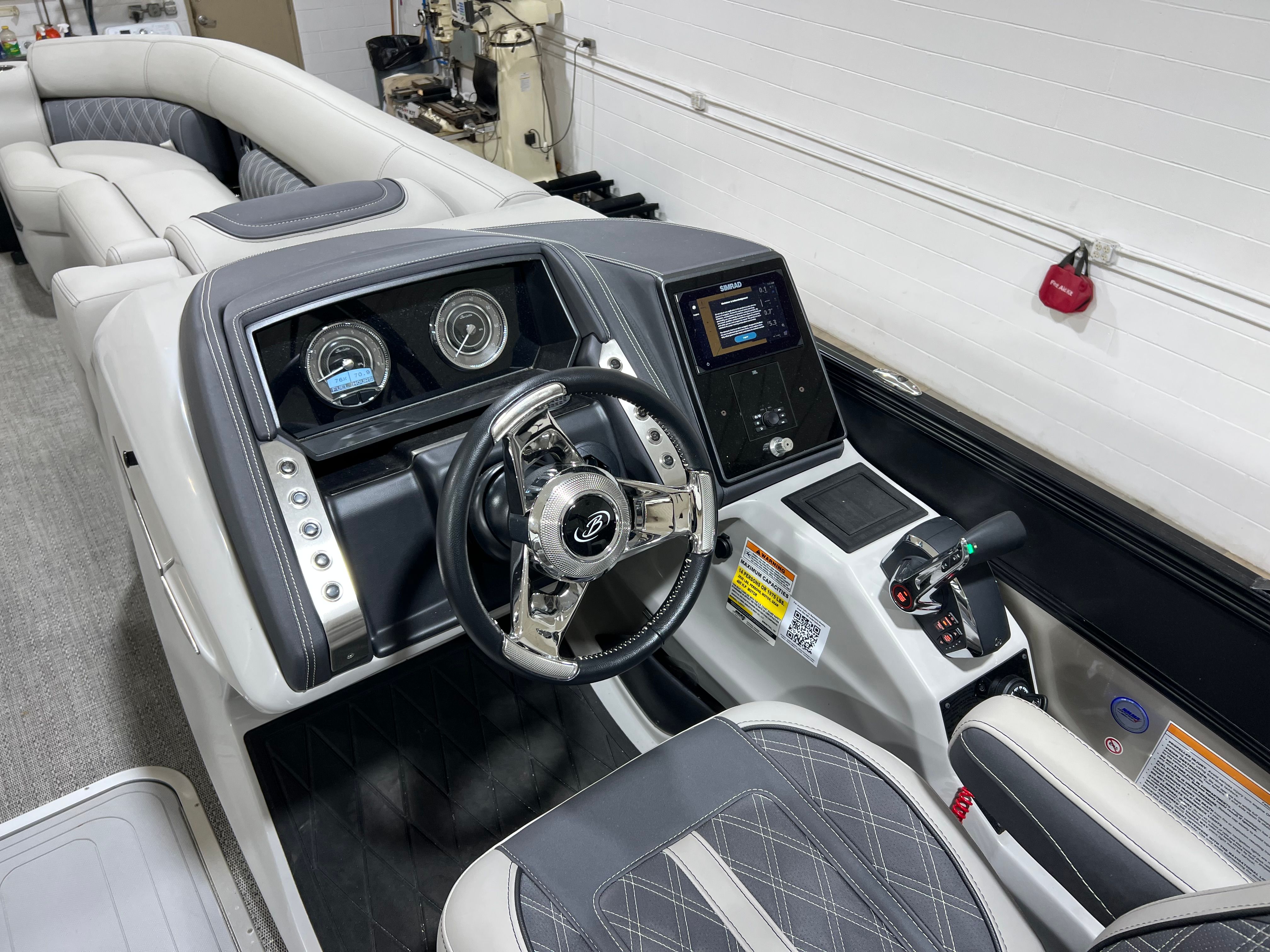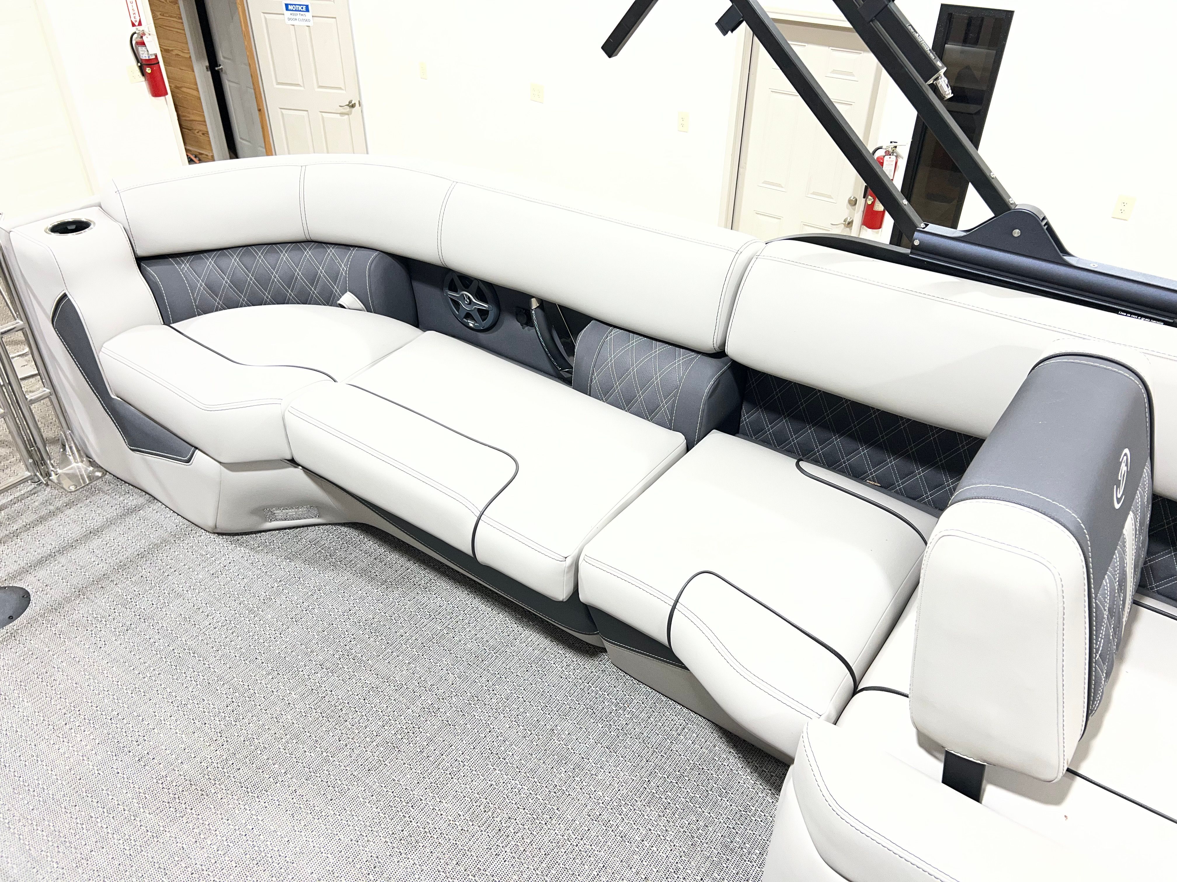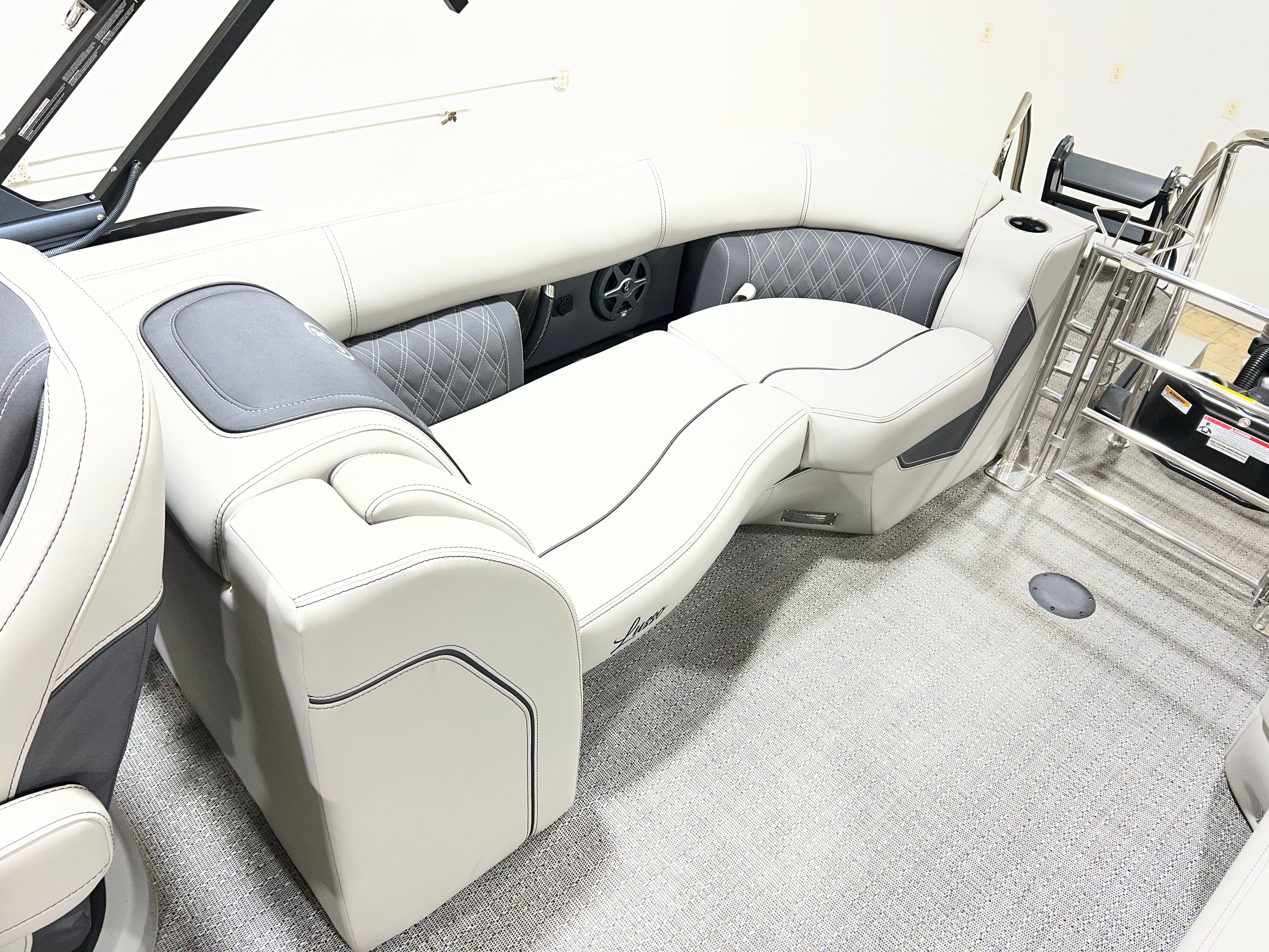 Powering the Barletta Lusso L25QSS is a robust 300-horsepower engine, ensuring that every outing is as thrilling as it is smooth. With this level of horsepower, you’ll enjoy responsive acceleration, impressive top speeds, and the confidence to handle a variety of water conditions. Whether you’re towing water toys, cruising across the lake, or simply enjoying a leisurely ride, the Lusso L25QSS delivers a dynamic and exhilarating performance. The engine’s 70 hours of use means it’s just getting started, offering many more seasons of reliable fun.