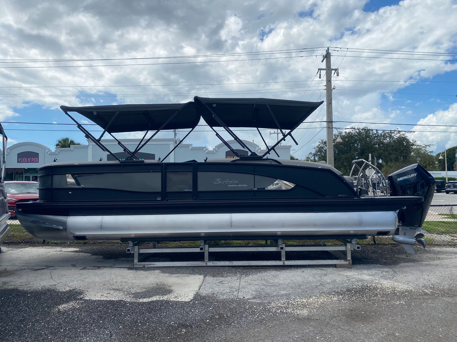 This Barletta pontoon boat is loaded with premium features that set it apart from the competition. The Coastal Edition Lusso ensures durability and resilience in a variety of water conditions, making it ideal for both freshwater and coastal adventures. The double bimini offers generous shade, allowing you and your guests to relax in comfort during sunny days. Exterior lighting, including white underdeck and underwater lights, not only enhances the boat’s visual appeal but also provides added safety and ambiance for evening cruises. The Blackout Package Lusso railskin and Gray Moonstone accent color give the boat a modern, upscale look, while the Marquesan Gray furniture with Charcoal accents delivers both comfort and elegance. The Mercury Digital Pre-Rig for V10 and AccuThruster System further enhance the Lusso L25U’s advanced technology suite, ensuring a seamless and enjoyable boating experience.