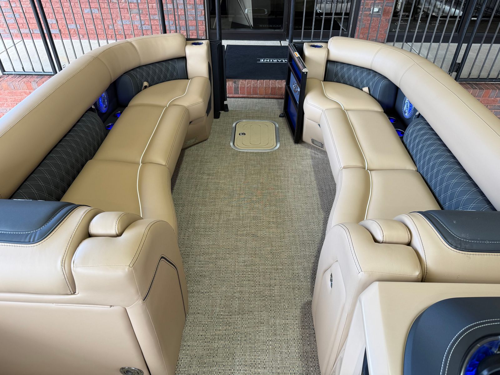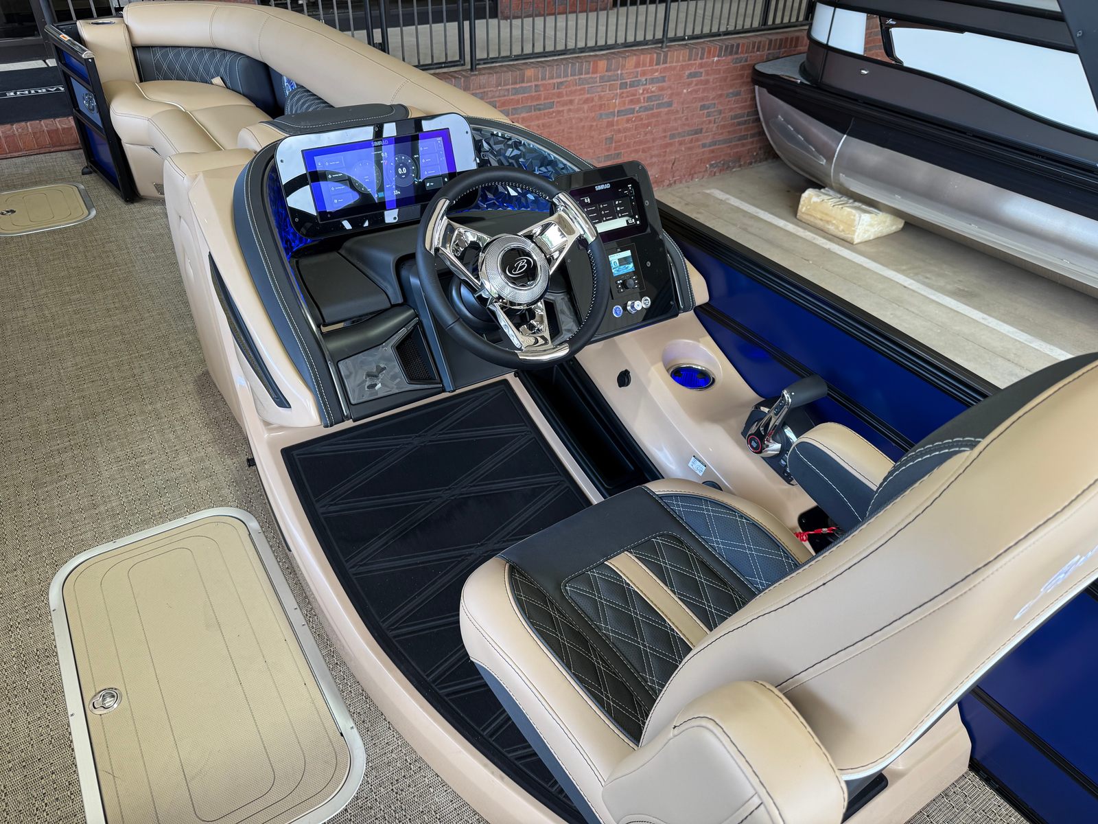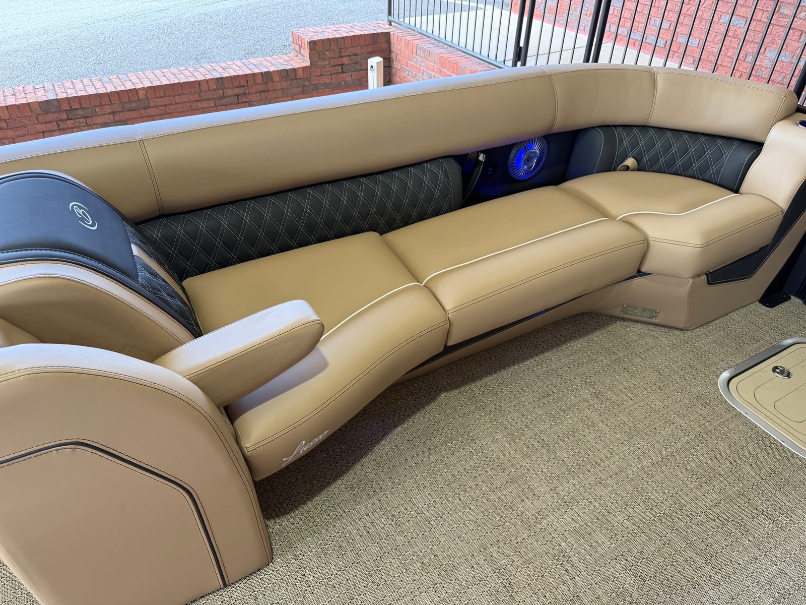 The 2026 Barletta Lusso L25U is loaded with special features that elevate your time on the water. The striking Bohemian Blue accent color and sweep color create a bold, sophisticated look, while the Blackout Package Lusso railskin adds a touch of modern elegance. The exterior lighting, including white underdeck and underwater lights, not only enhances the boat’s visual appeal but also provides added safety and ambiance during evening cruises.Step aboard and you’ll be greeted by luxurious Carmella Tan furniture with Onyx accents, perfectly complemented by the Amore Tan flooring. The spacious and comfortable seating areas are designed for relaxation and socializing, making it easy to host gatherings or enjoy quiet moments with loved ones. The Sport Bimini, installed in place of the standard bimini, offers superior shade and protection from the sun, ensuring comfort throughout the day.