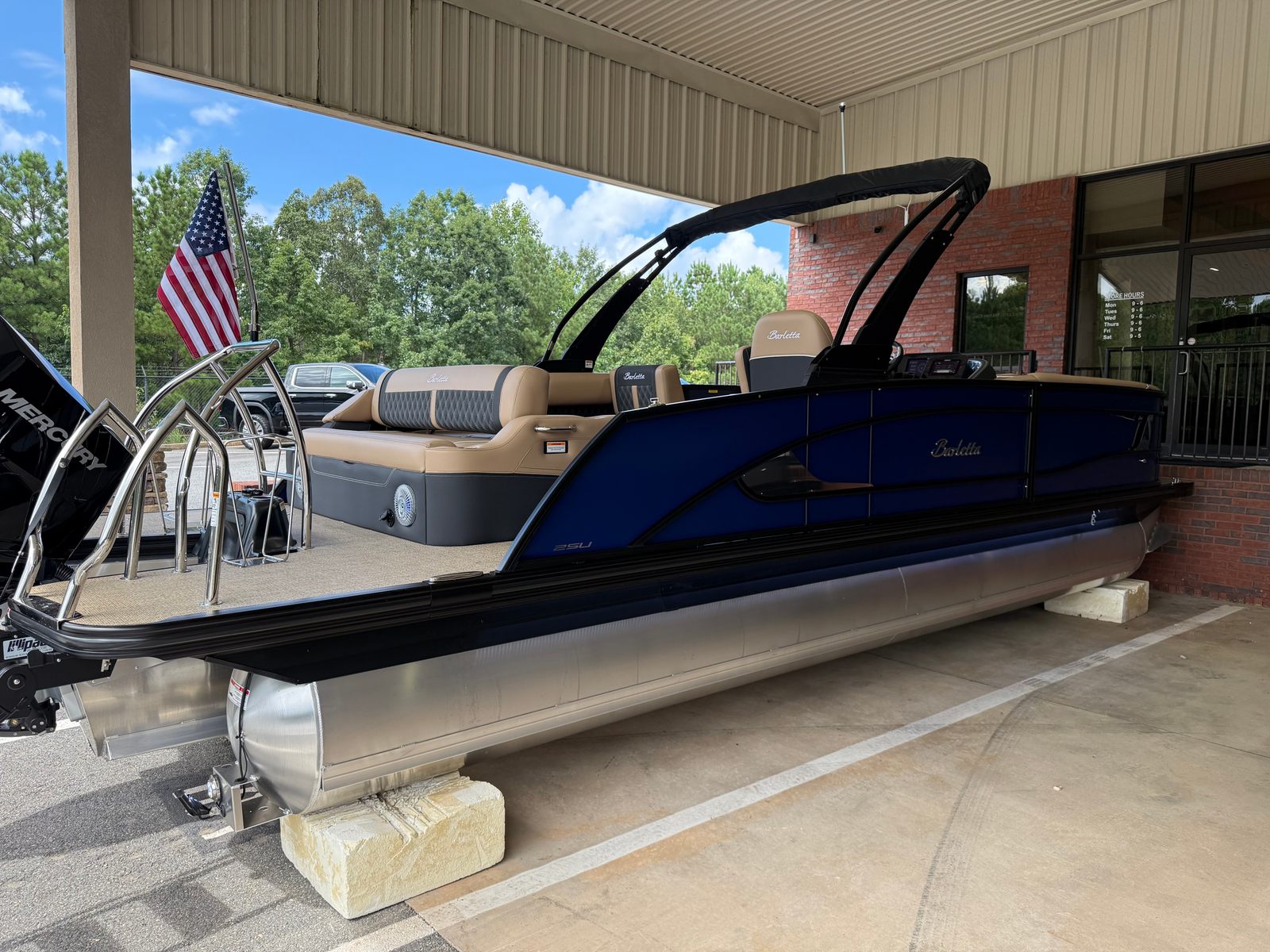 The 2026 Barletta Lusso L25U stands out as a premier pontoon boat for sale, combining cutting-edge performance, luxurious features, and unmatched versatility. With its powerful Mercury (D) 350L V10 Verado engine, stunning Bohemian Blue accents, Blackout Package Lusso, and premium Carmella Tan furniture, this Barletta boat for sale is designed to impress and built to last. Whether you’re planning family adventures, social gatherings, or peaceful escapes, the Lusso L25U delivers the ultimate boating experience.Don’t miss your chance to own this exceptional pontoon. Contact us today to learn more about the 2026 Barletta Lusso L25U and start your journey toward unforgettable days on the water.